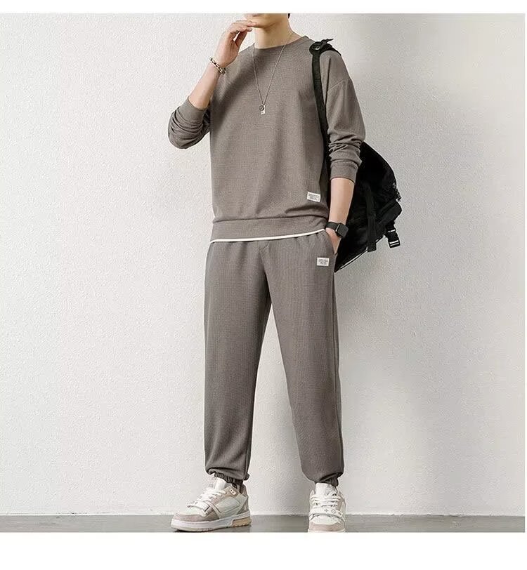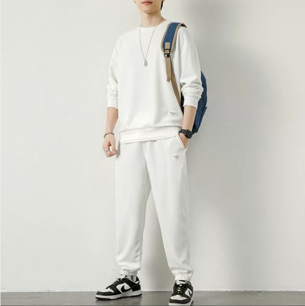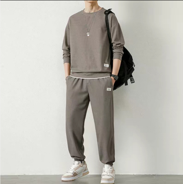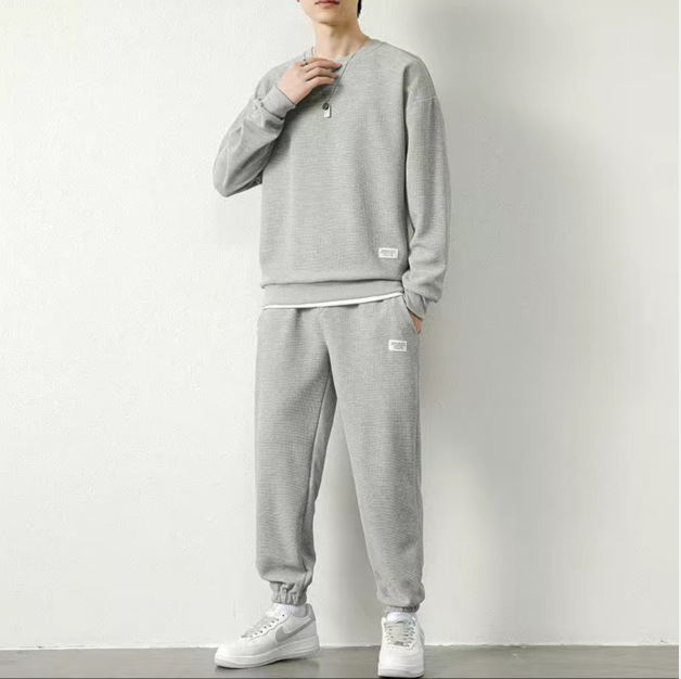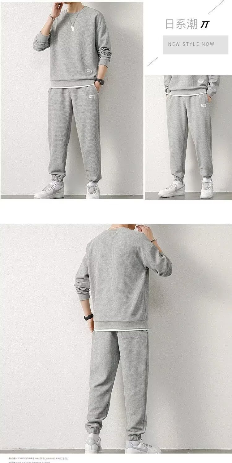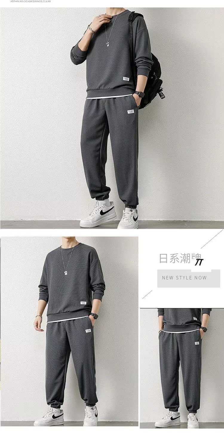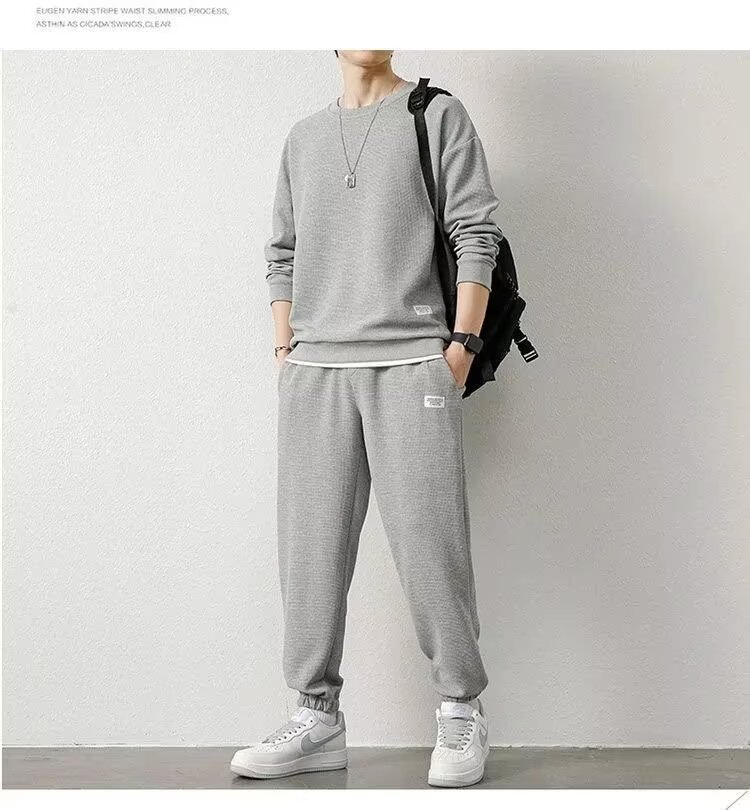남자 가을 겨울 기모 두꺼운 와플 캐주얼 세트 청소년 플러스 사이즈 남자 스포츠 땀 바지 루즈스토어 가기