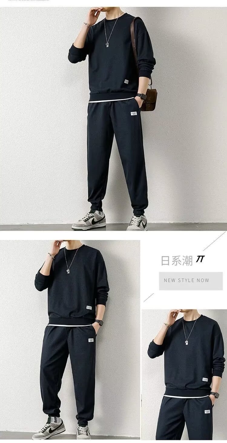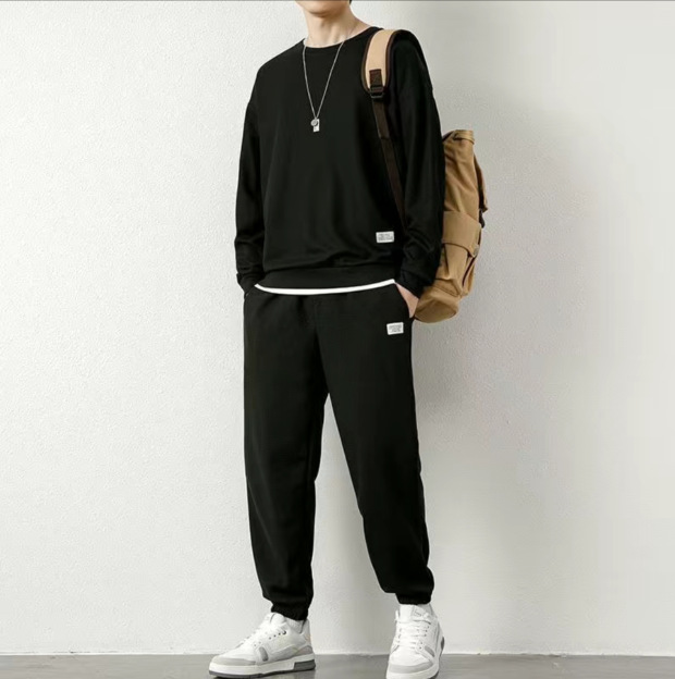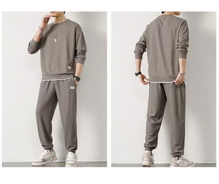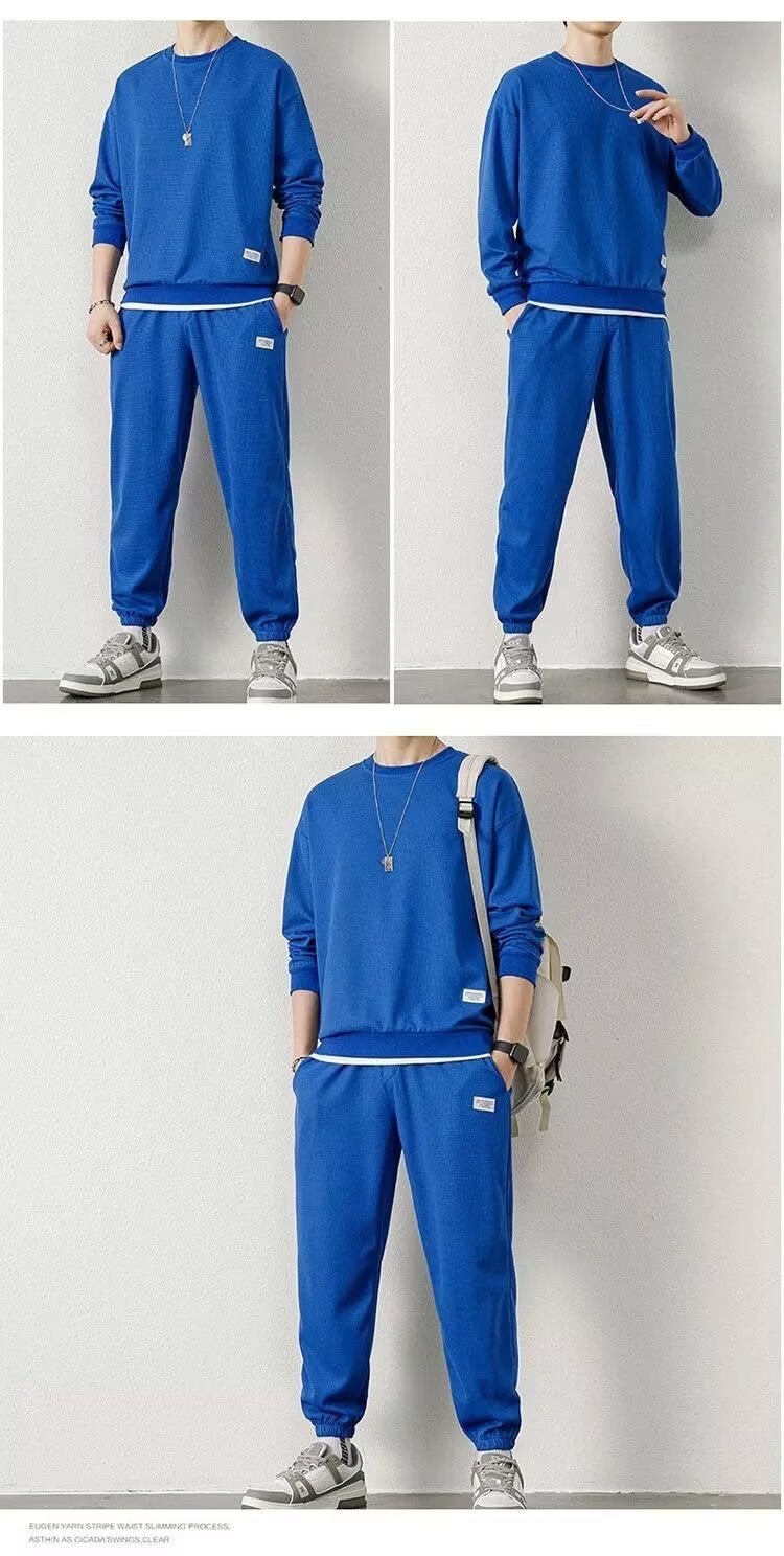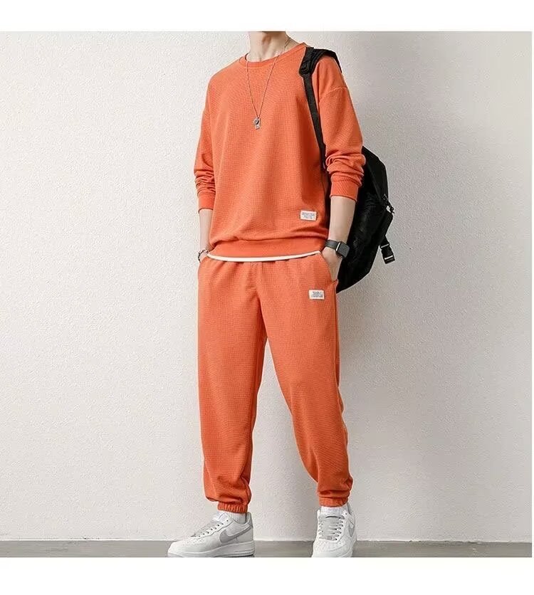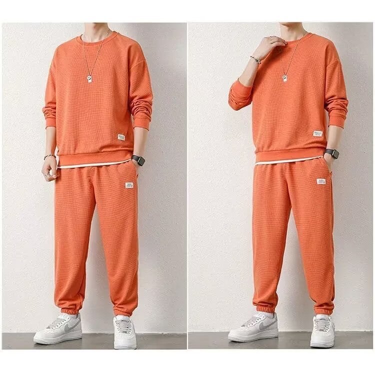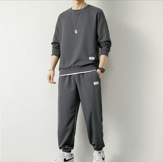 남자 가을 겨울 기모 두꺼운 와플 캐주얼 세트 청소년 플러스 사이즈 남자 스포츠 땀 바지 루즈스토어 가기