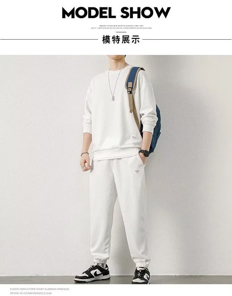 • 기모 없는 와플 조직 맨투맨 세트 (화이트)