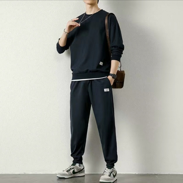 • 기모 없는 와플 조직 맨투맨 세트 (블랙)