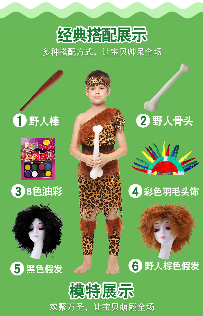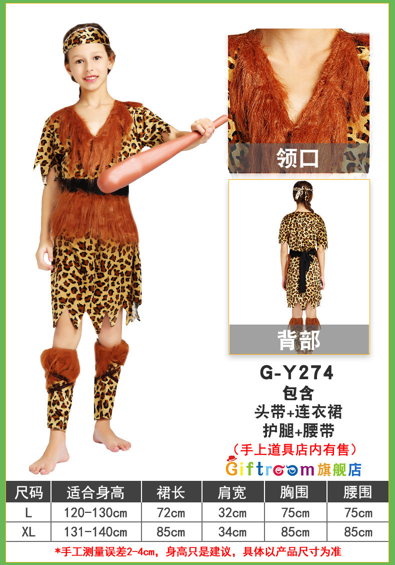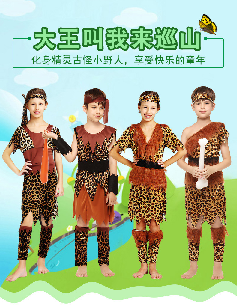 어린이 야만인 의상 아프리카 원주민 원시 의상 춤 레오파드 무늬 의상 사냥꾼 인도 공연 의상스토어 가기