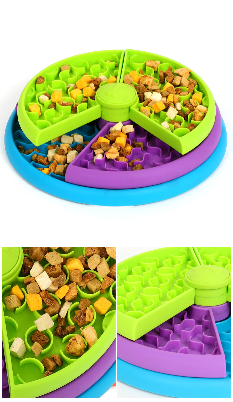아마존 새로운 애완 동물 슬로우 푸드 그릇 질식 방지 고양이 그릇 개 분지 퍼즐 피더 건강한 애완 동물 회전 게임 디스크스토어 가기