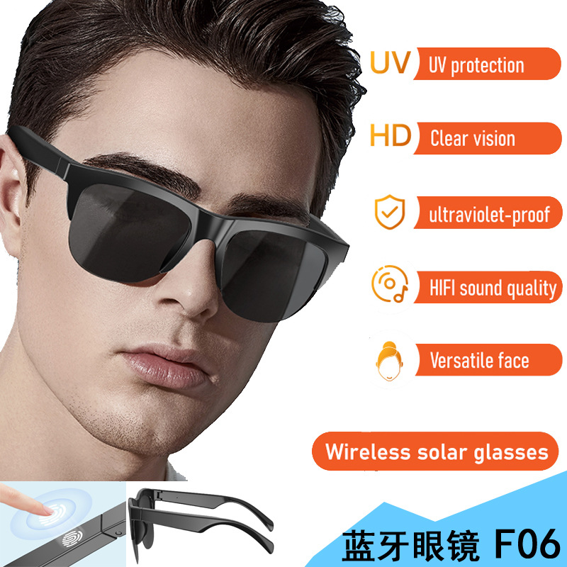 【공장 재고】F06 블루투스 안경, 해외 직구 블루투스 선글라스, 가볍고 차광 효과, 순수한 음질