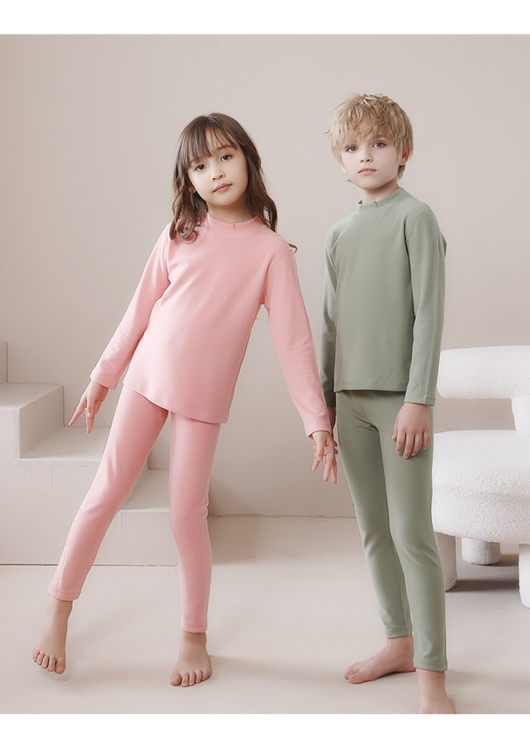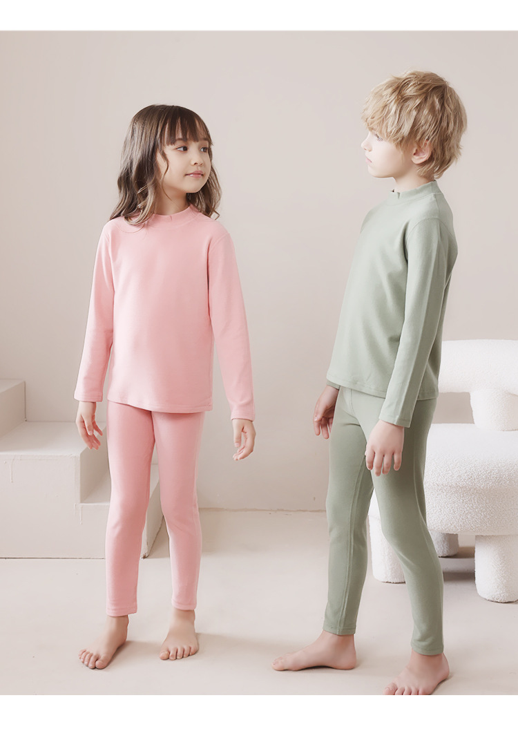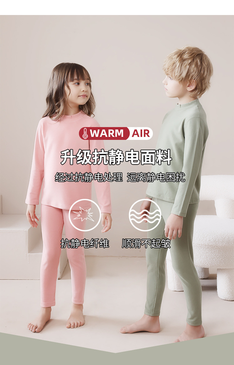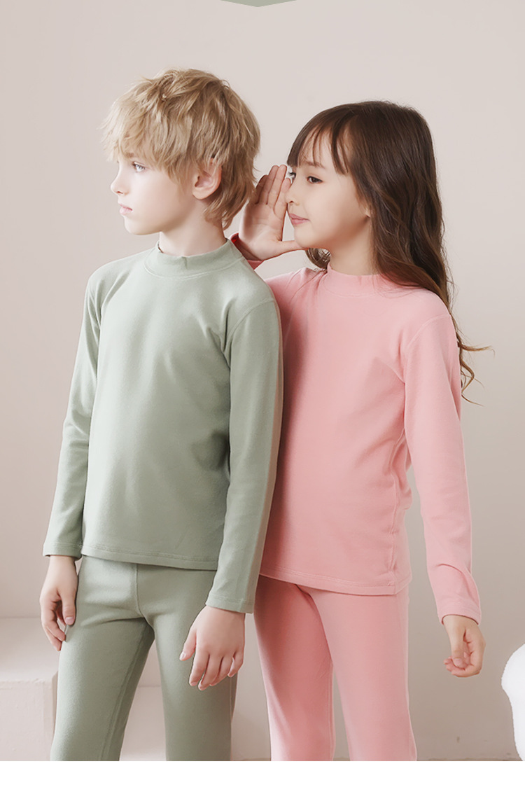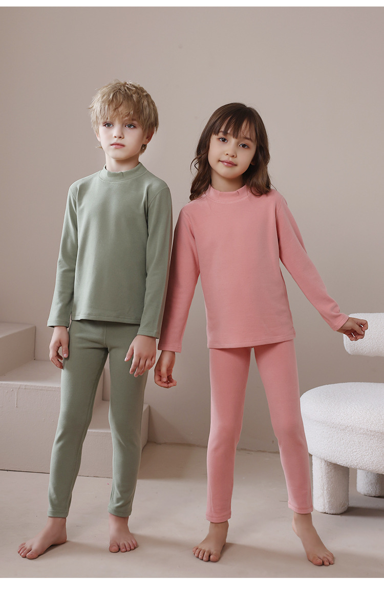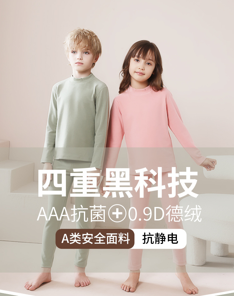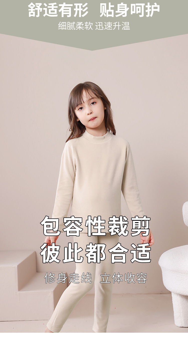 어린이 가을 겨울 신상품 독일산 벨벳 내의 세트 남아용 플러스 벨벳 보온 여아용 중간 목 가을옷 가을바지 세트