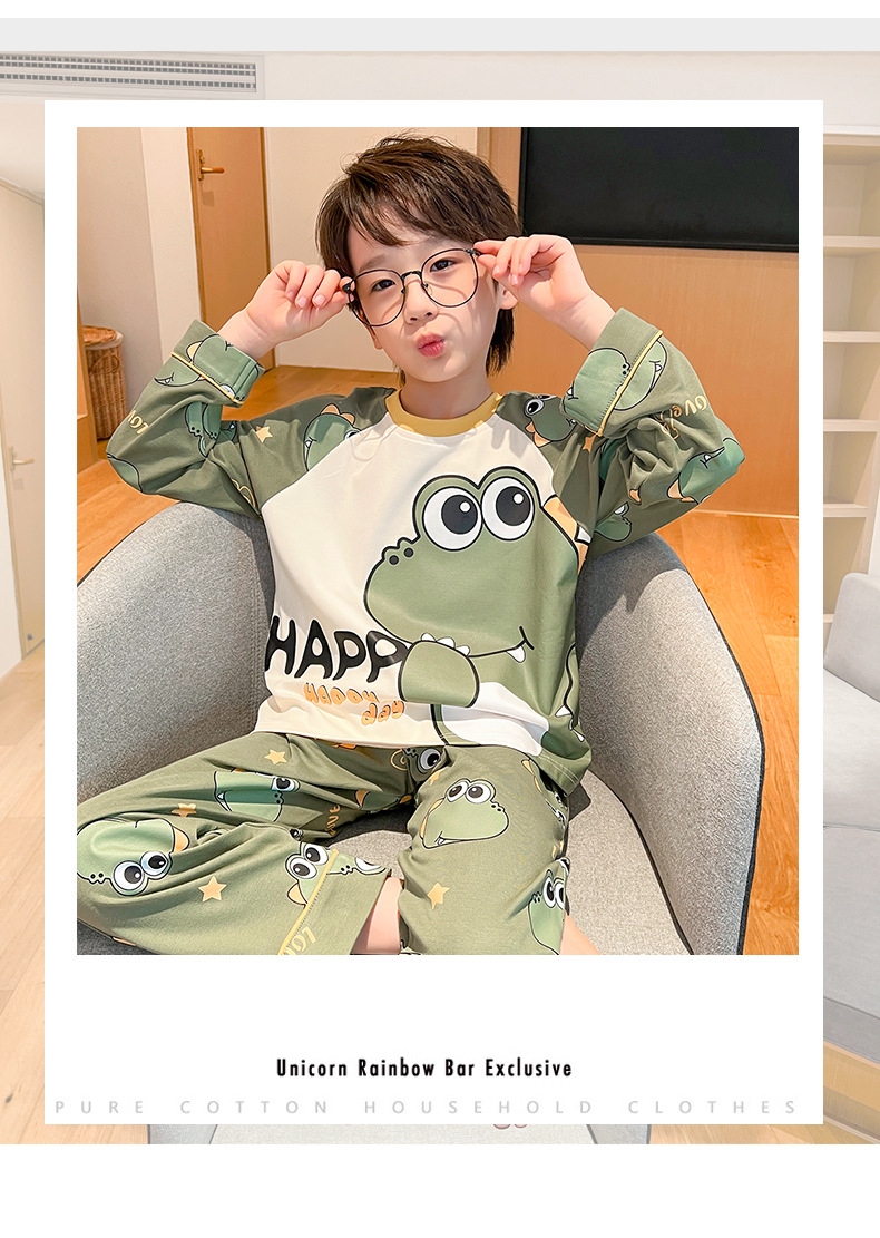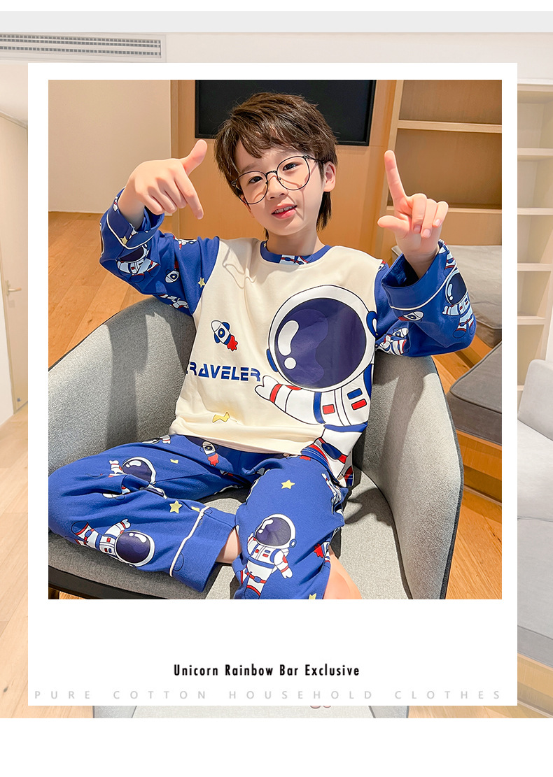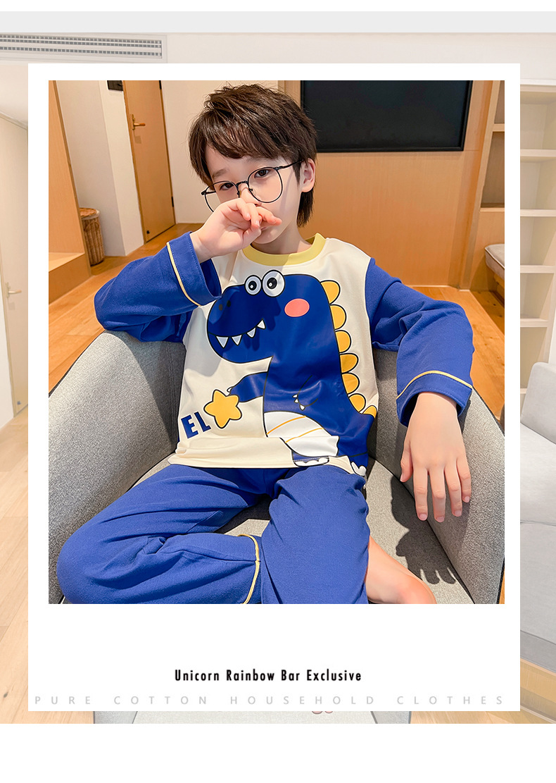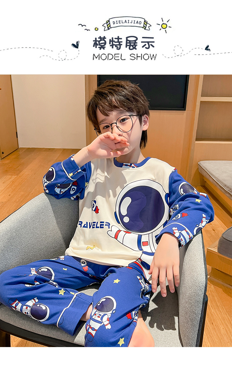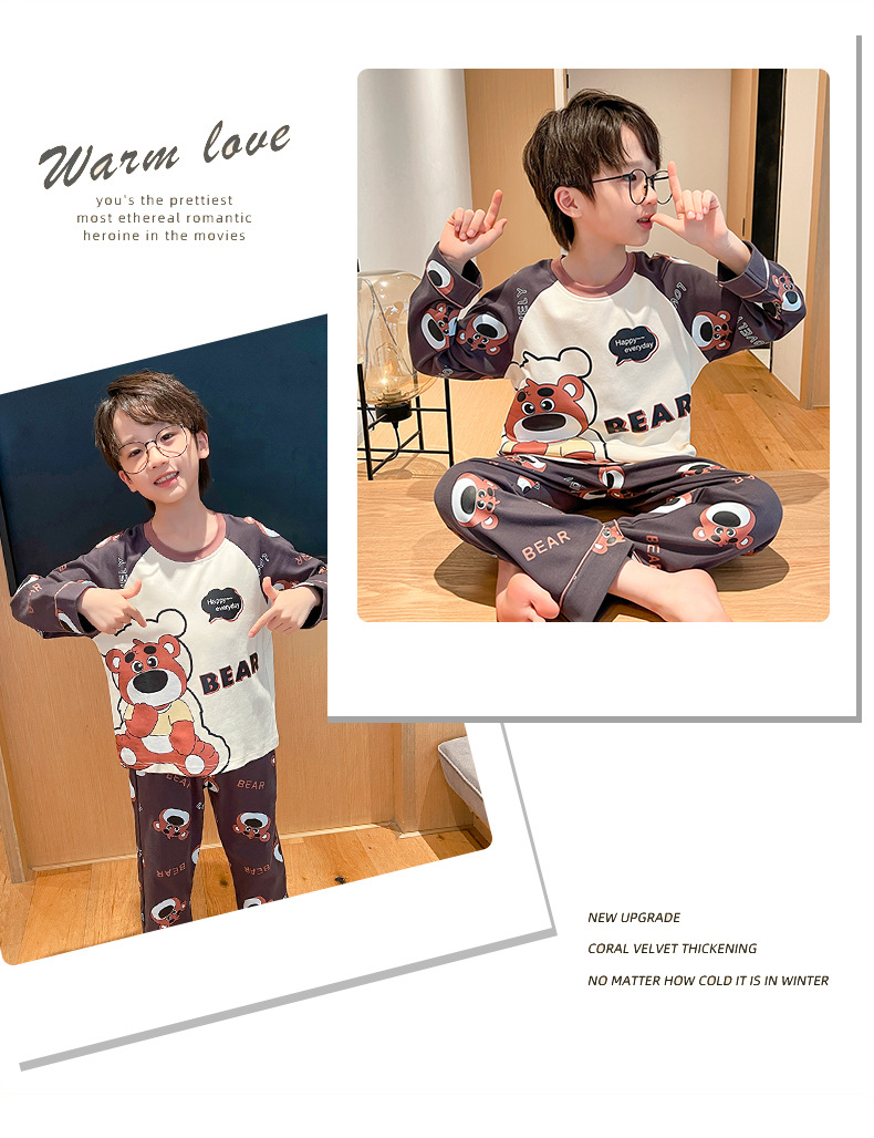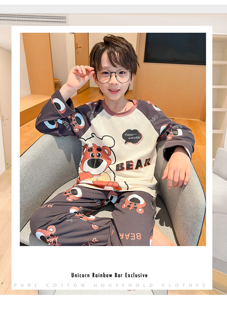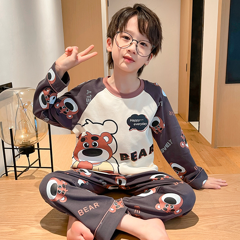 어린이 잠옷 빗질 된 면 세트 아기의 면 가을 옷 소년 소녀 가을 잠옷 큰 어린이를위한 가정 옷 잠옷스토어 가기