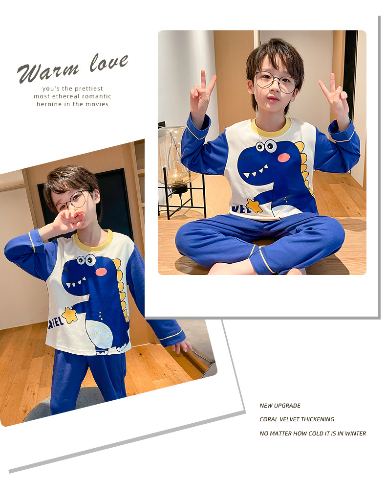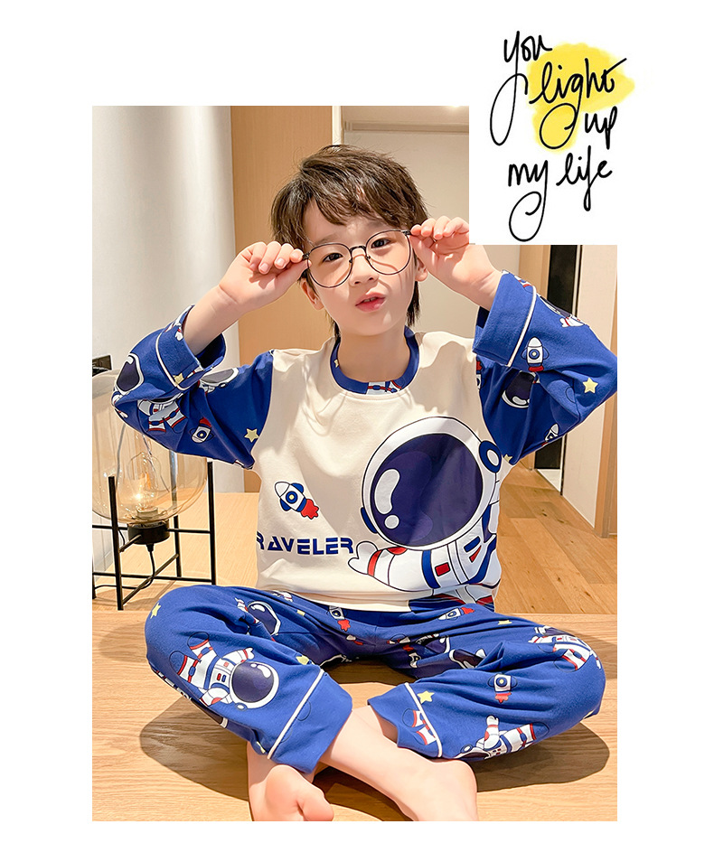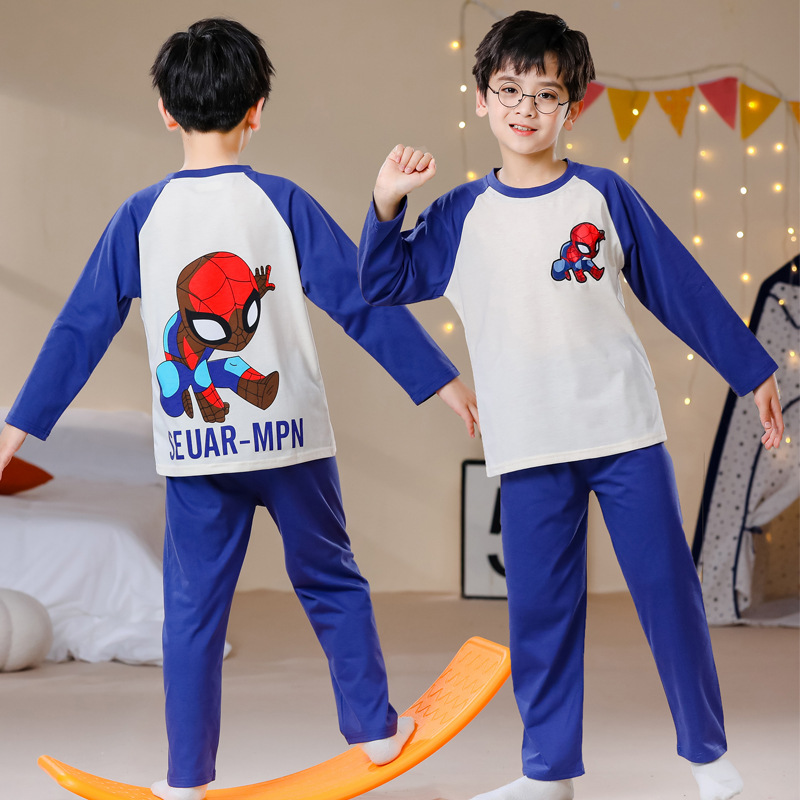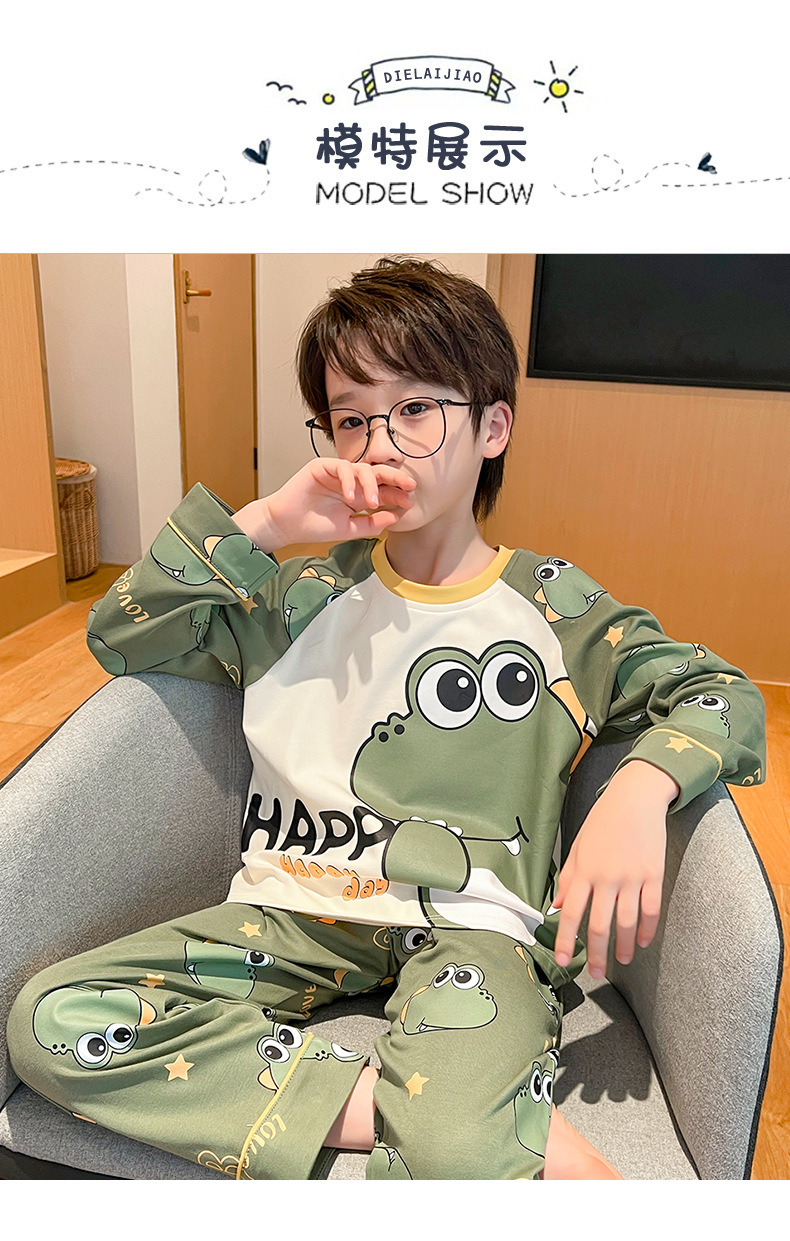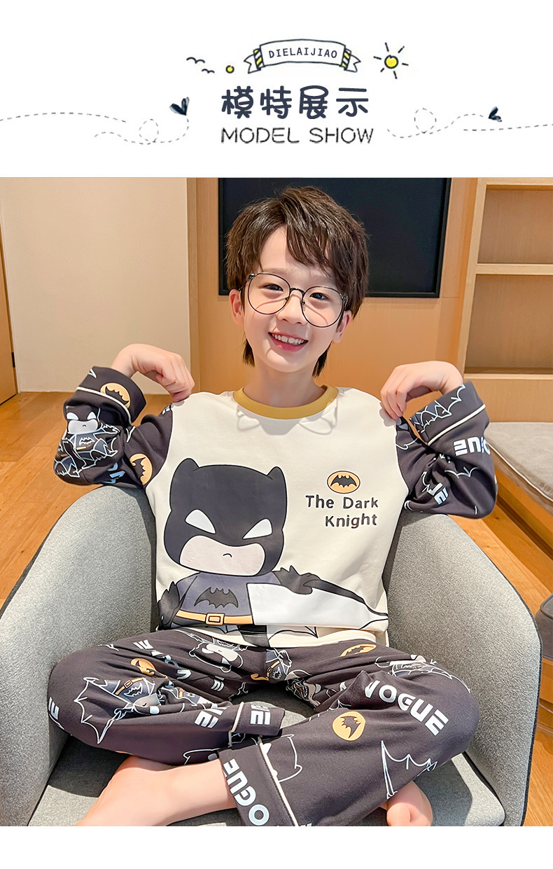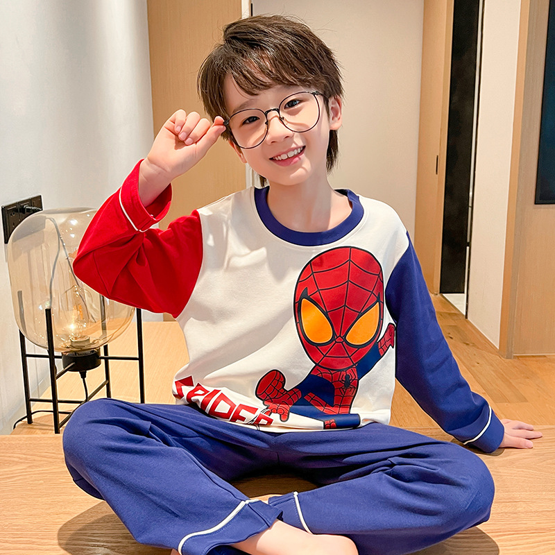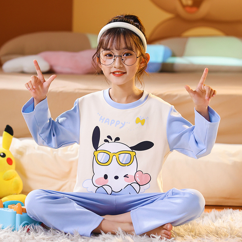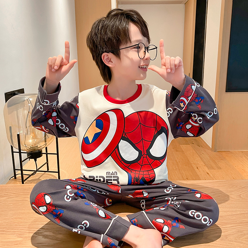 어린이 잠옷 빗질 된 면 세트 아기의 면 가을 옷 소년 소녀 가을 잠옷 큰 어린이를위한 가정 옷 잠옷스토어 가기