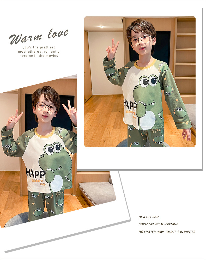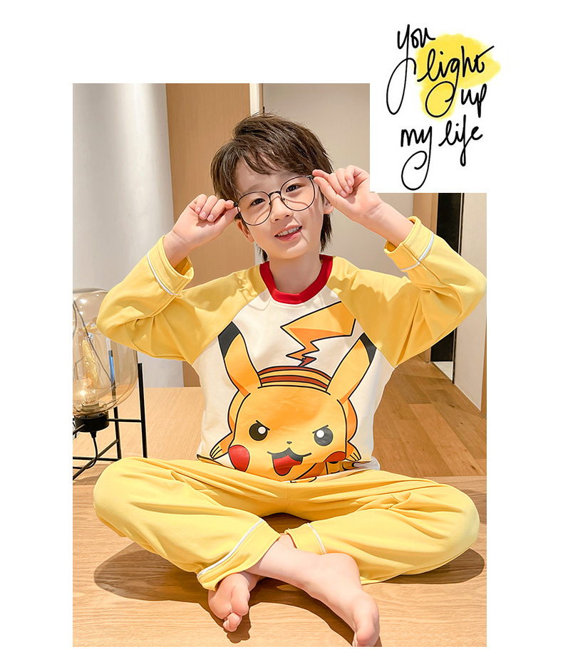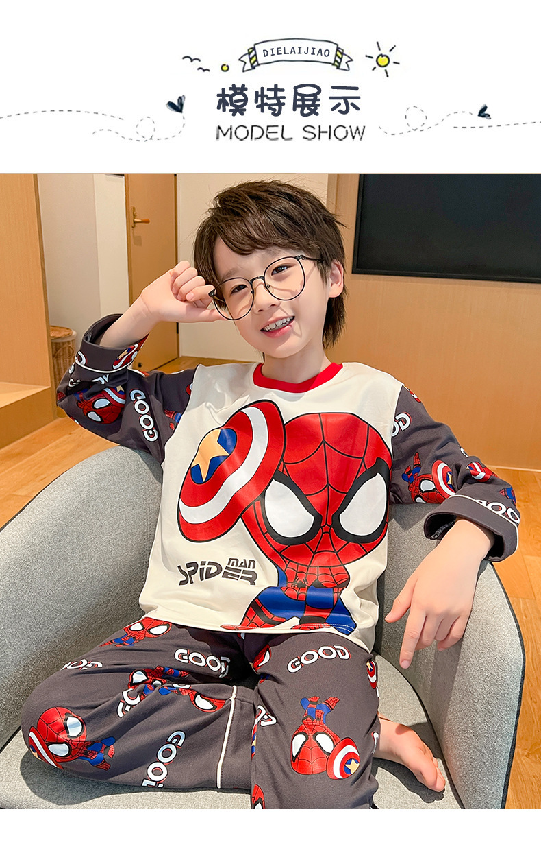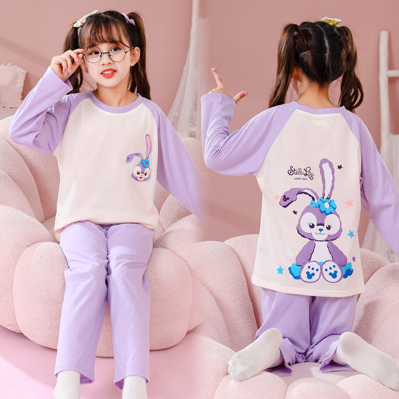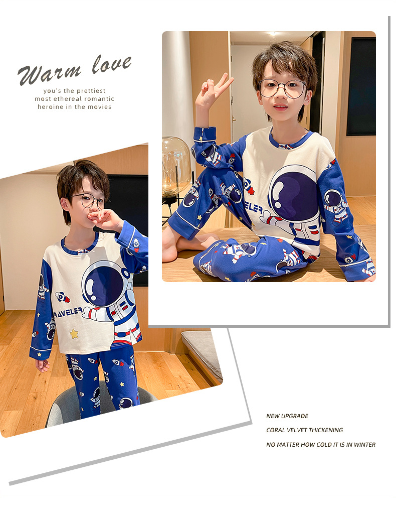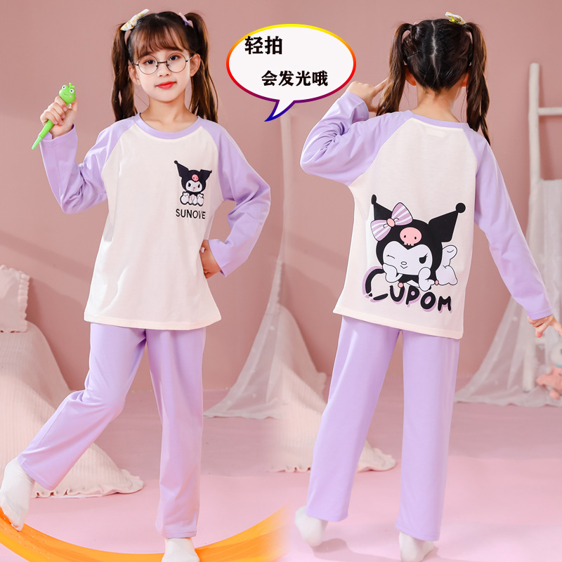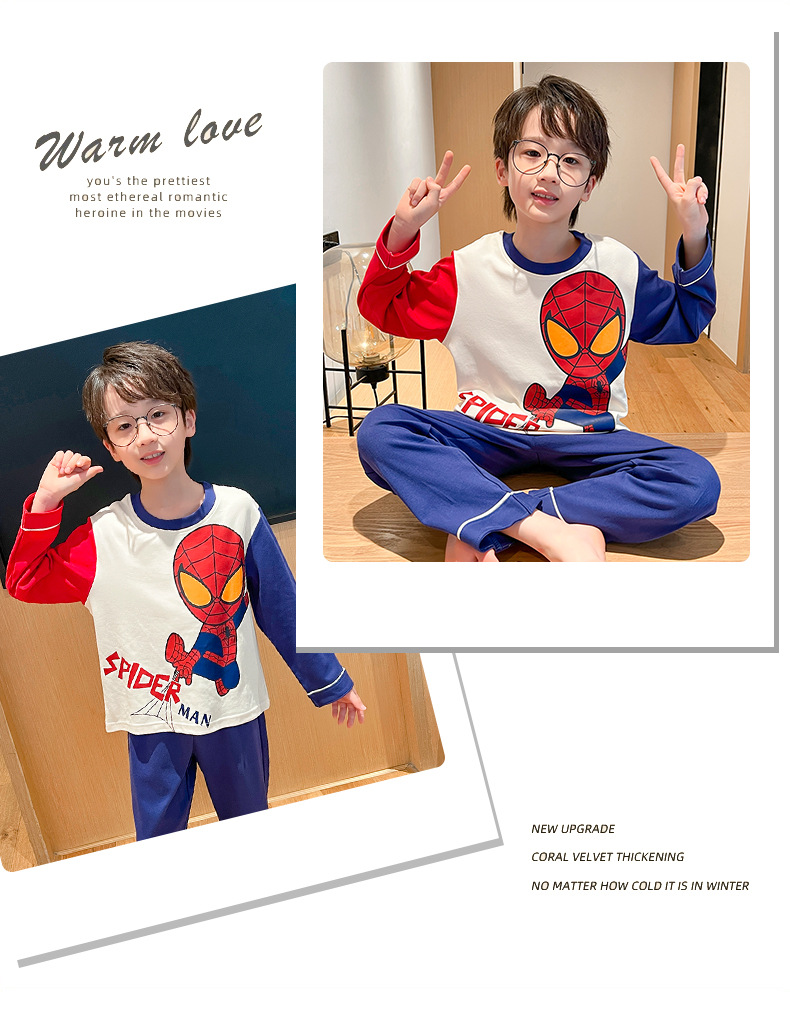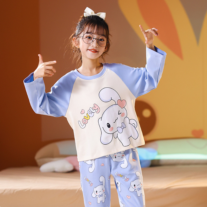 어린이 잠옷 빗질 된 면 세트 아기의 면 가을 옷 소년 소녀 가을 잠옷 큰 어린이를위한 가정 옷 잠옷스토어 가기