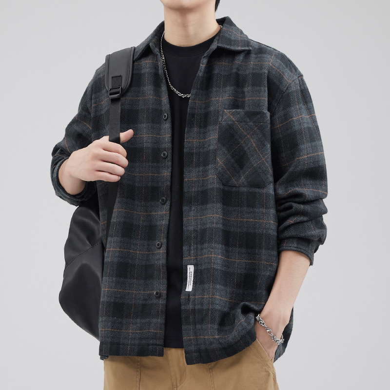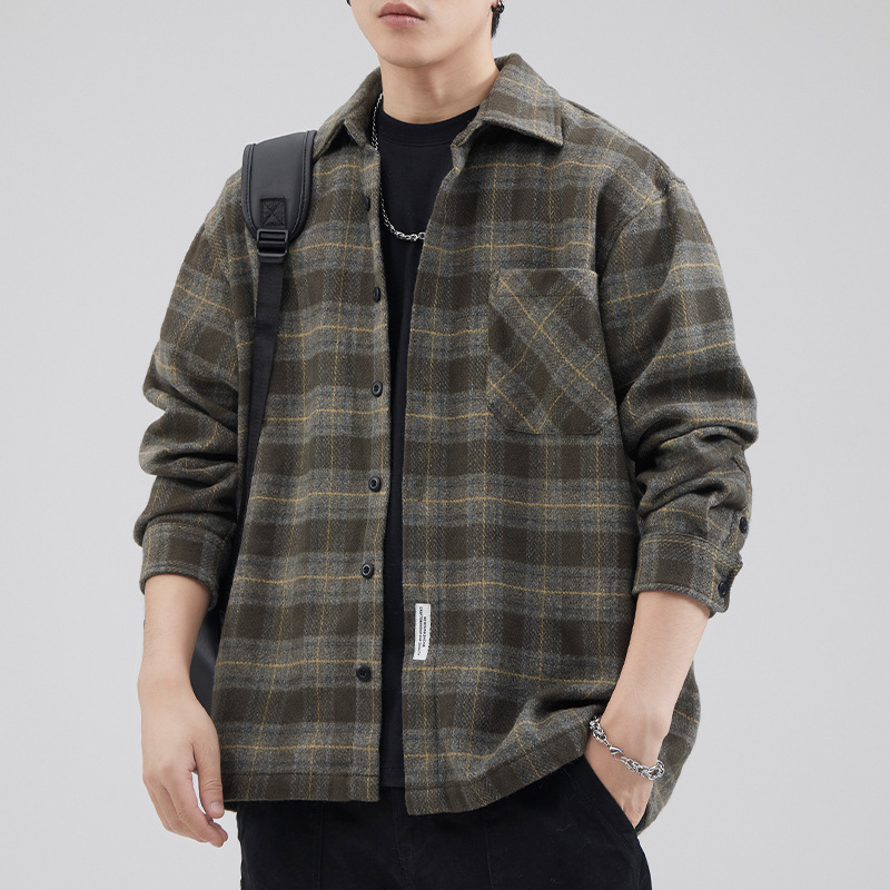 Muqiu 남성복 법 가을과 겨울 새로운 두꺼운 격자 무늬 셔츠 남성 패션 브랜드 아메리칸 샌딩 느슨한 무거운 셔츠 재킷
