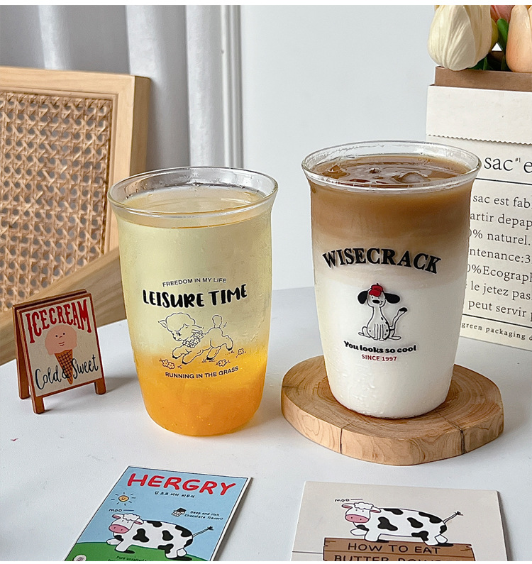 Lan Chuang 한 펑 유리 컵 커피 컵 콜드 추출물 컵 라떼 아침 식사 가정용 내열 전자 레인지 유리