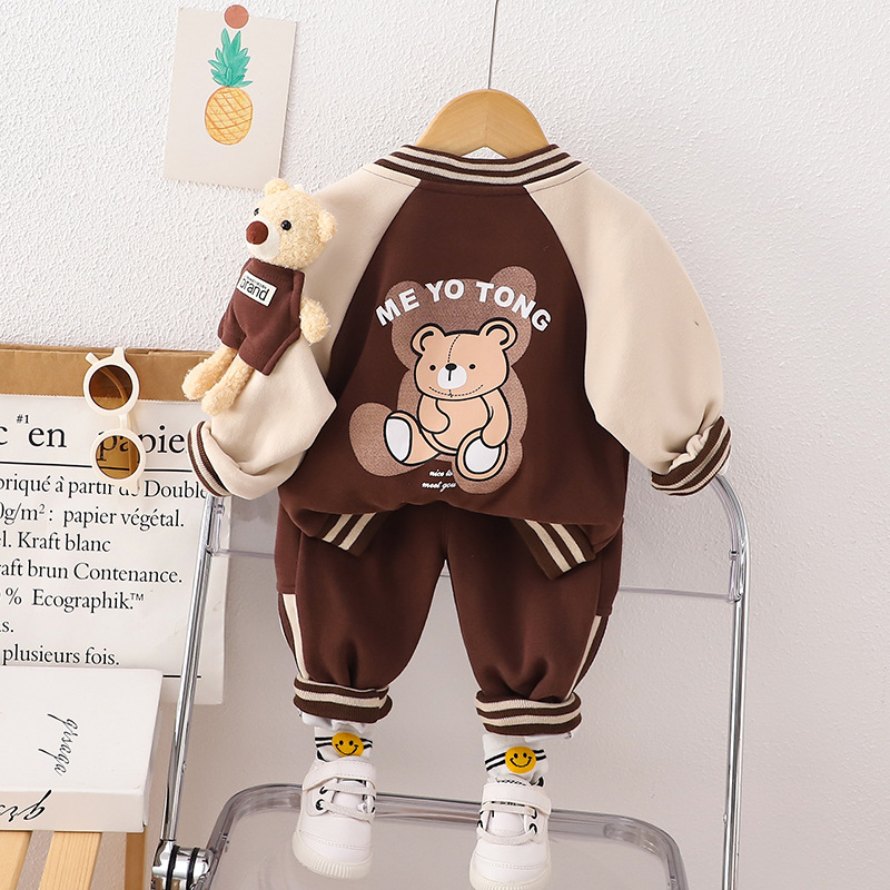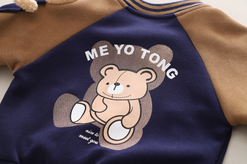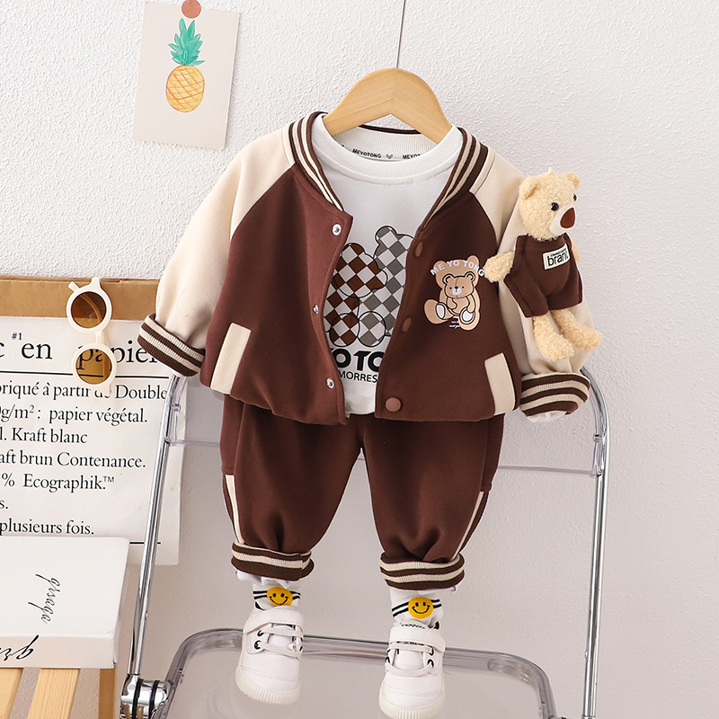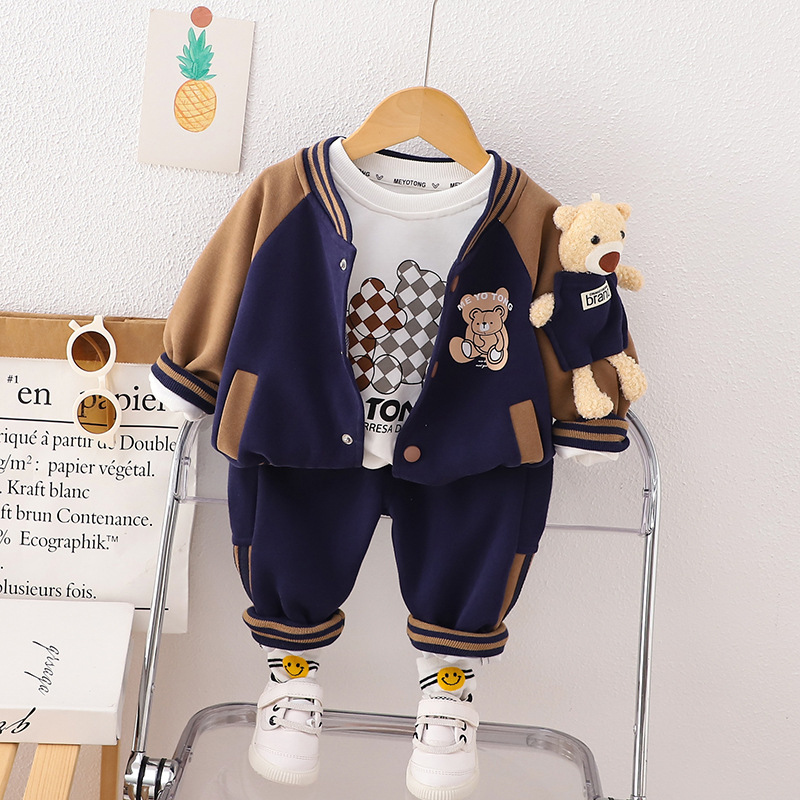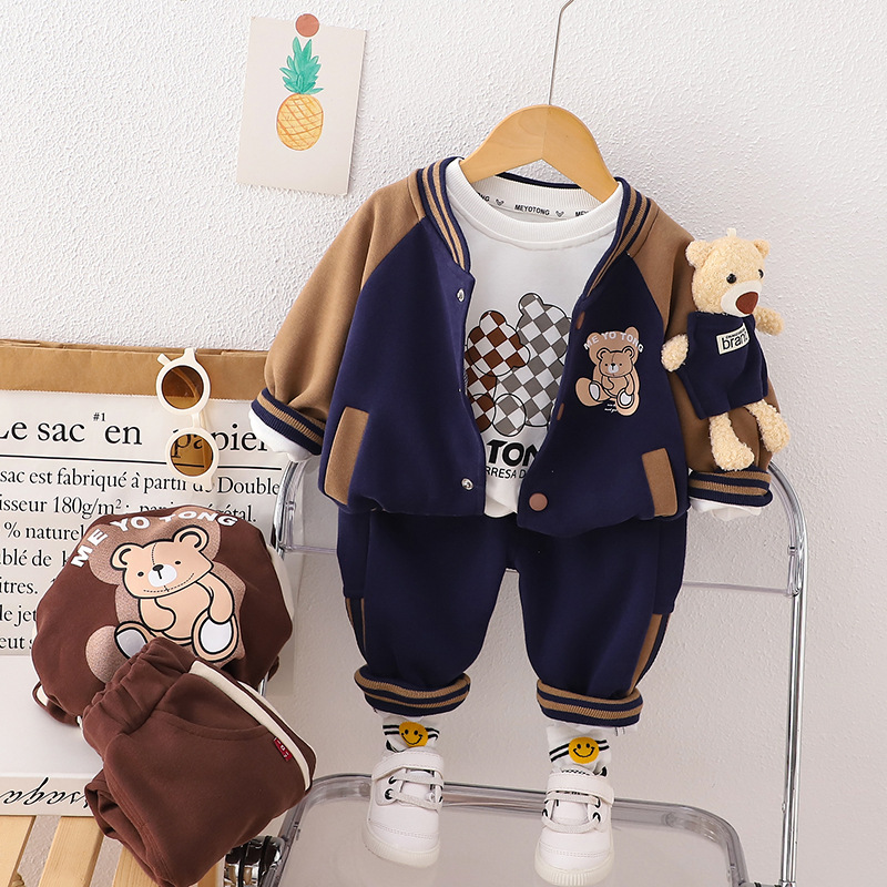 소년 3 차원 곰 긴 소매 3 피스 가을 새로운 중소 어린이 아기 소년 패션 스포츠 긴 소매 세트 조수