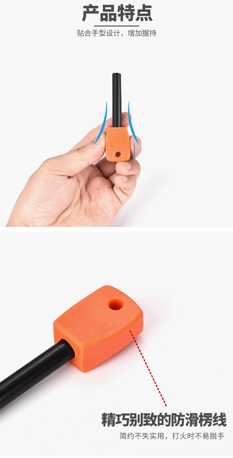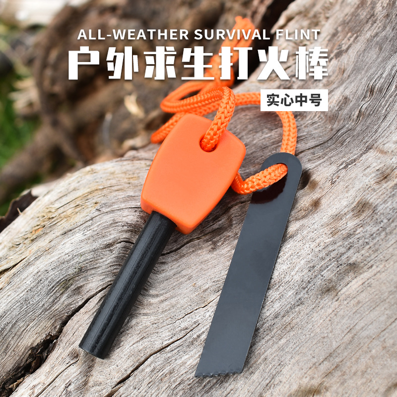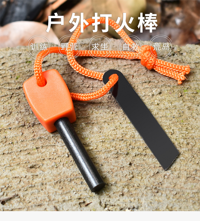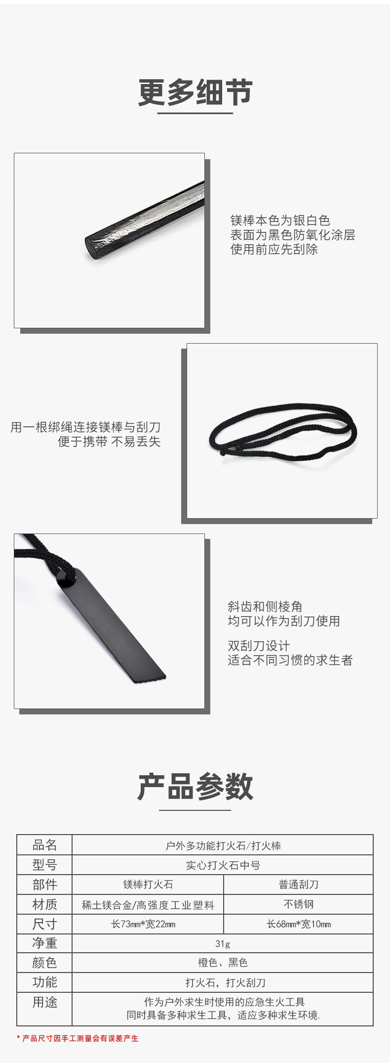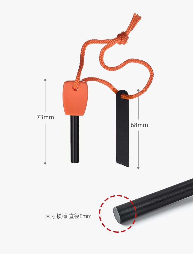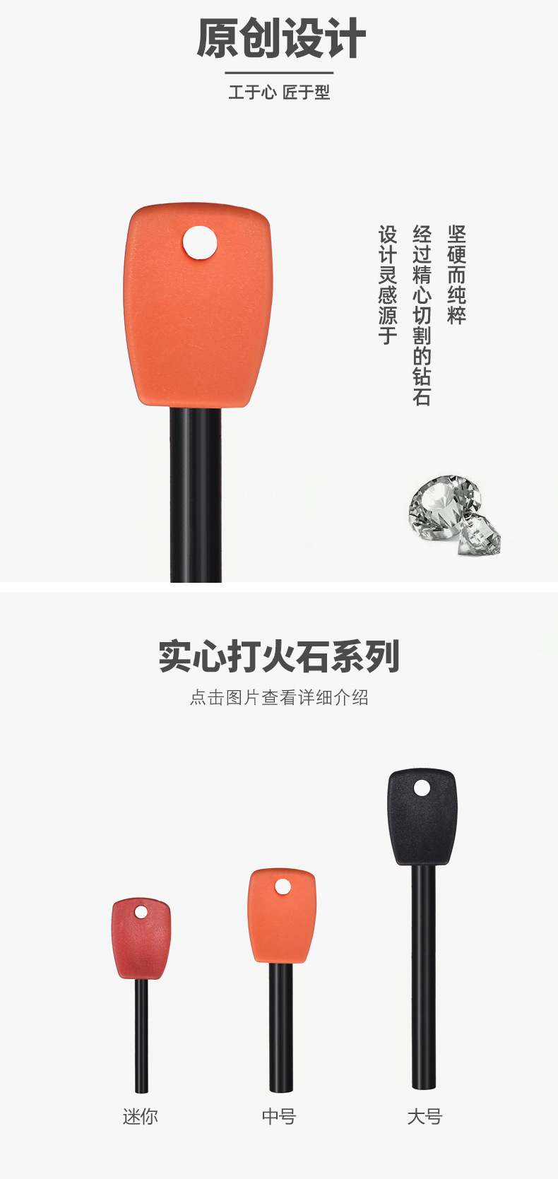 和超大号实心的对比,棒其实没有短太多,依然是加粗的8mm实心镁棒,实心的哦,全部都能打火的,出这个尺寸的目的主要是有些外贸客户用来配SOS救生套装的,或者PSK救生盒的,不受防水盒的长度限制,很实用也很实惠的一款!