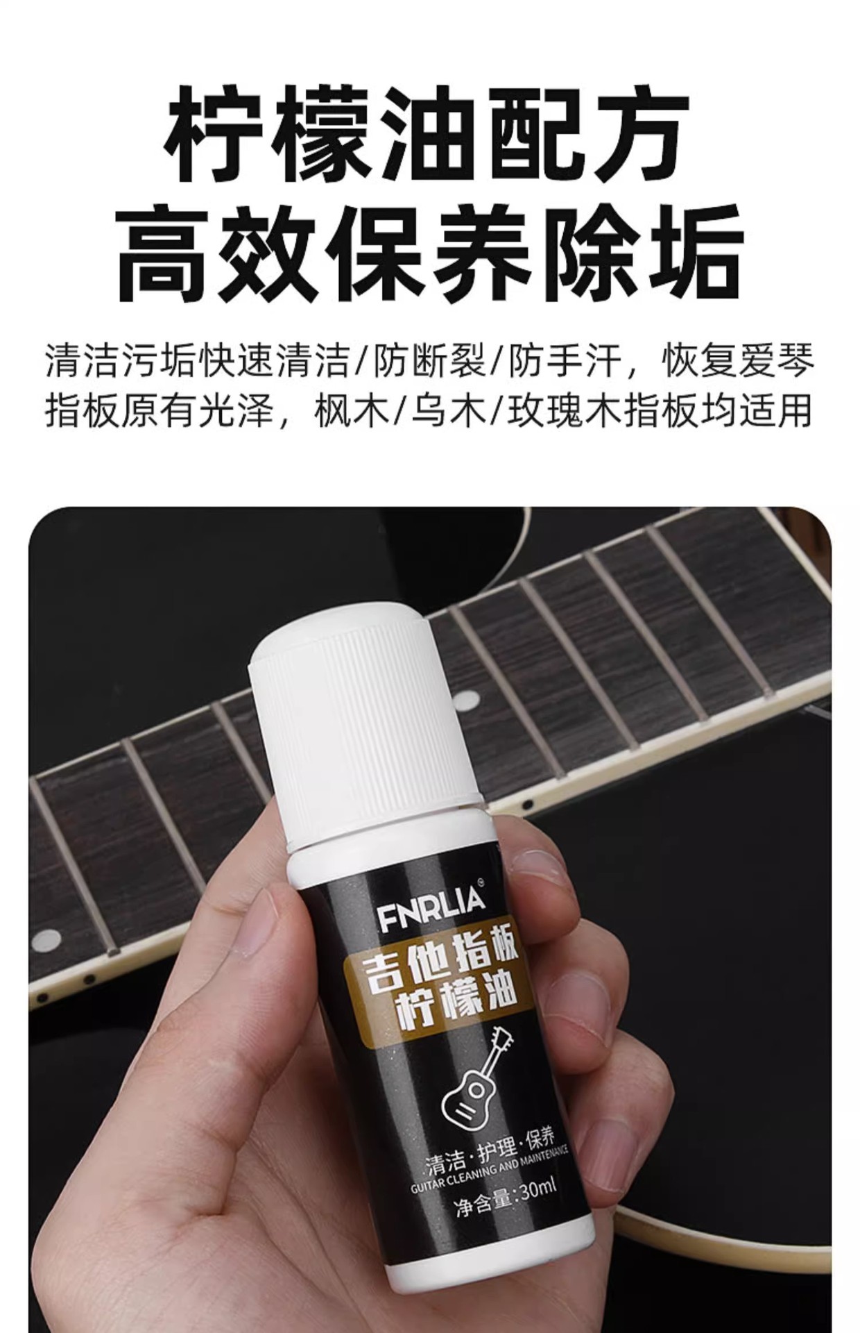 포크 기타 핑거 보드 레몬 오일 일렉트릭 기타 우쿨렐레 클리너 리노베이션 케어 솔루션 악기 유지 보수 액세서리