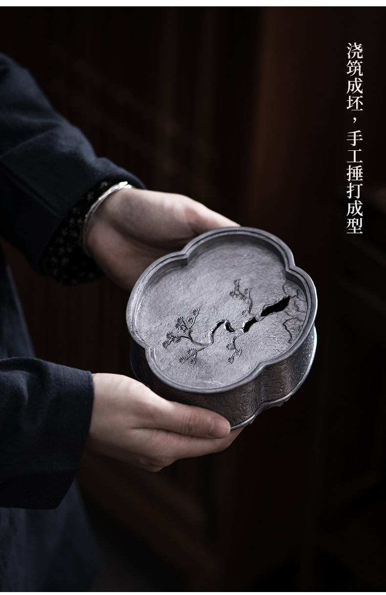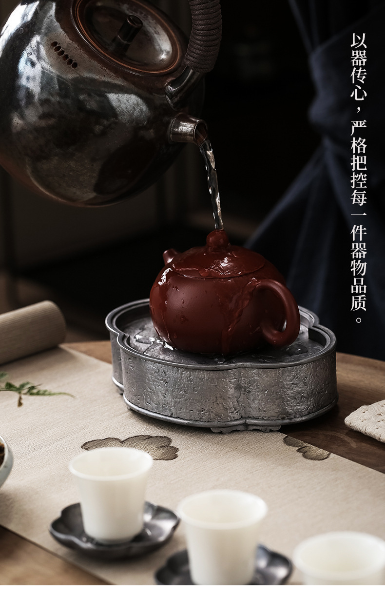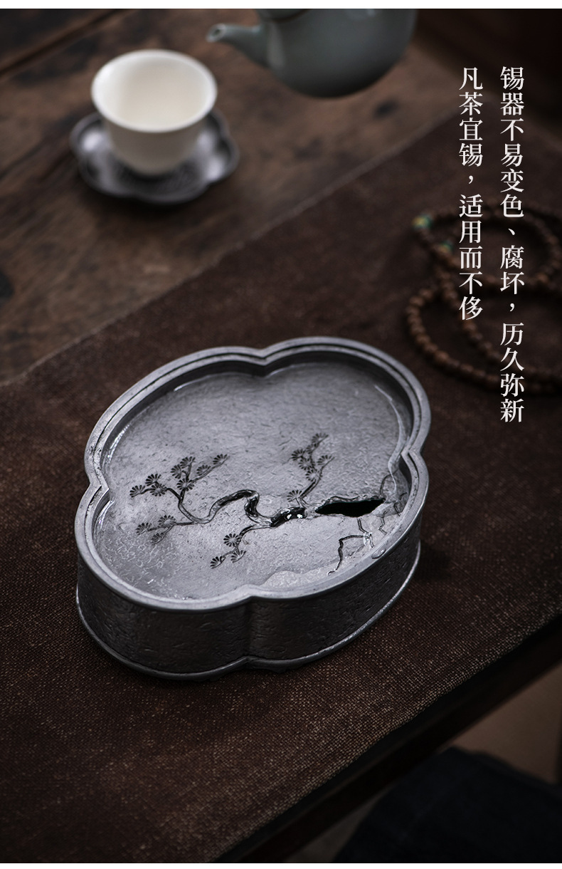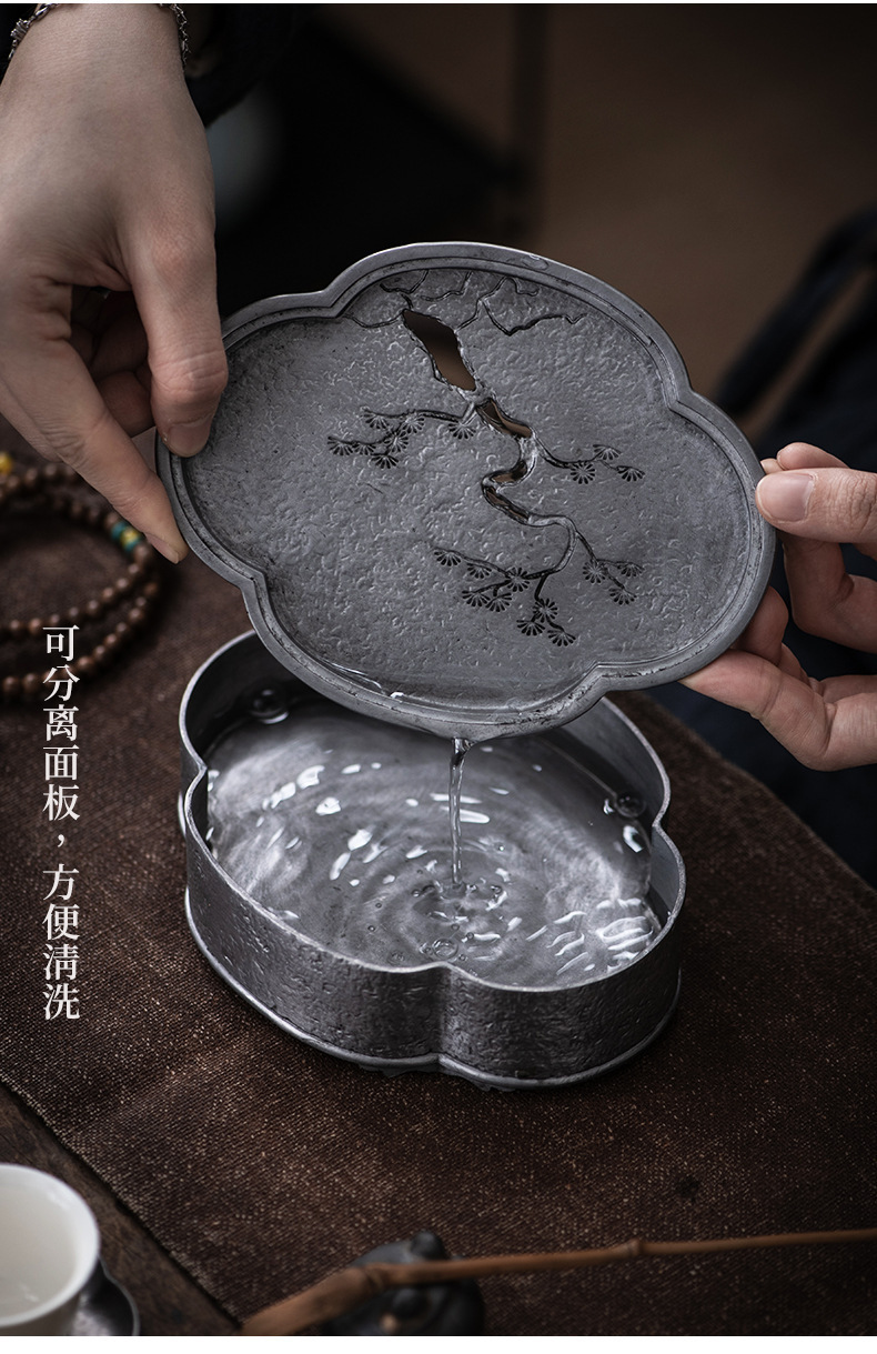 레트로 일본식 순수 주석 오래 된 냄비 쿵푸 차 세트 드라이 티 테이블 티 플레이트 건물 물 냄비 티 트레이 냄비 매트 물 저장스토어 가기