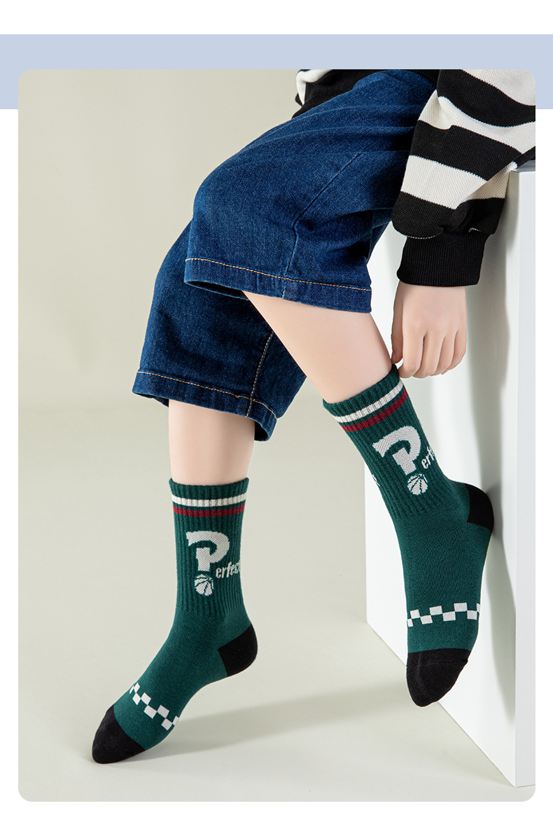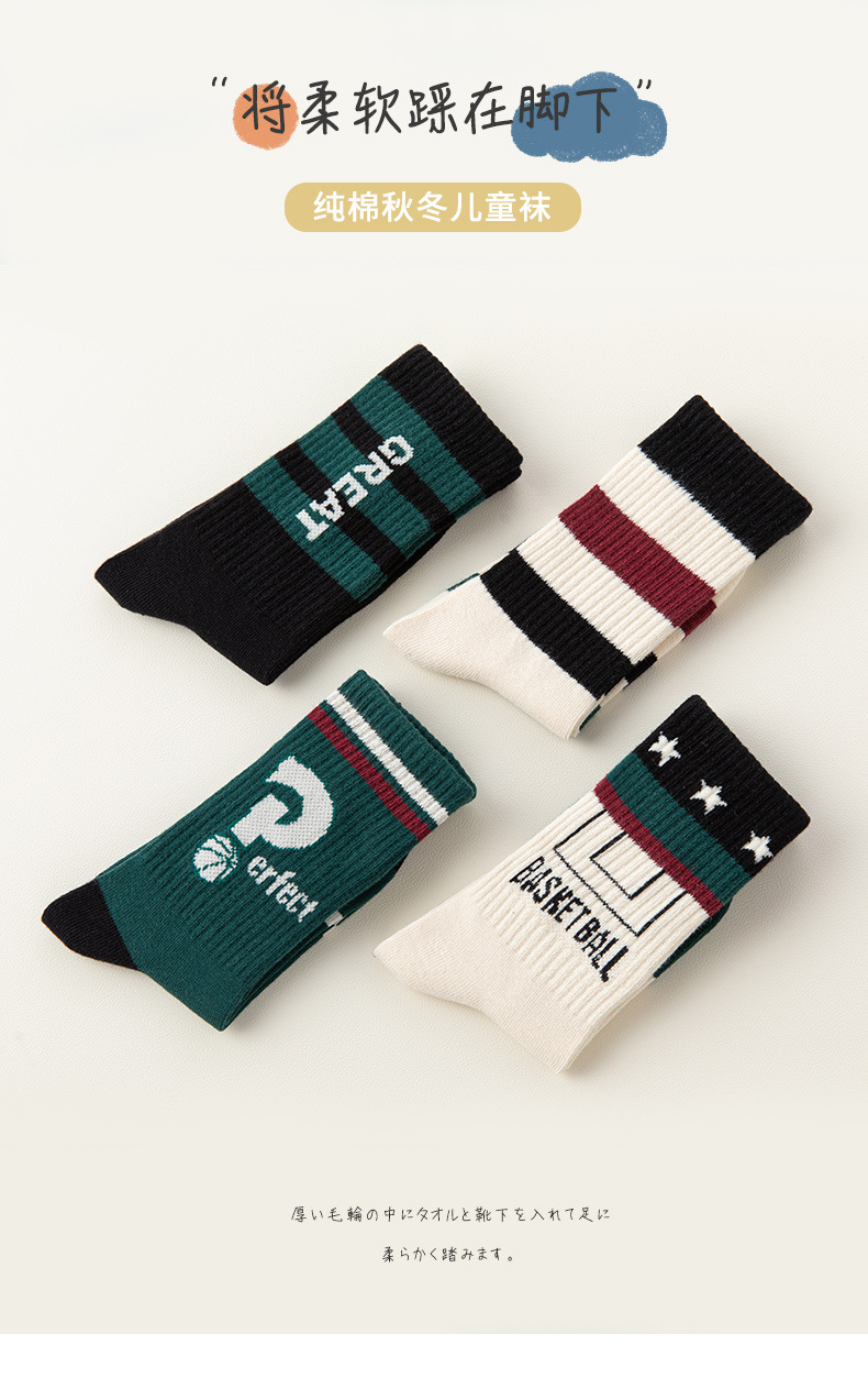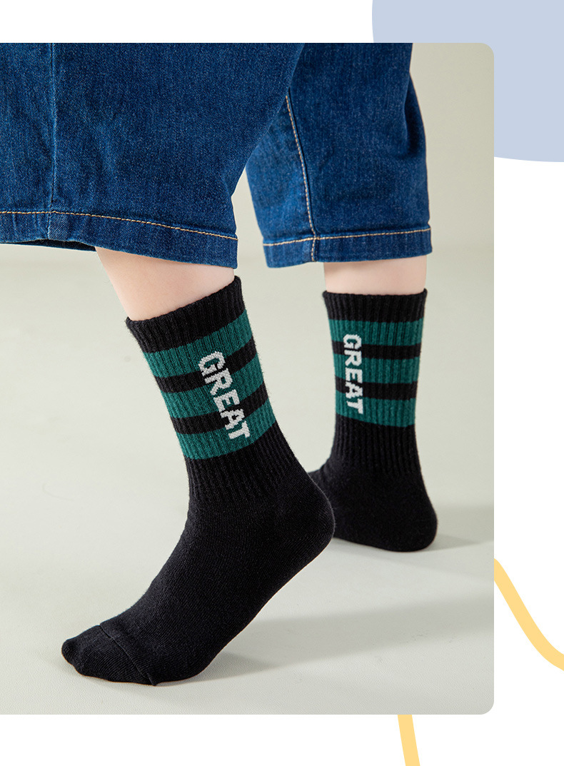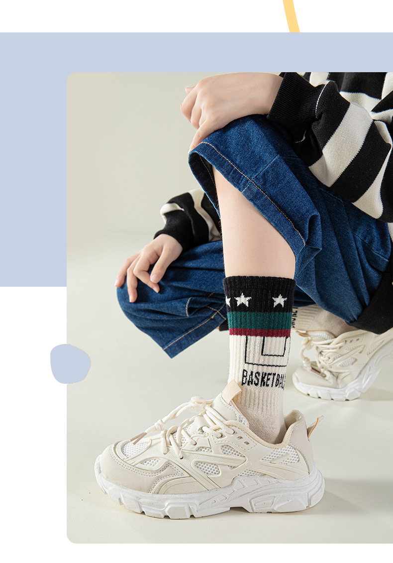 어린이 양말 봄과 가을 소년과 소녀 어린이 줄무늬 편지 학생 스포츠 패션 양말 면 스타킹