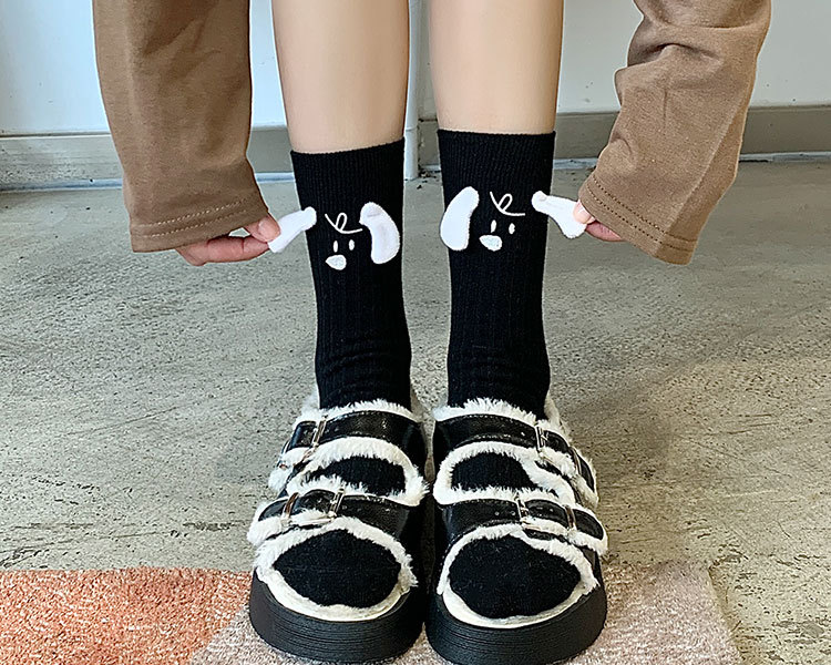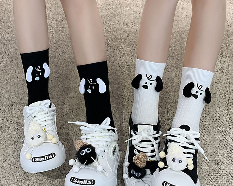 인터넷 빨간 양말 여자의 귀여운 재미있는 개 자수 봄과 여름 중간 크기 양말 만화 강아지 3 차원 귀 연인 양말스토어 가기