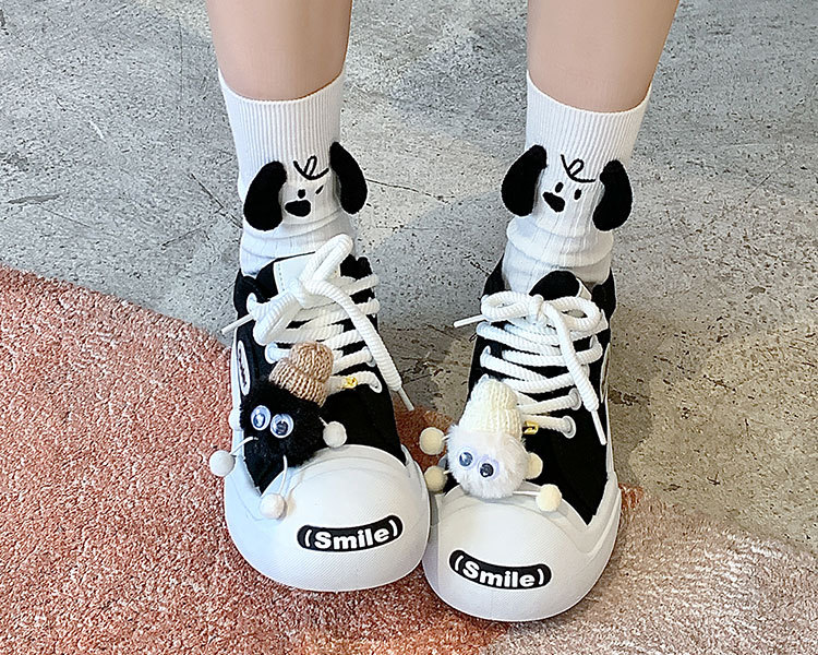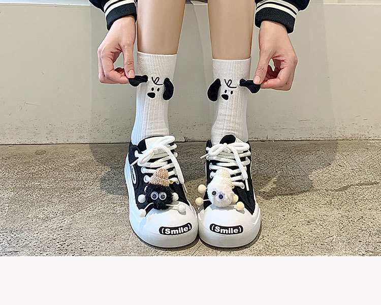 인터넷 빨간 양말 여자의 귀여운 재미있는 개 자수 봄과 여름 중간 크기 양말 만화 강아지 3 차원 귀 연인 양말