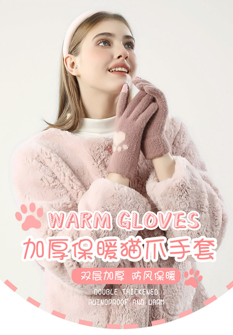 여성용 겨울 장갑, 귀여운 사이클링 방풍 따뜻한 장갑, 벨벳 및 두꺼운 한국식 겨울 터치 스크린 장갑, 겨울스토어 가기