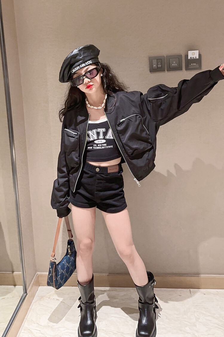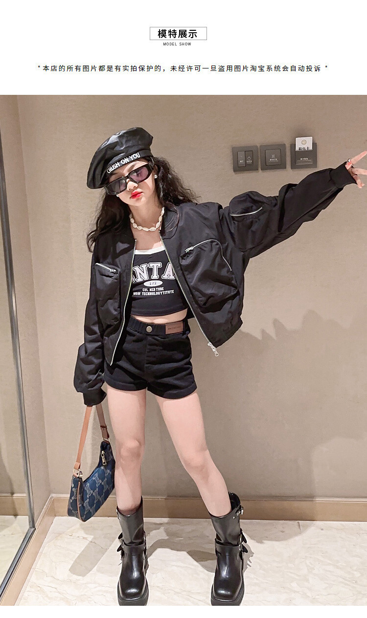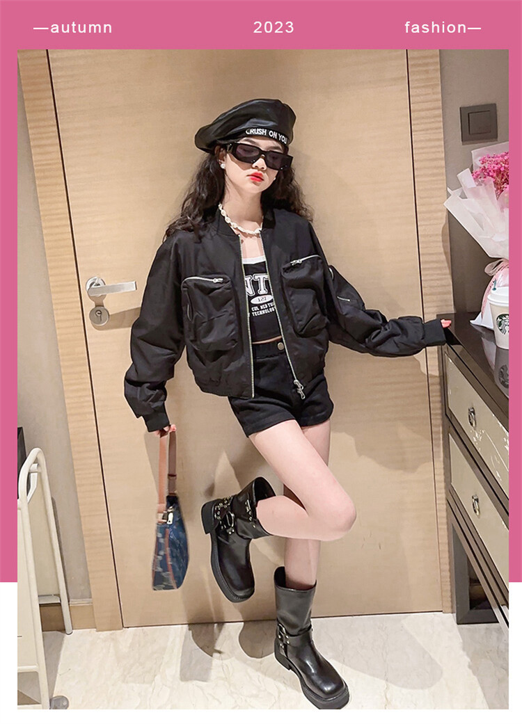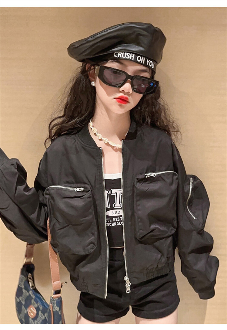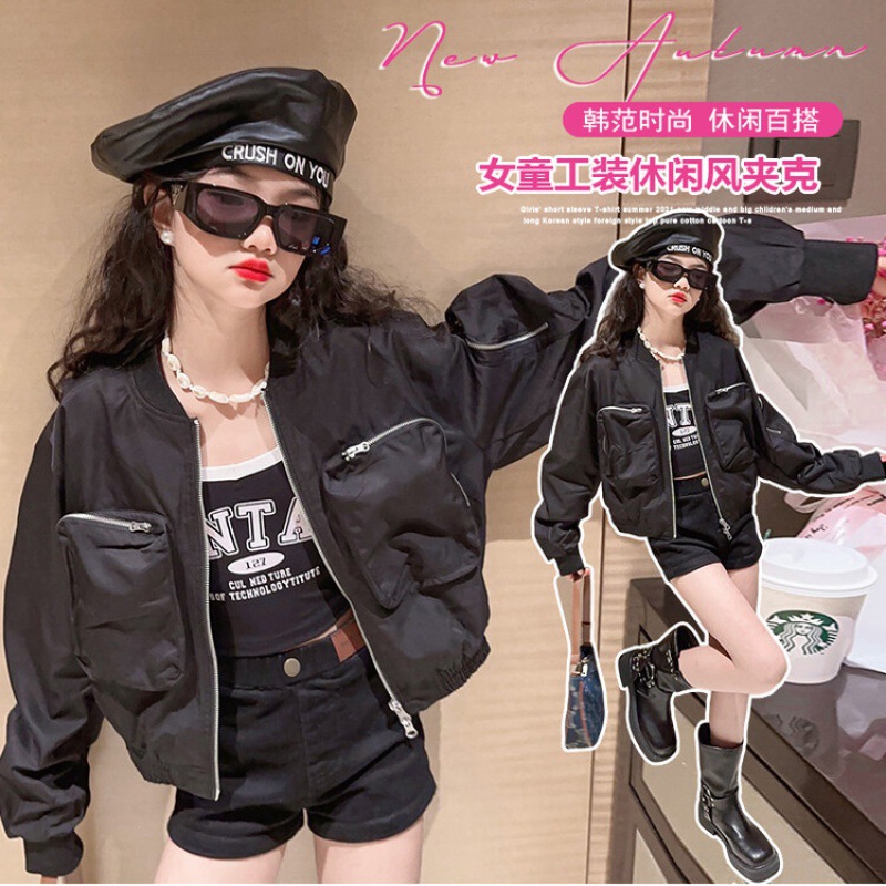 크로스 보더 아동복 소녀의 짧은 폭격기 재킷 코트 2023 가을 어린이 야구 세트 소녀의 유행 지퍼 셔츠스토어 가기