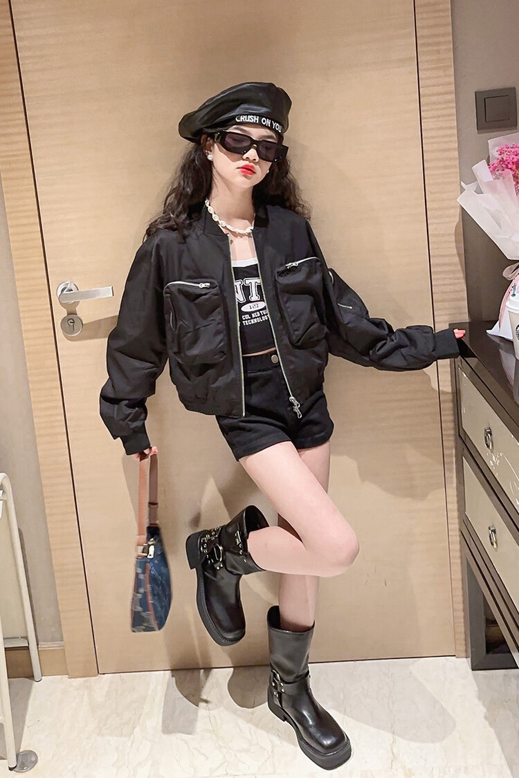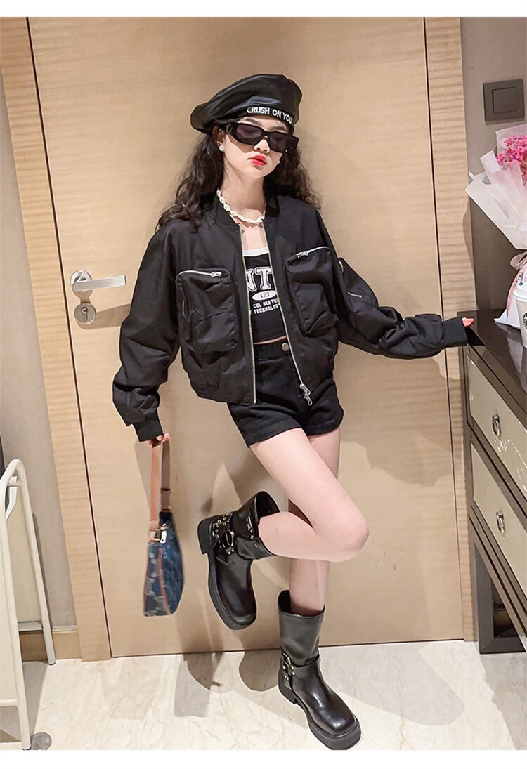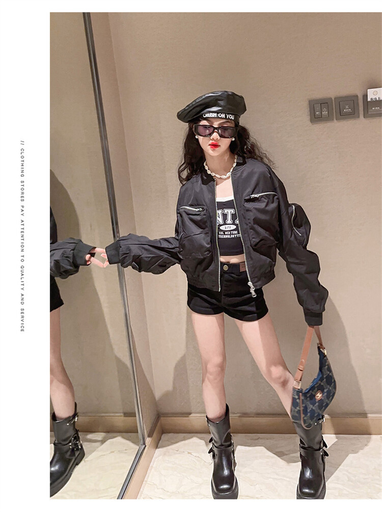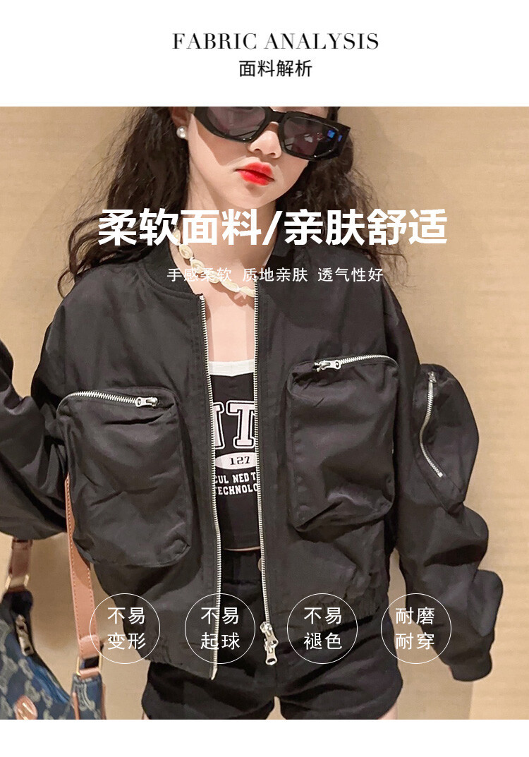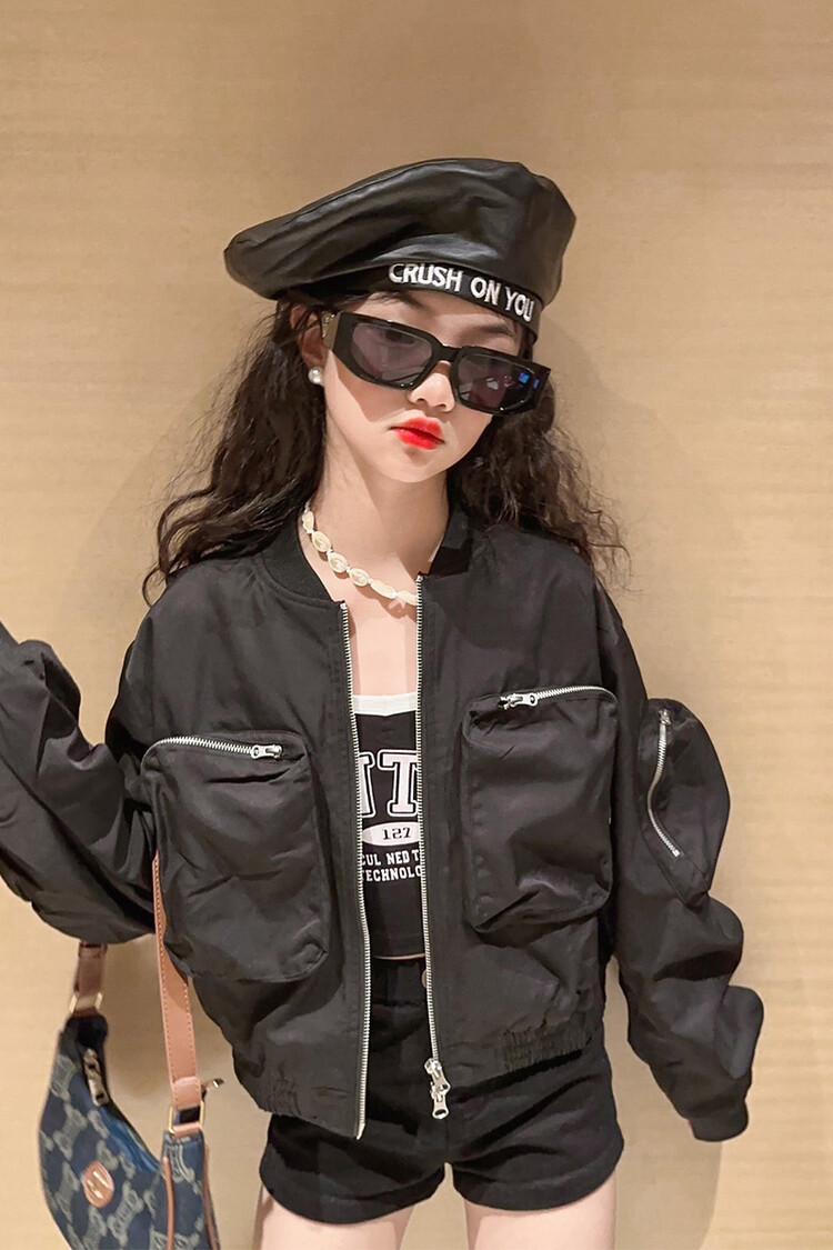 크로스 보더 아동복 소녀의 짧은 폭격기 재킷 코트 2023 가을 어린이 야구 세트 소녀의 유행 지퍼 셔츠스토어 가기