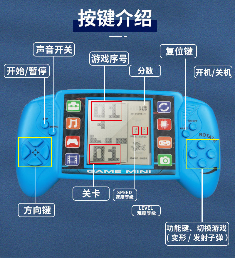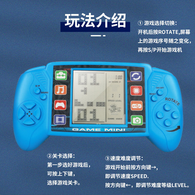 클래식 큰 화면 테트리스 게임기 어린이 복고풍 향수 8090 장난감 핸드 헬드 게임 휴대용 도매스토어 가기