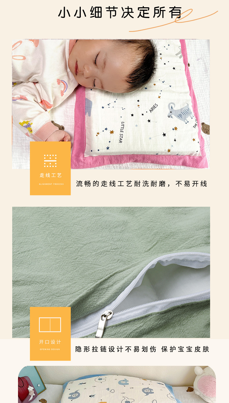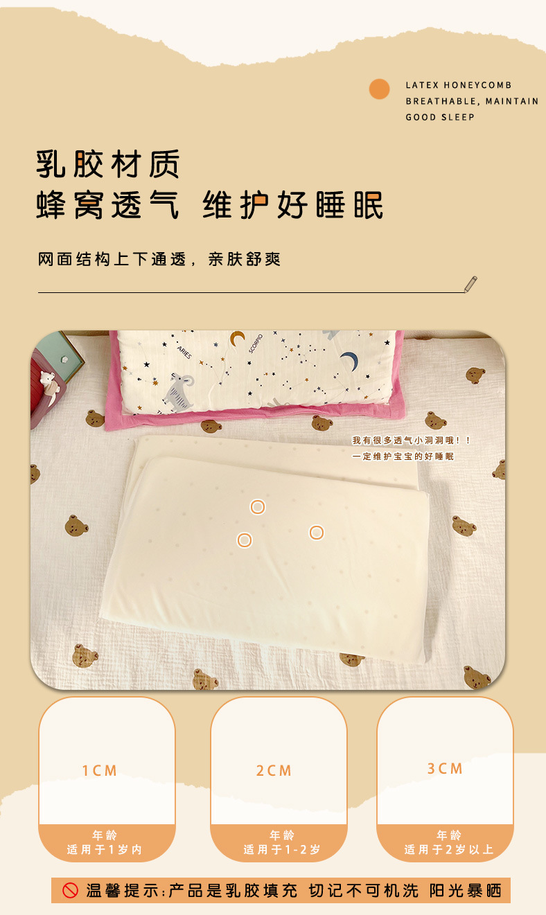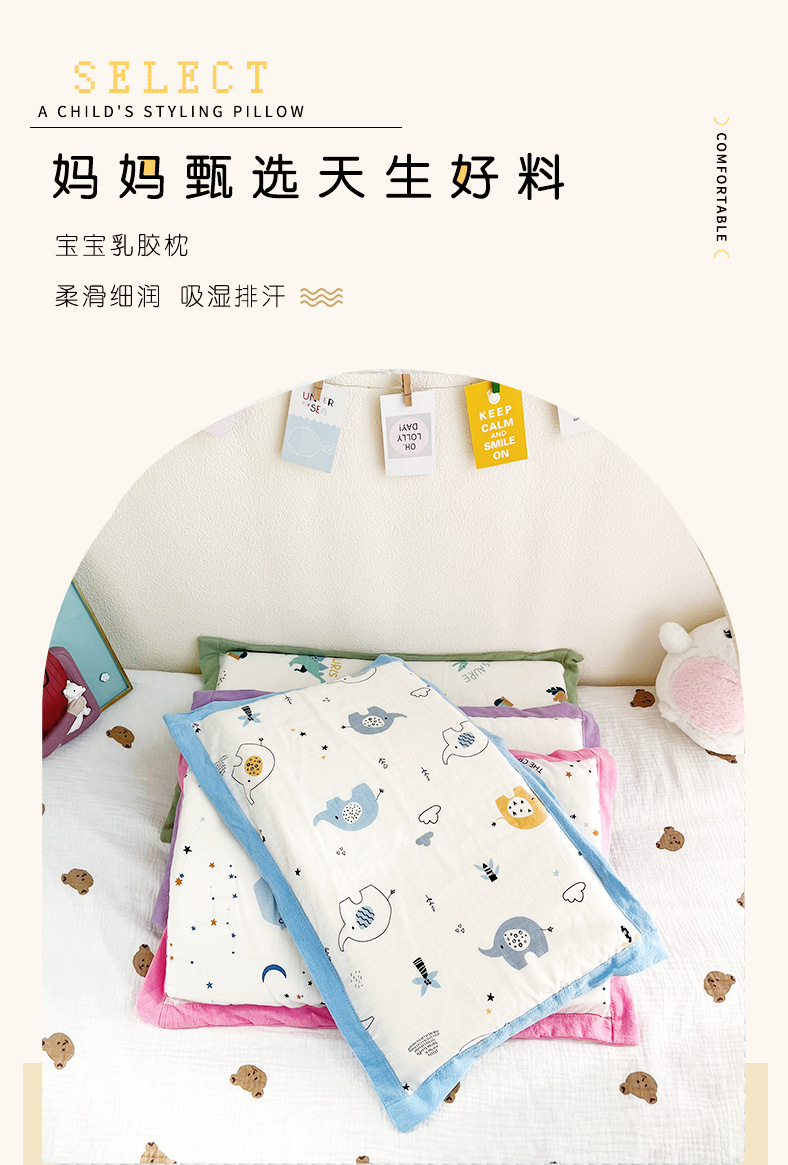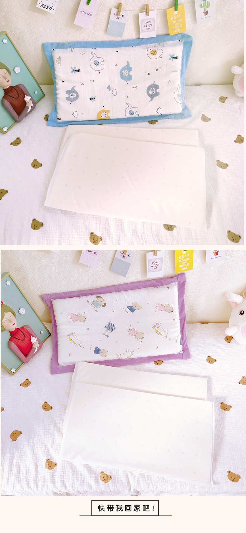 0-6세 순면 거즈 어린이용 베개, 이중 코어, 높이 조절 가능, 라텍스 베개, 베개 커버 탈부착 및 세탁 가능, 유아용스토어 가기
