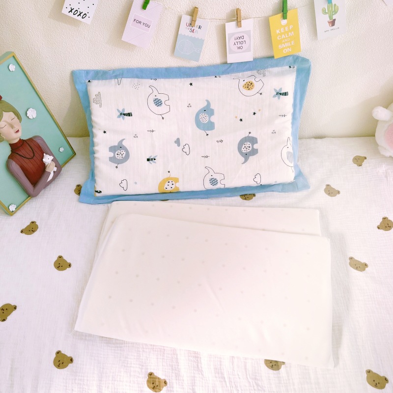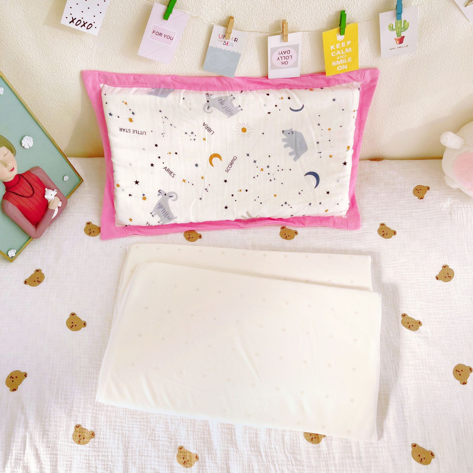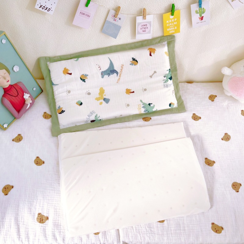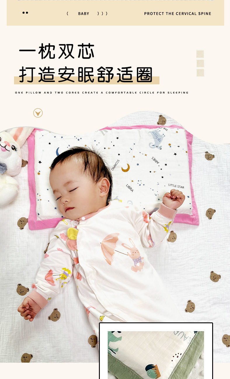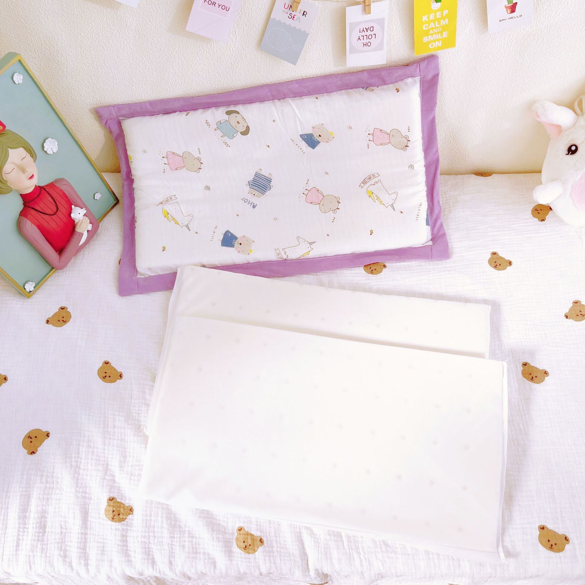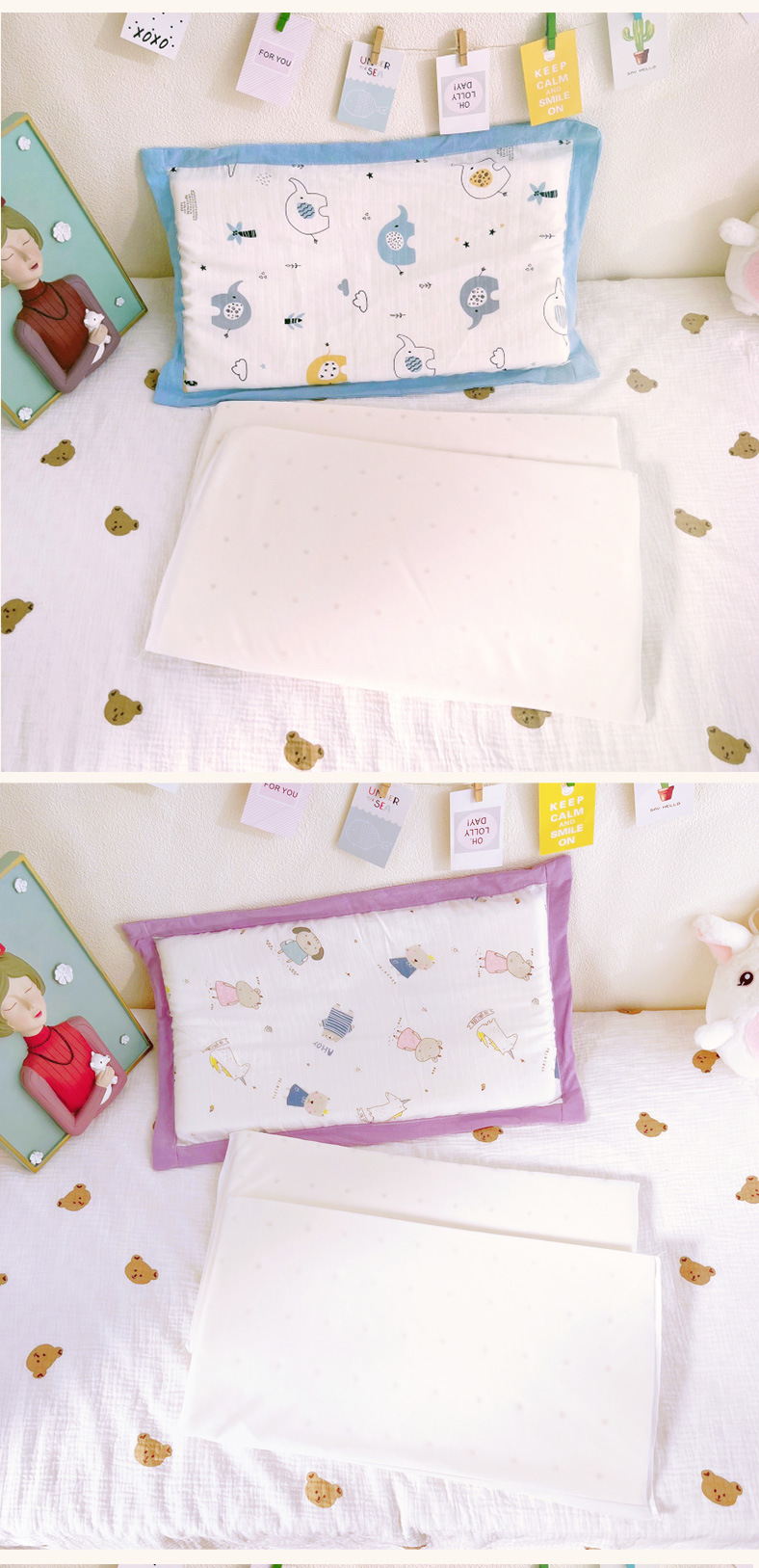 0-6세 순면 거즈 어린이용 베개, 이중 코어, 높이 조절 가능, 라텍스 베개, 베개 커버 탈부착 및 세탁 가능, 유아용