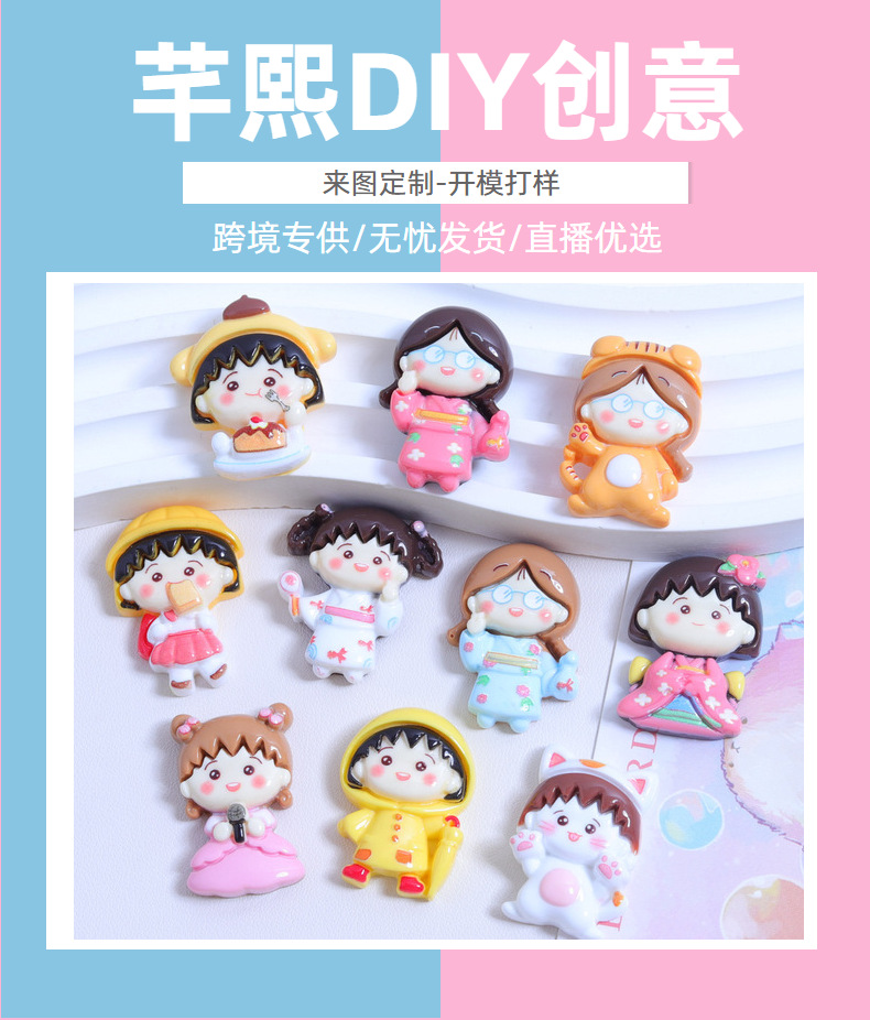 만화 공 소녀 밝은 DIY 크림 접착제 수제 휴대 전화 케이스 헤어 클립 오일 드롭 보석 수지 액세서리 재료스토어 가기