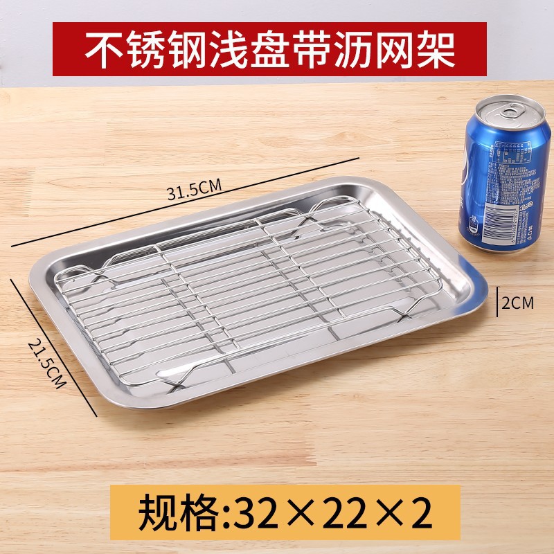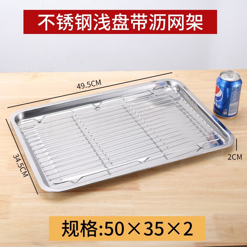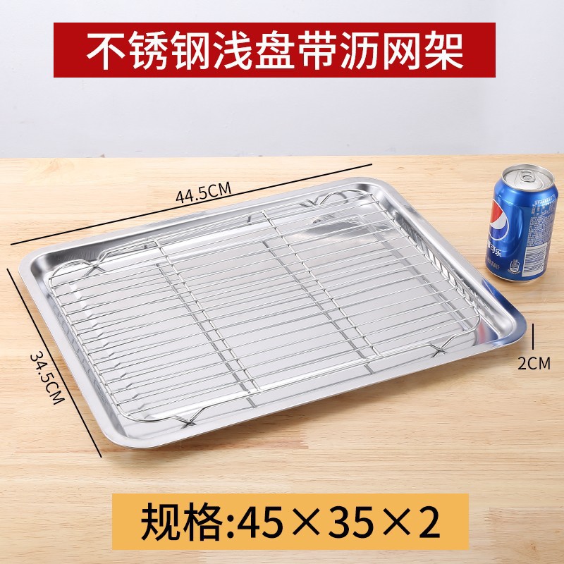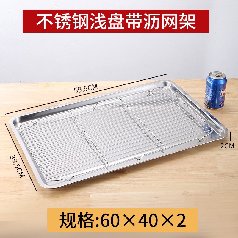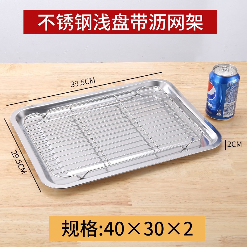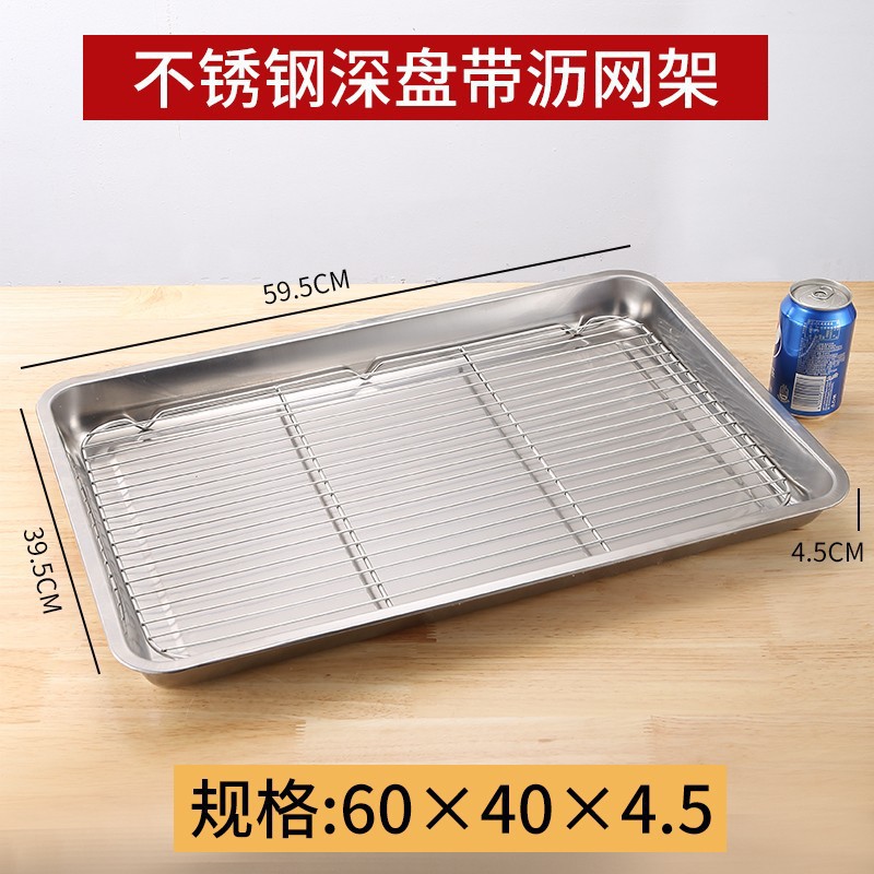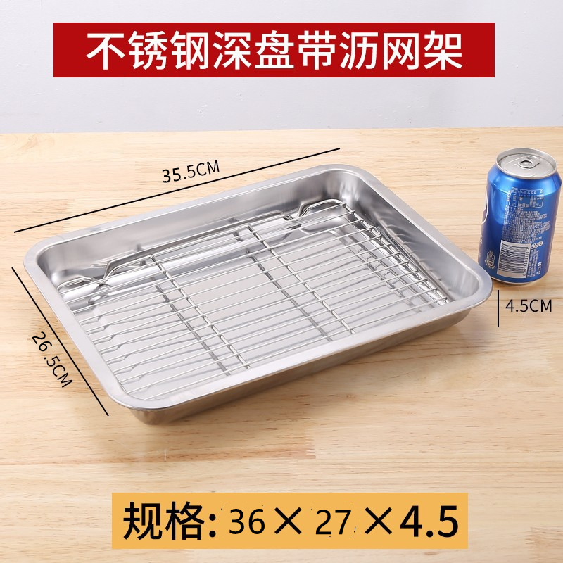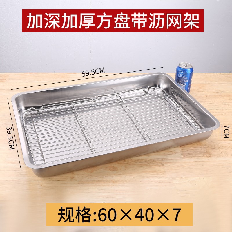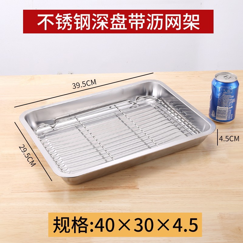 네트 오일 제어 랙이있는 스테인레스 스틸 스퀘어 플레이트 상업용 트레이 워터 필터 오일 필터 플레이트 요리 식품 디스플레이 플레이트 바베큐 프린트 플레이트스토어 가기