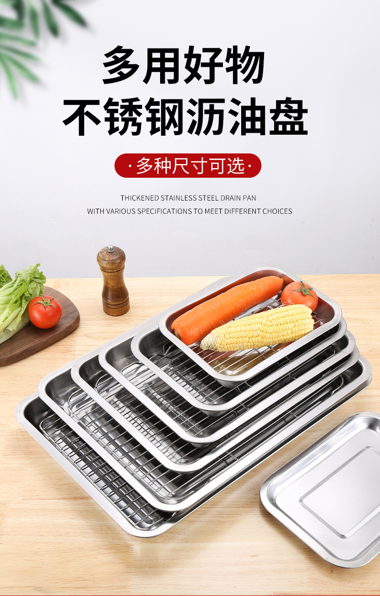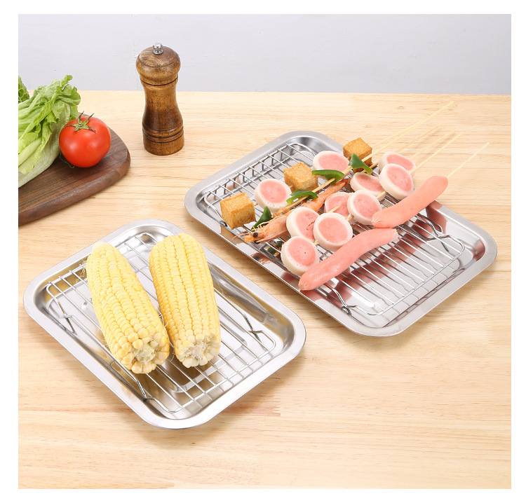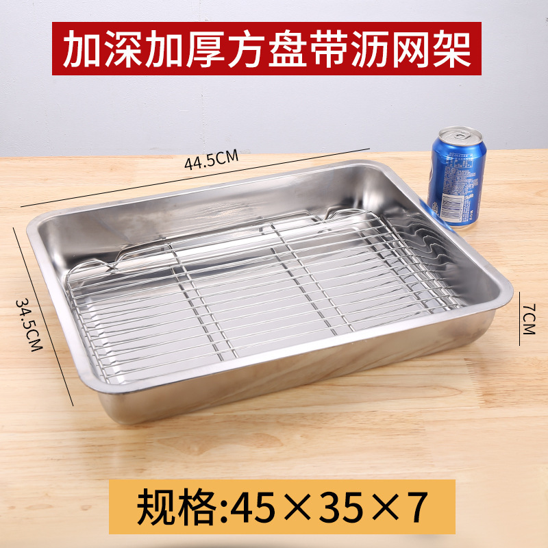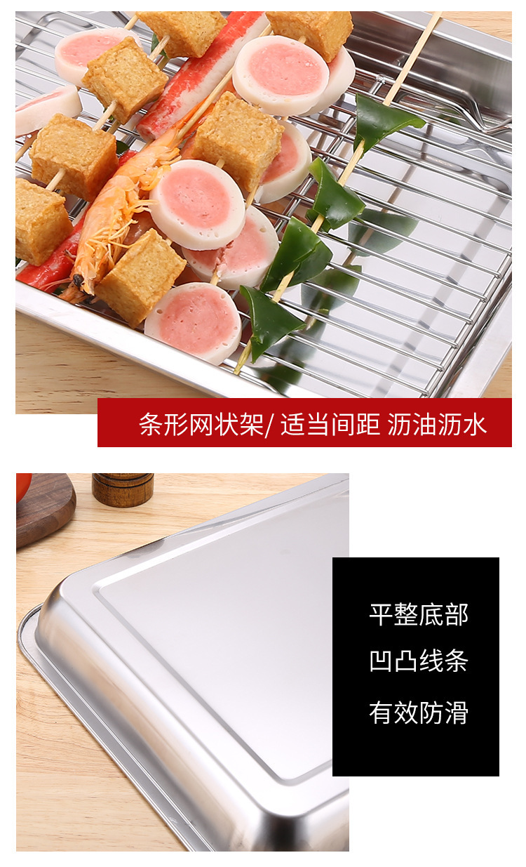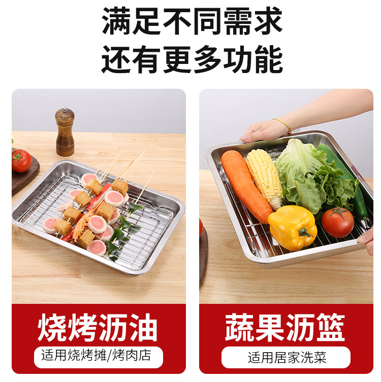 네트 오일 제어 랙이있는 스테인레스 스틸 스퀘어 플레이트 상업용 트레이 워터 필터 오일 필터 플레이트 요리 식품 디스플레이 플레이트 바베큐 프린트 플레이트