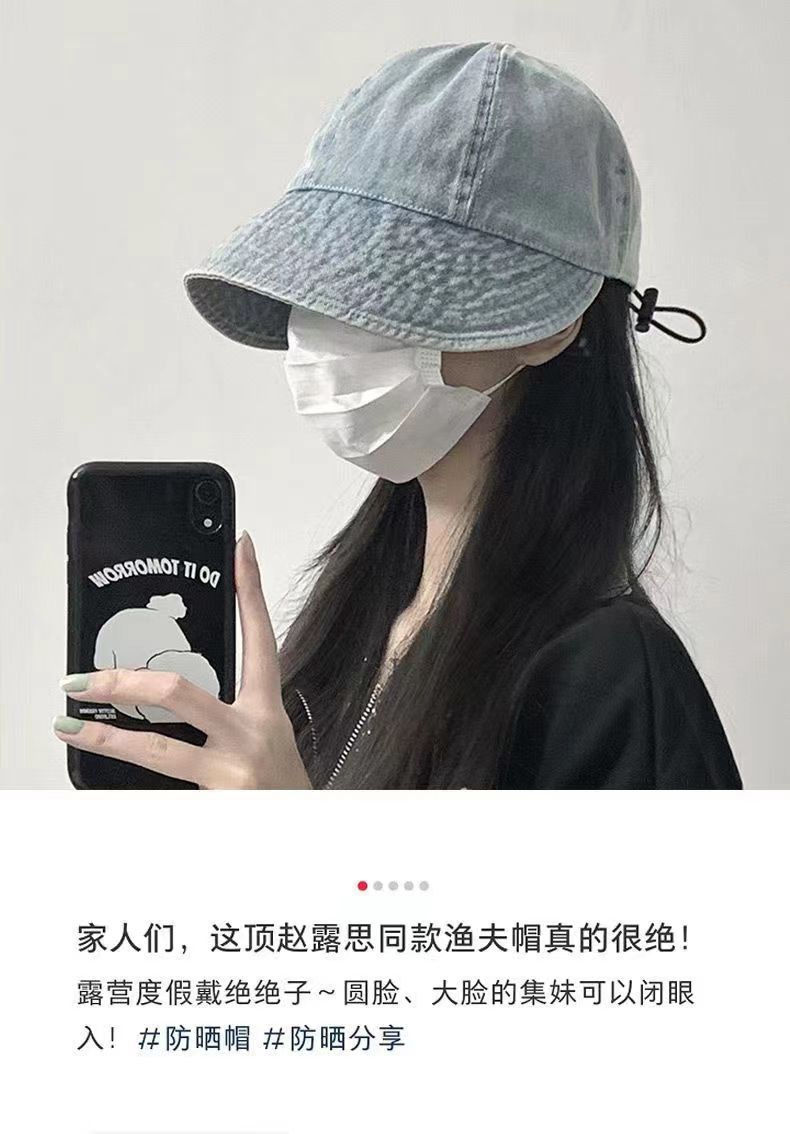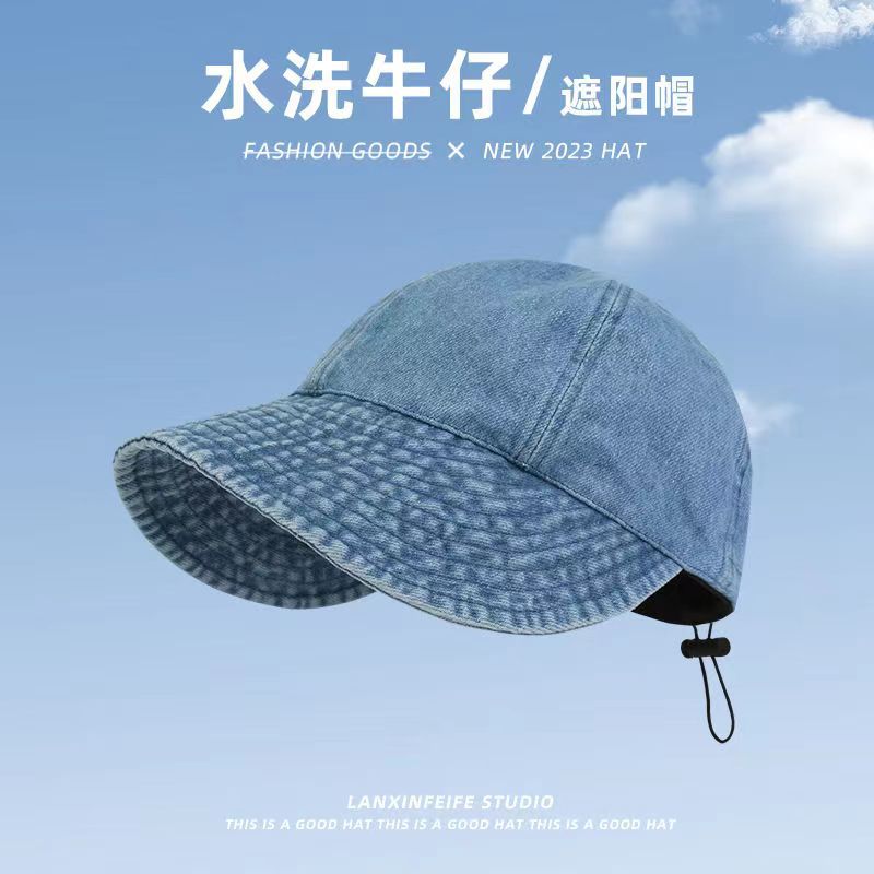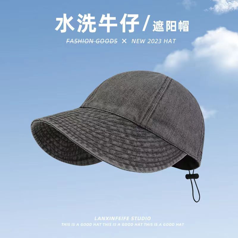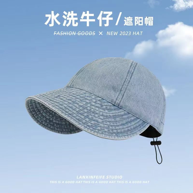 워싱 데님 레트로 챙이 넓은 데님 오리 모자, 얼굴이 보이는 작은 야구 모자, 접이식 양산, 다용도 세면대 모자