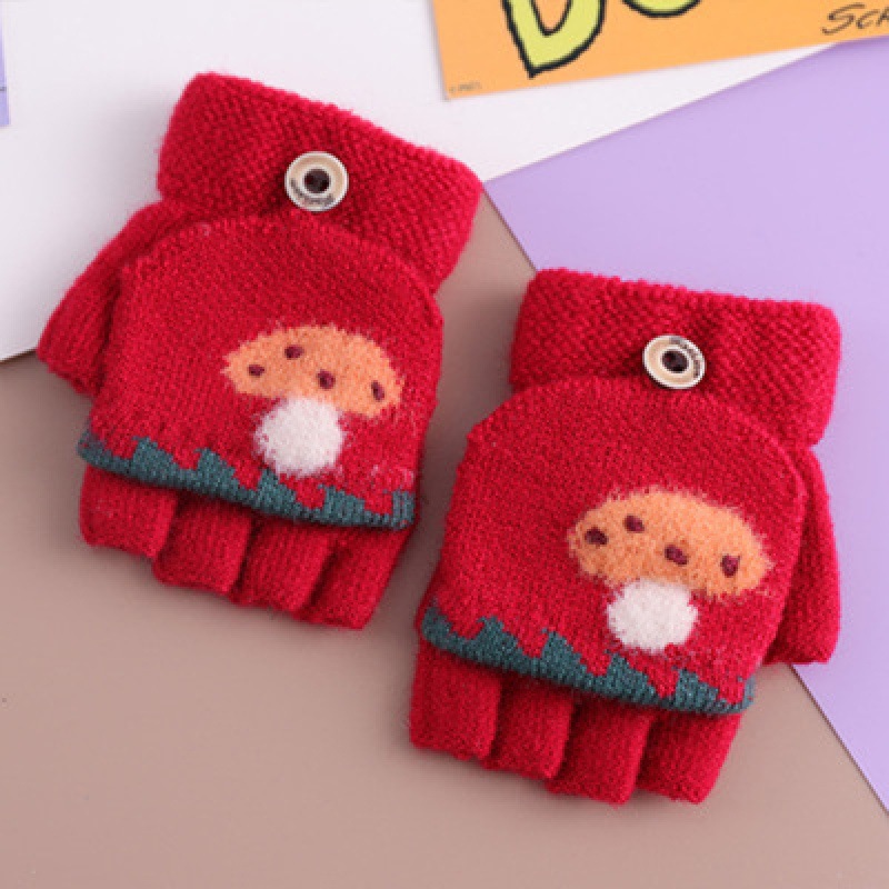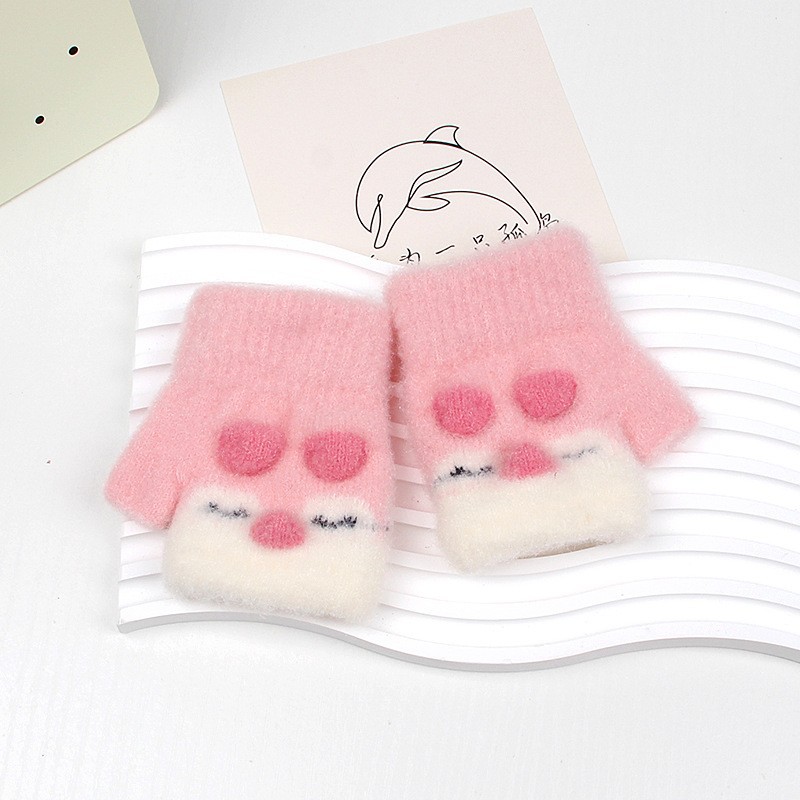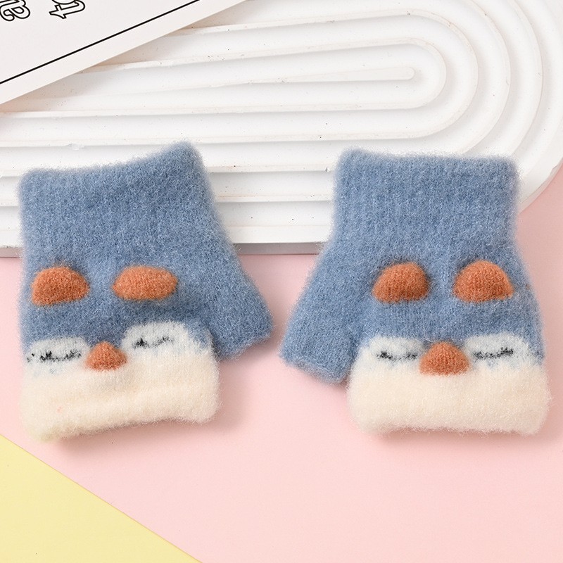 0-4 세 어린이 장갑 겨울 따뜻한 귀여운 만화 소년 소녀들이 두꺼워 진 어린이 양모 반 손가락 장갑