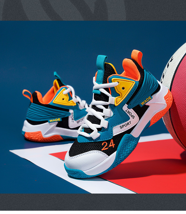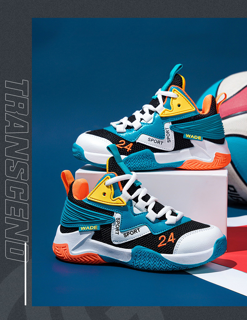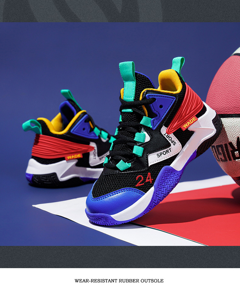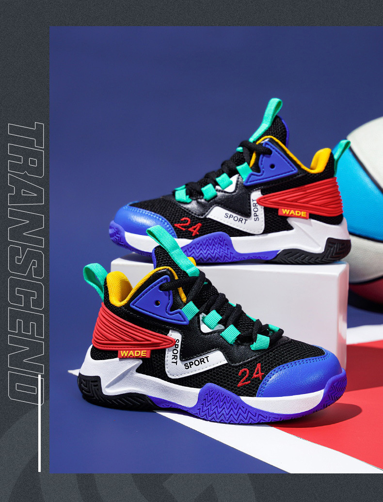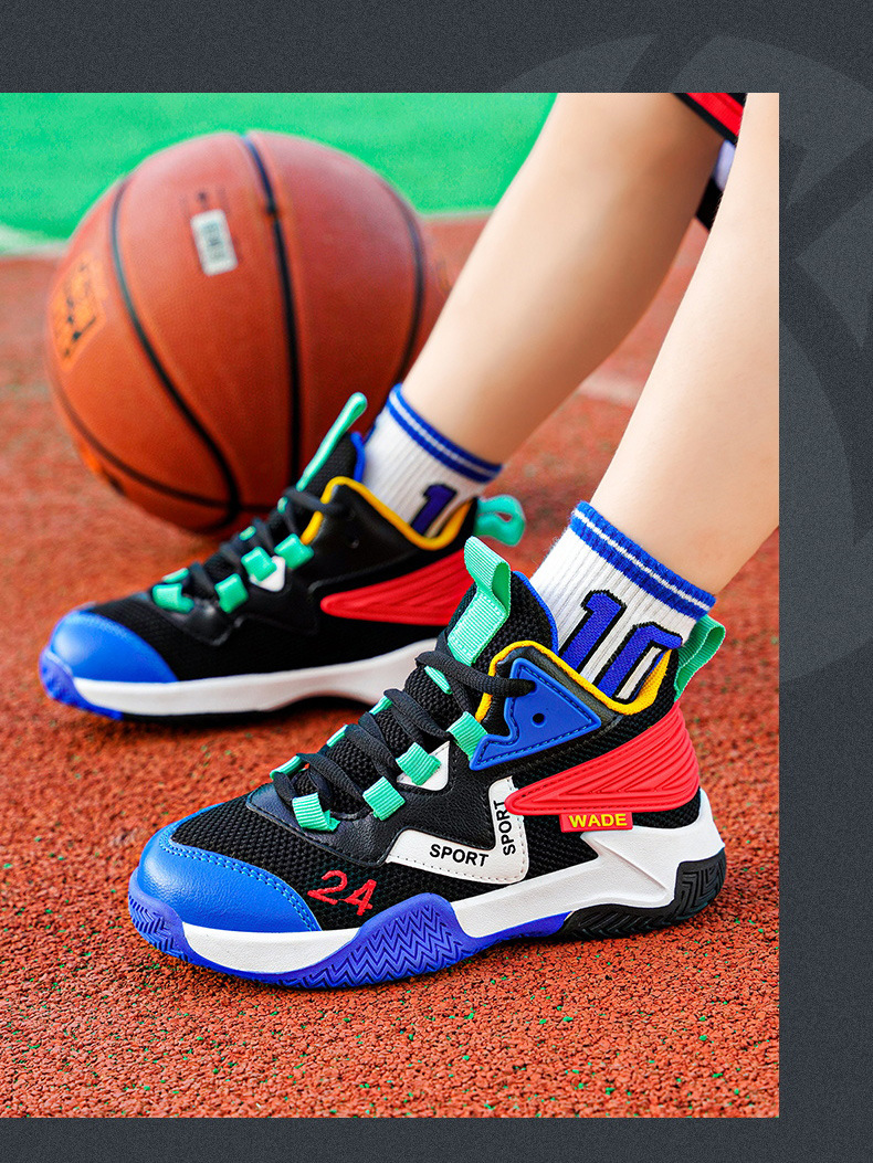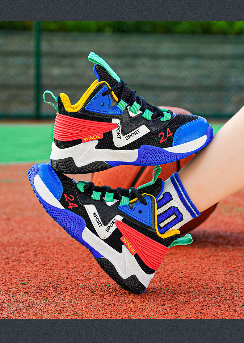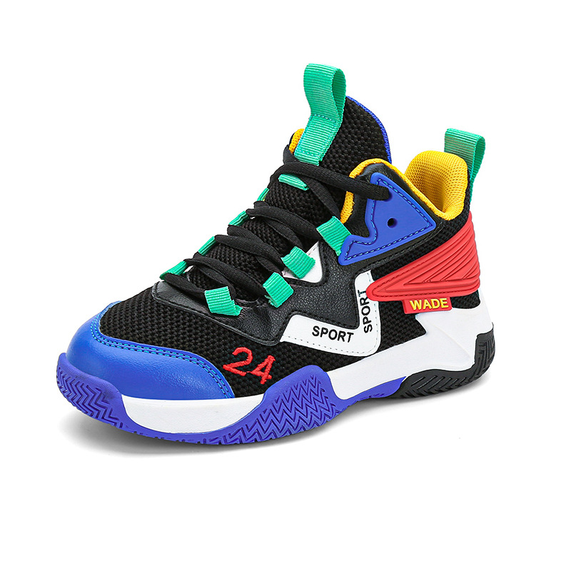 어린이 농구화 소년 2023 봄과 가을 새로운 중대형 어린이 통기성 내마모성 학생 훈련 미끄럼 방지 스포츠 신발
