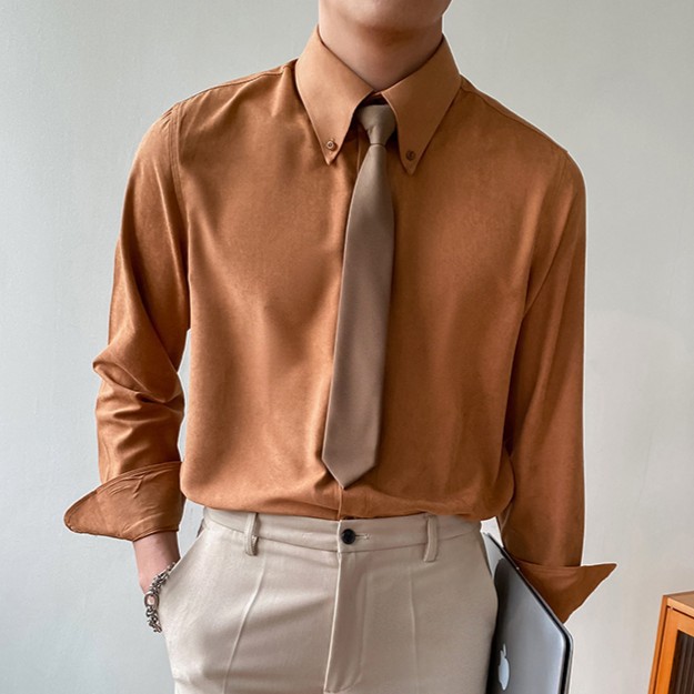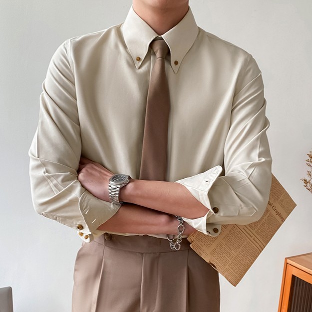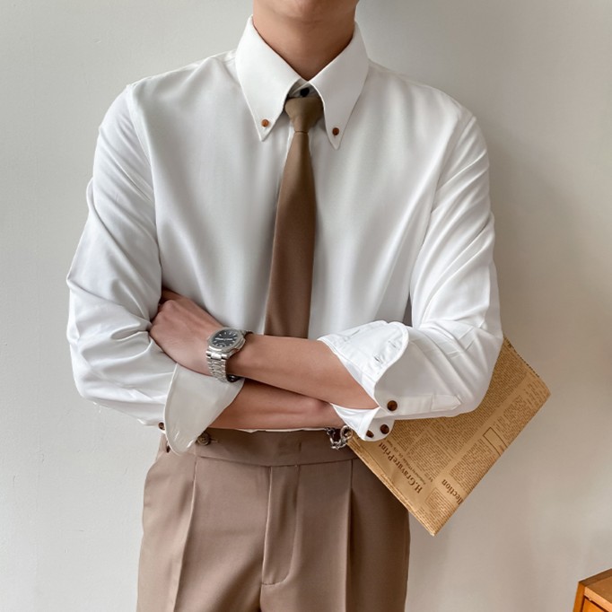 하이 엔드 센스 빅 포인트 칼라 셔츠 신사 비즈니스 원피스 남자의 가을 한국 스타일 슬림 핏 유행 흰색 셔츠 긴팔