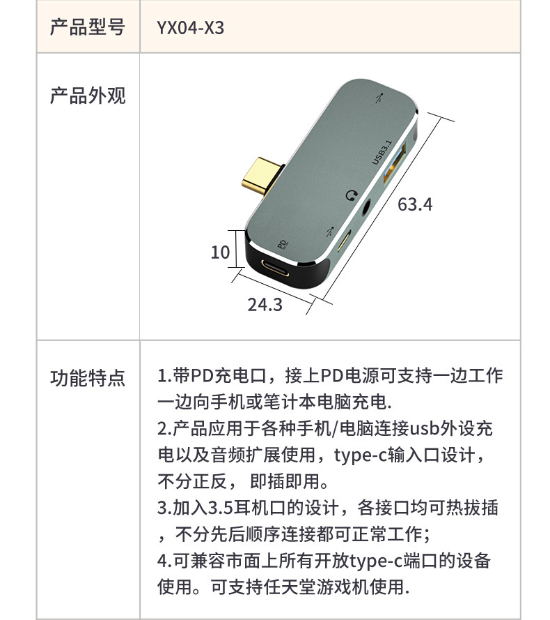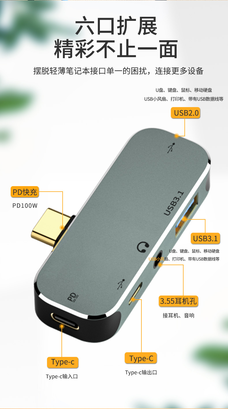 USB3.0/3.1/2.0、Type-c3.1拓展坞,HUB转换器,耳机音频 USB-C手机数据传输