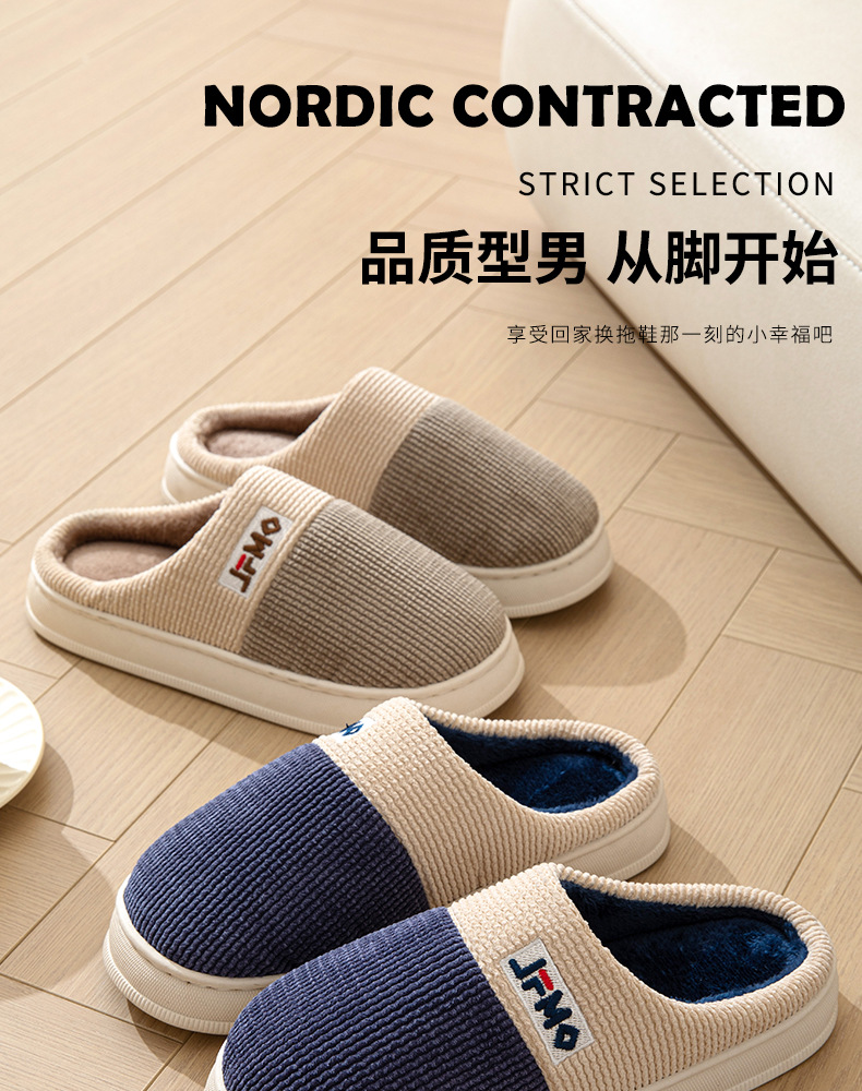 남자의 플러스 사이즈 면 슬리퍼 2023 겨울 가정용 실내 미끄럼 방지 두꺼운 따뜻한 직물 슬리퍼 도매