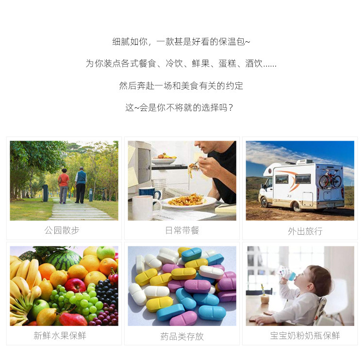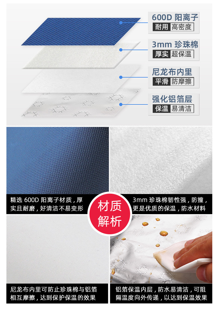 材质: 600D涤纶牛津布+珍珠棉+铝箔