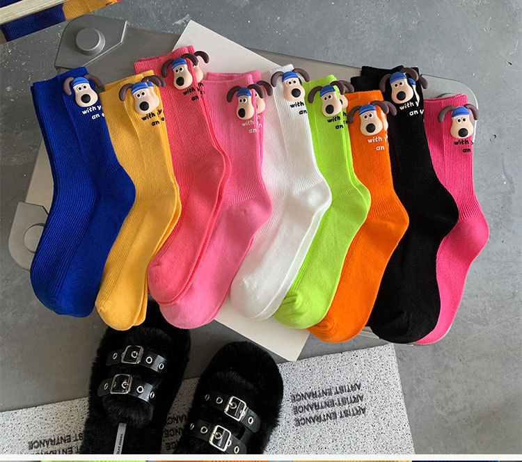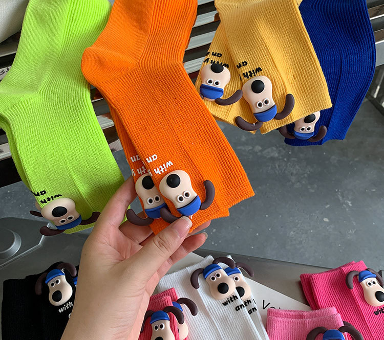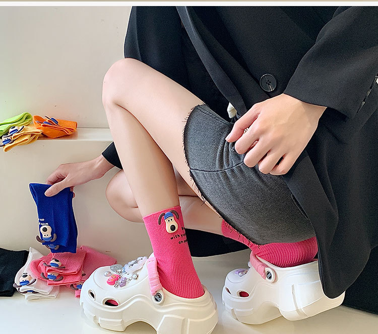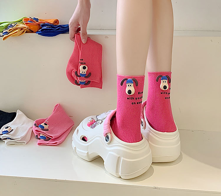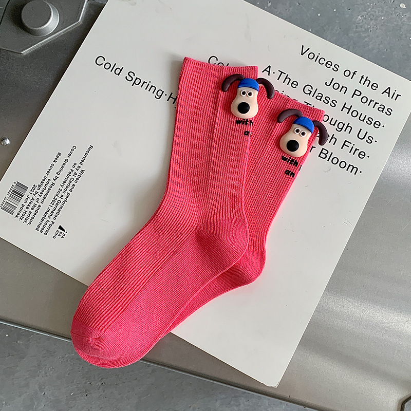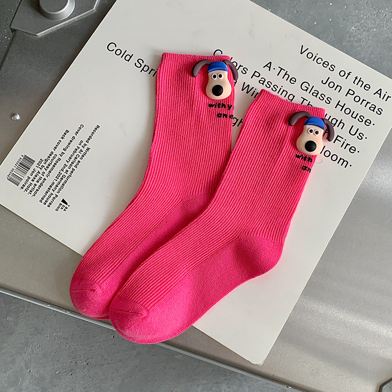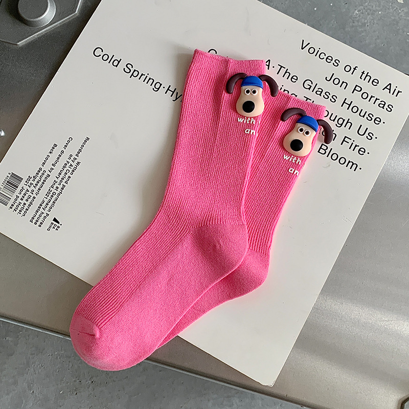 이른 가을 새로운 도파민 핑크 수직 양말 여자 더미 양말 여름 얇은 만화 3 차원 강아지 양말스토어 가기