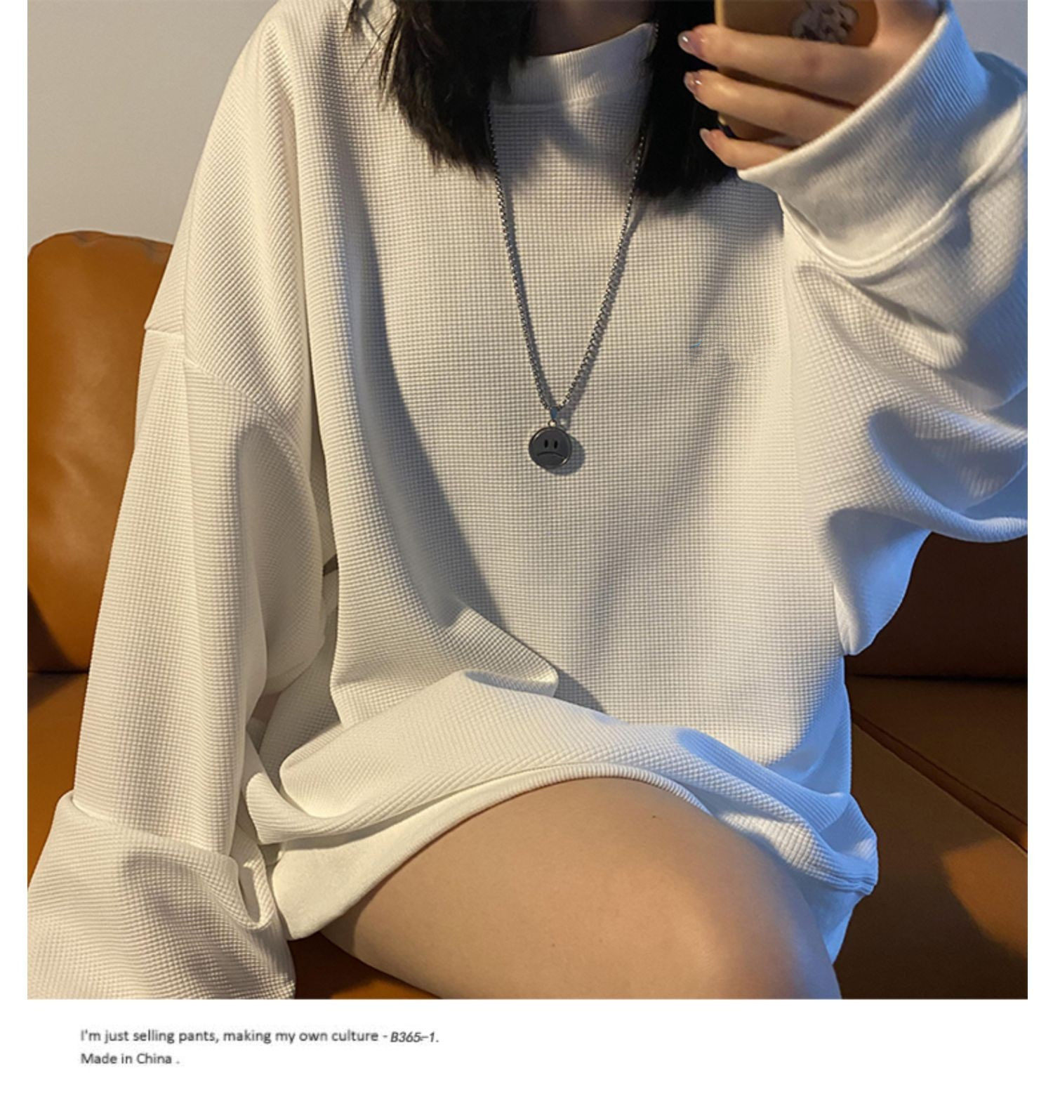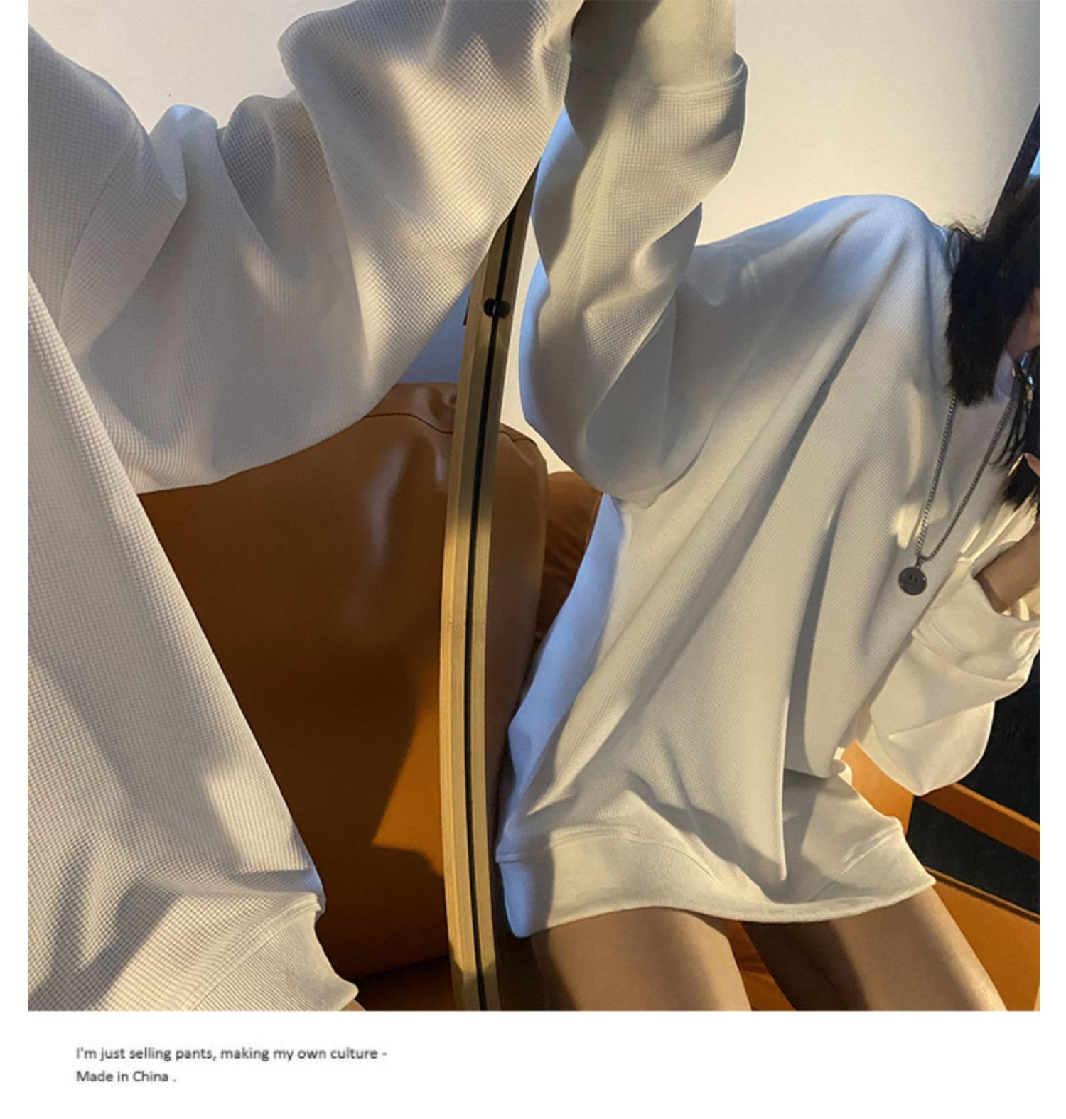 2025 와플 라운드 넥 긴 소매 운동복 가을 여성 크로스 보더 새로운 대형 셔츠 솔리드 컬러 탑 여성 도매