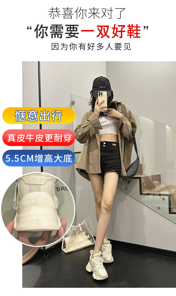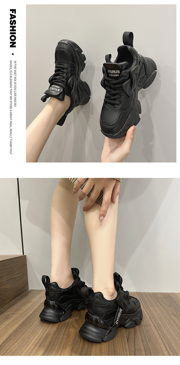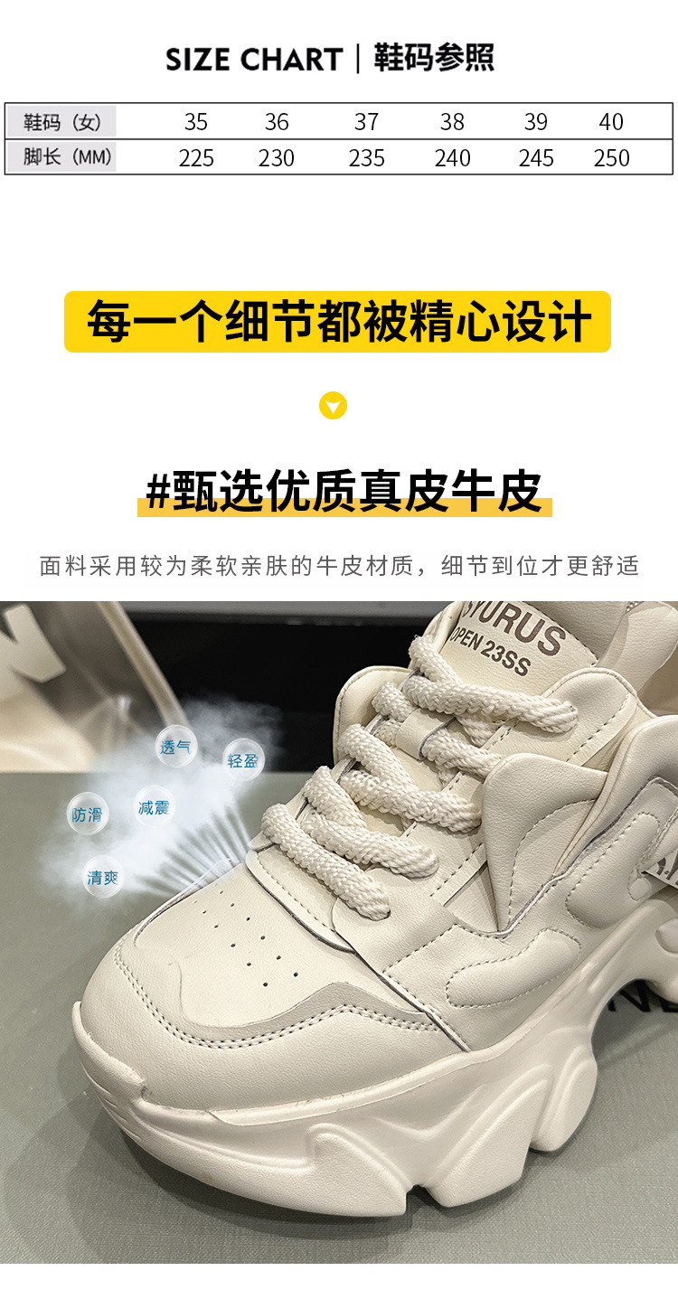 여성을위한 두꺼운 밑창 정품 가죽 아빠 신발 2024 가을 새로운 스타일 편안하고 다재다능한 라운드 발가락 레이스 업 스포츠 및 캐주얼 신발스토어 가기