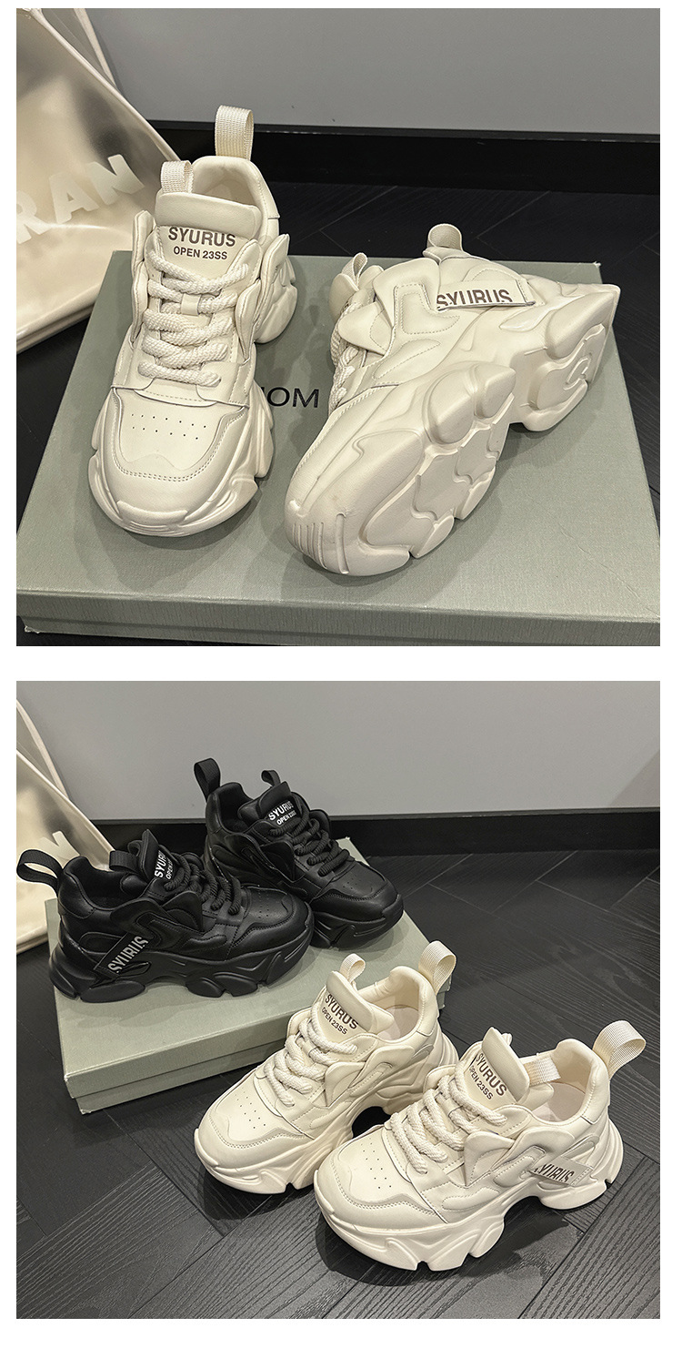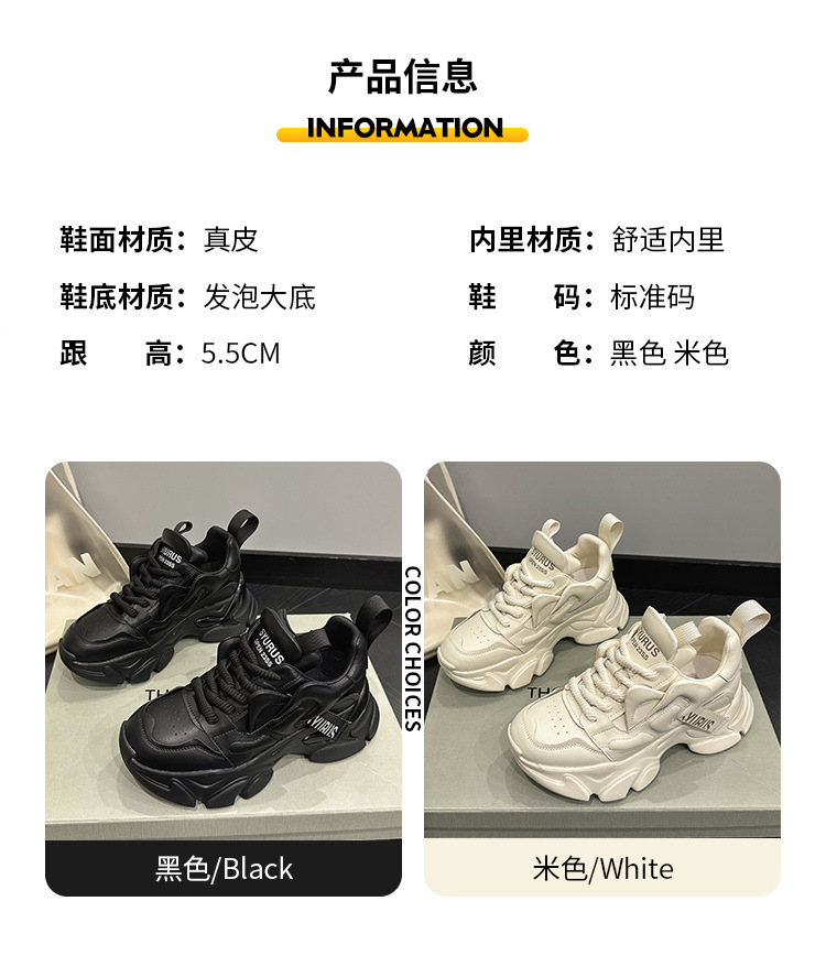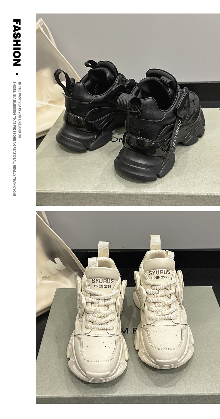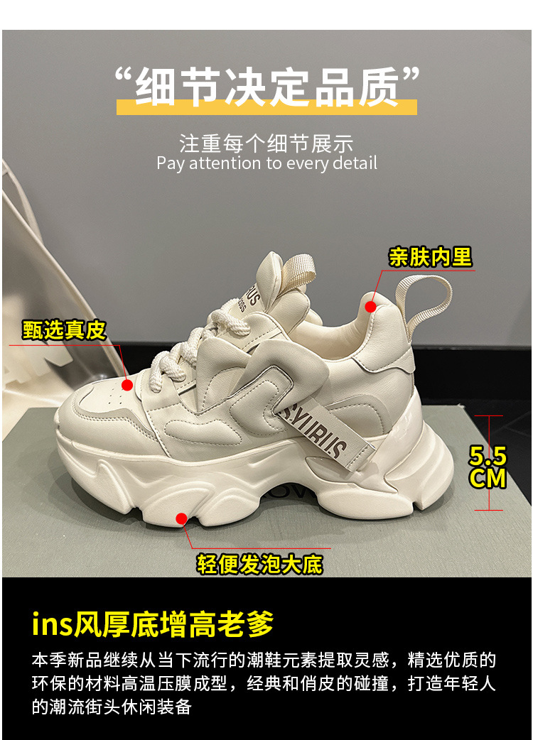 여성을위한 두꺼운 밑창 정품 가죽 아빠 신발 2024 가을 새로운 스타일 편안하고 다재다능한 라운드 발가락 레이스 업 스포츠 및 캐주얼 신발