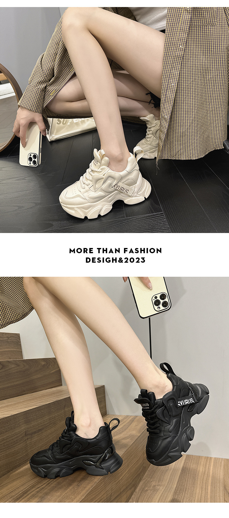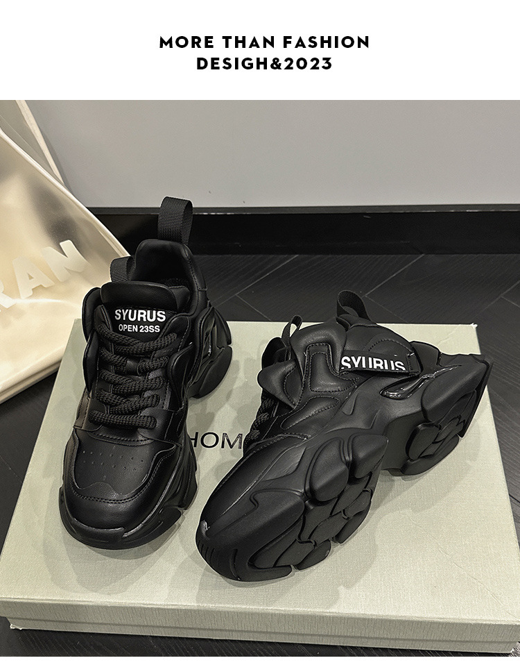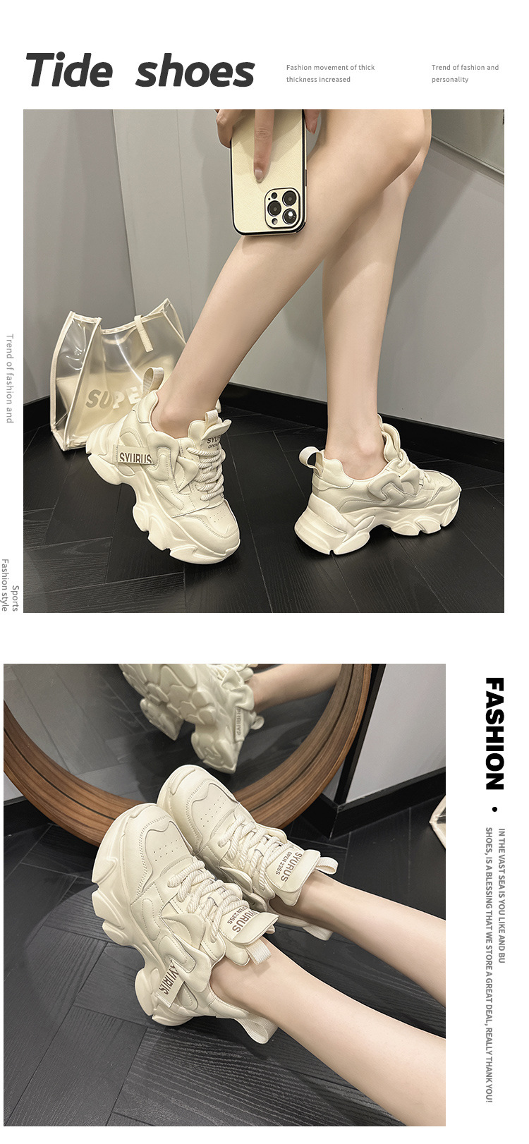 여성을위한 두꺼운 밑창 정품 가죽 아빠 신발 2024 가을 새로운 스타일 편안하고 다재다능한 라운드 발가락 레이스 업 스포츠 및 캐주얼 신발