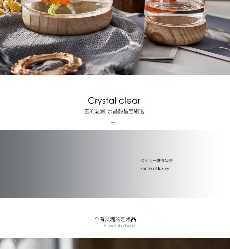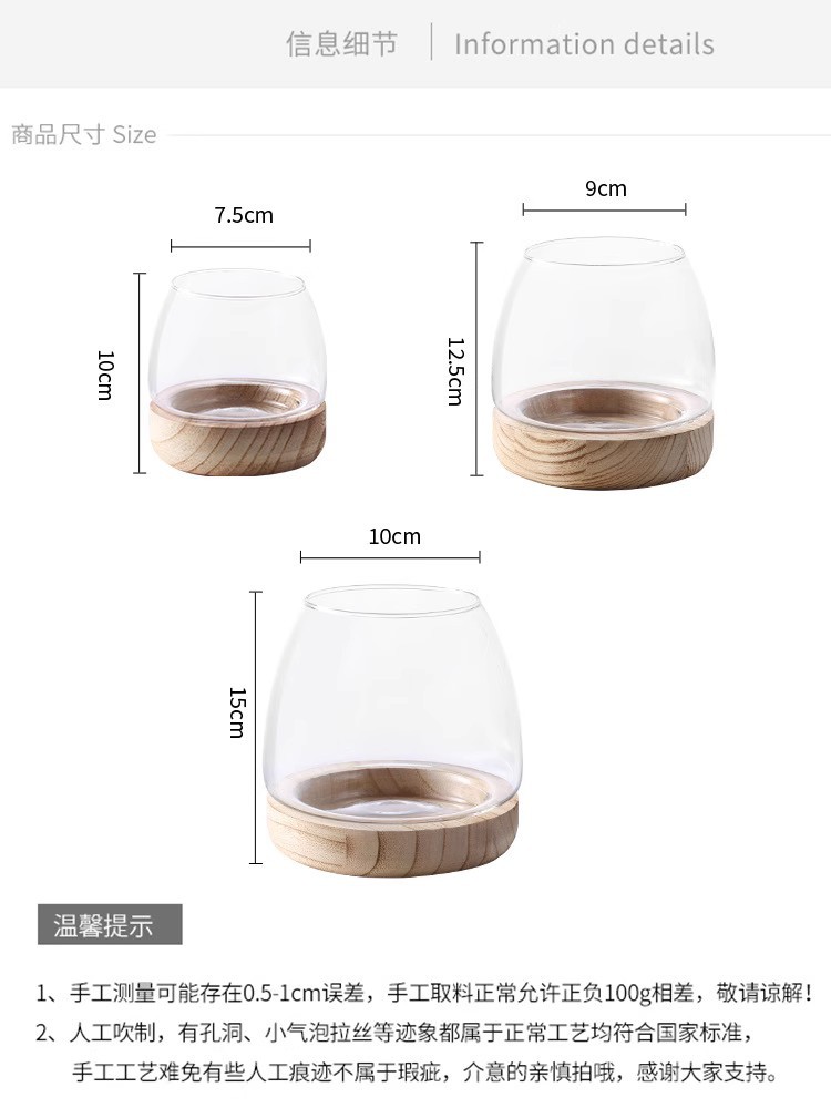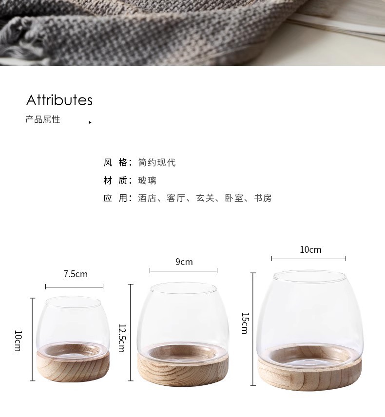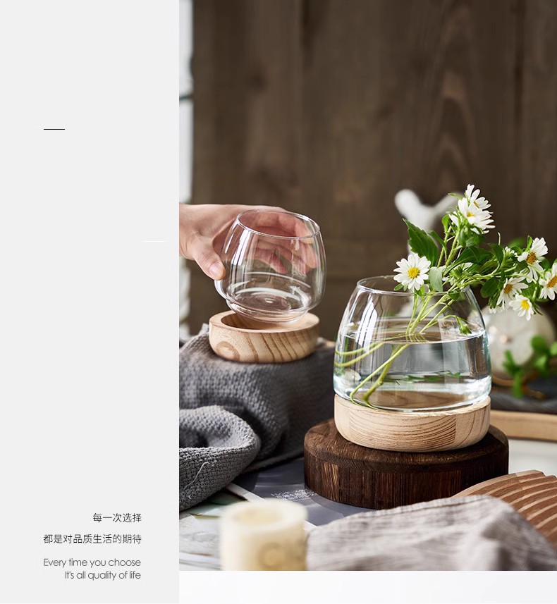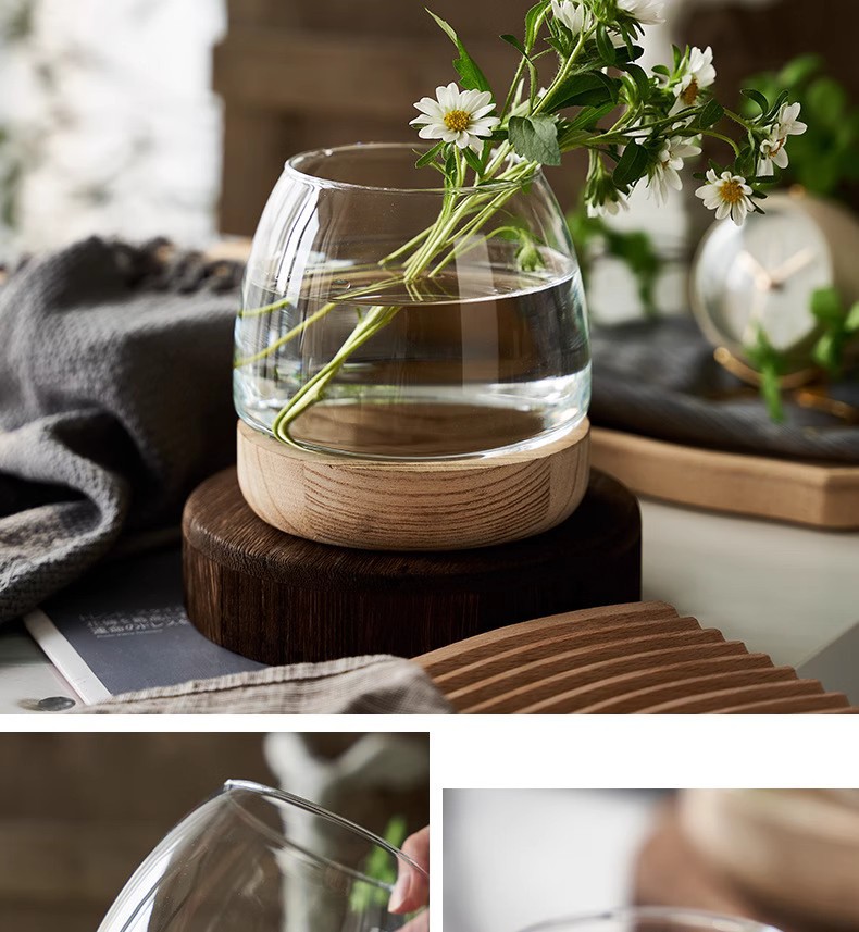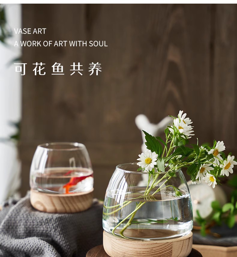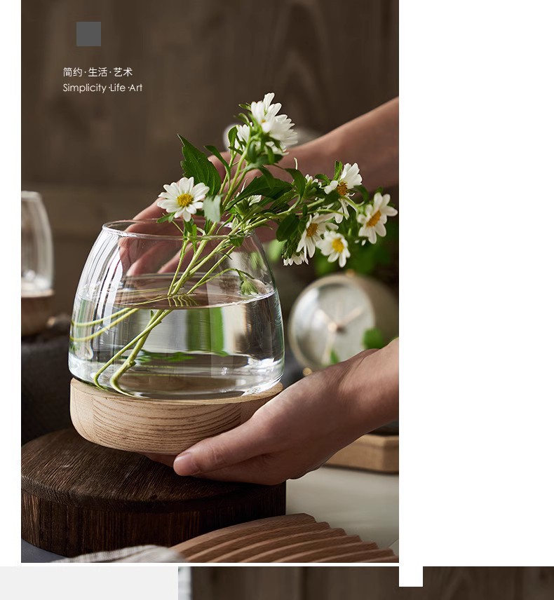 간단한 일본식 나무 트레이 투명 유리 스몰 사이즈 어항 수경 식물 생태 미니 꽃병 탁상 꽃꽂이 장식품