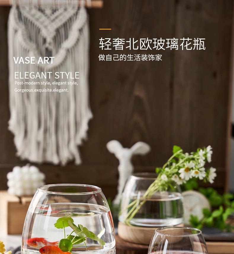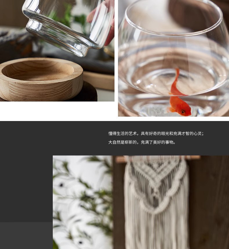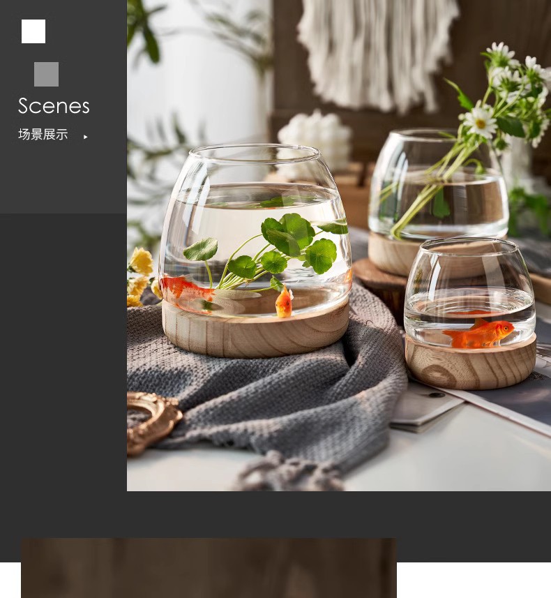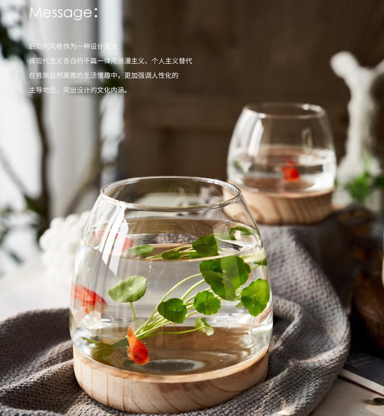 간단한 일본식 나무 트레이 투명 유리 스몰 사이즈 어항 수경 식물 생태 미니 꽃병 탁상 꽃꽂이 장식품스토어 가기