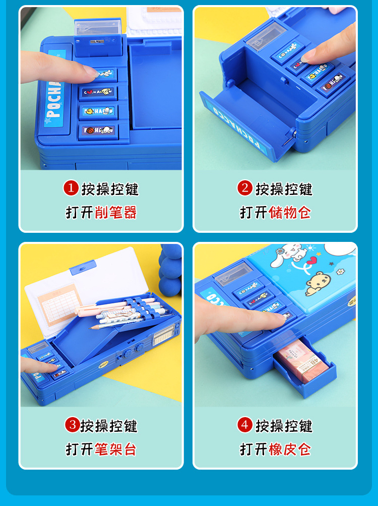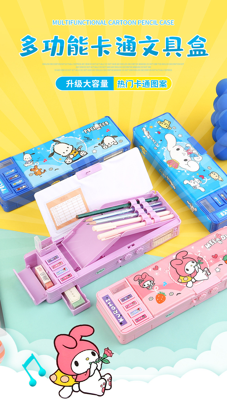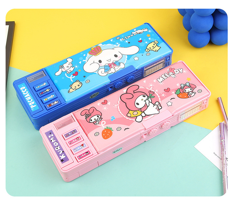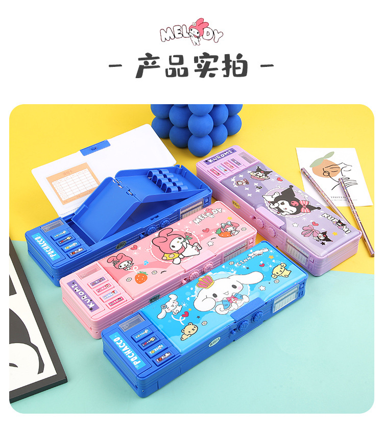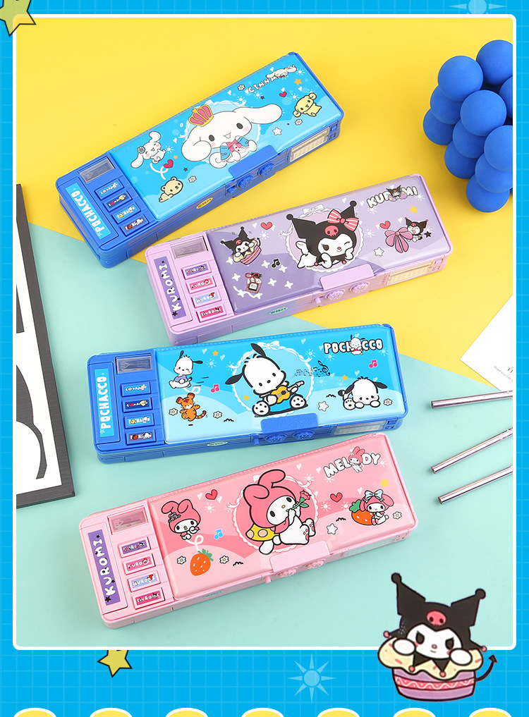 산리오 연필 케이스 조합 잠금 다기능 대용량 연필 케이스 남학생과 여학생 쿨로 미 더블 레이어