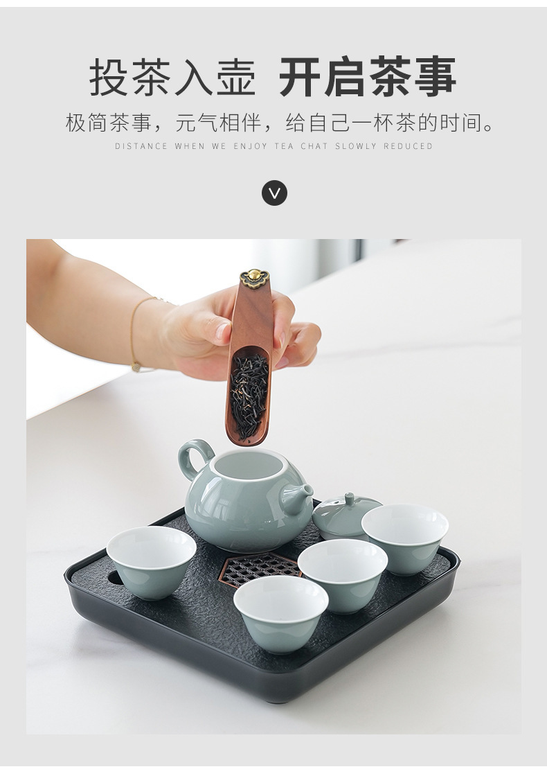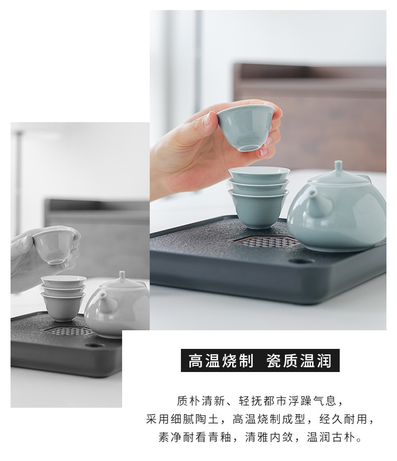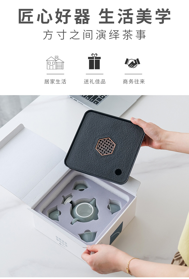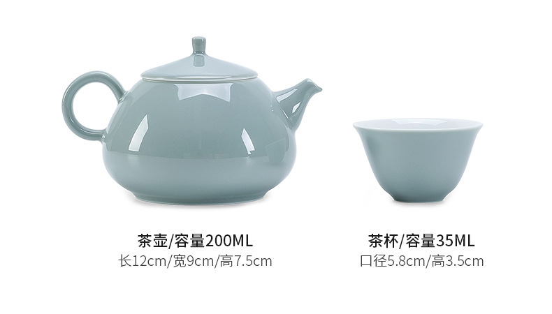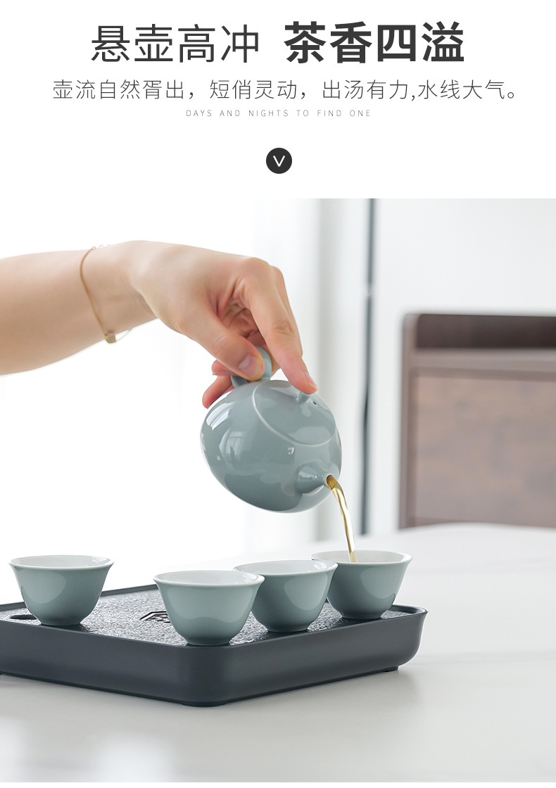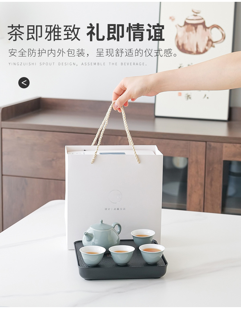 청자 쿵푸 차 세트 세트 가정용 거실 세라믹 차 세트 빛 럭셔리 찻주전자 찻잔 사무실 선물 상자 선물스토어 가기