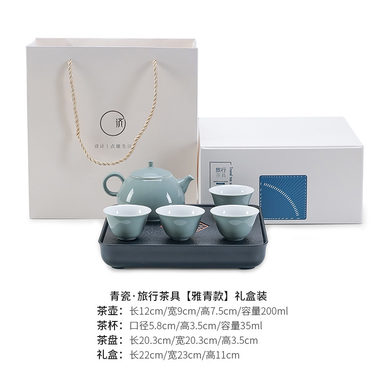 • Celadon-여행 차 세트 [필름 그린 스타일] 선물 상자