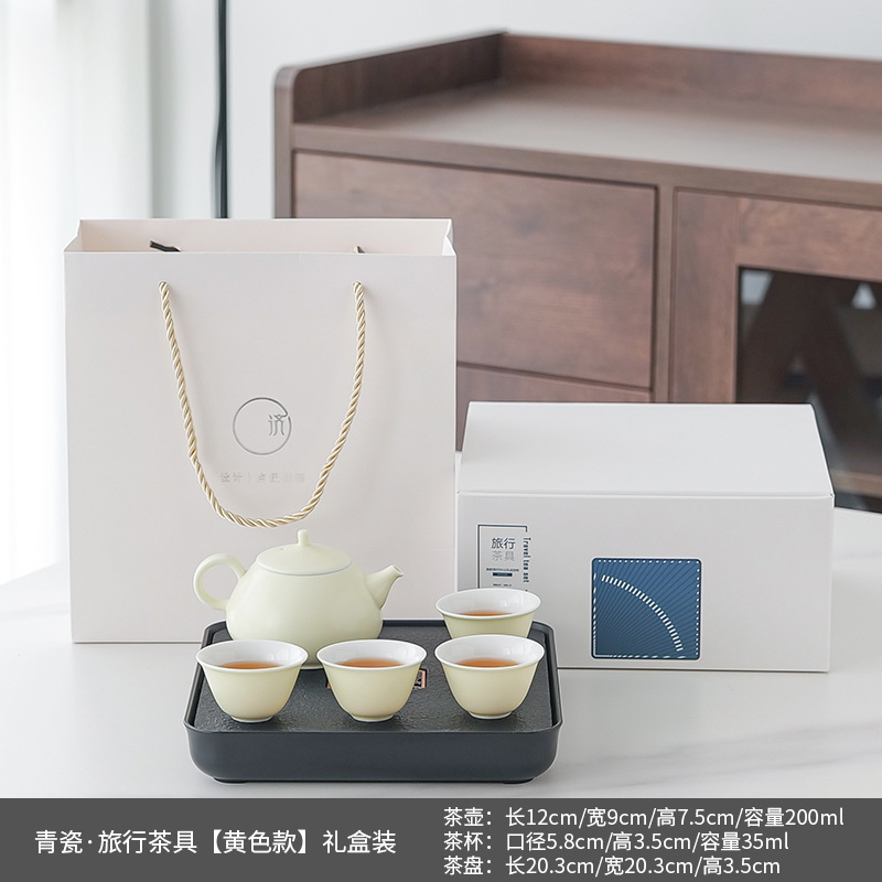 • 청자-여행 차 세트 [노란색] 선물 상자