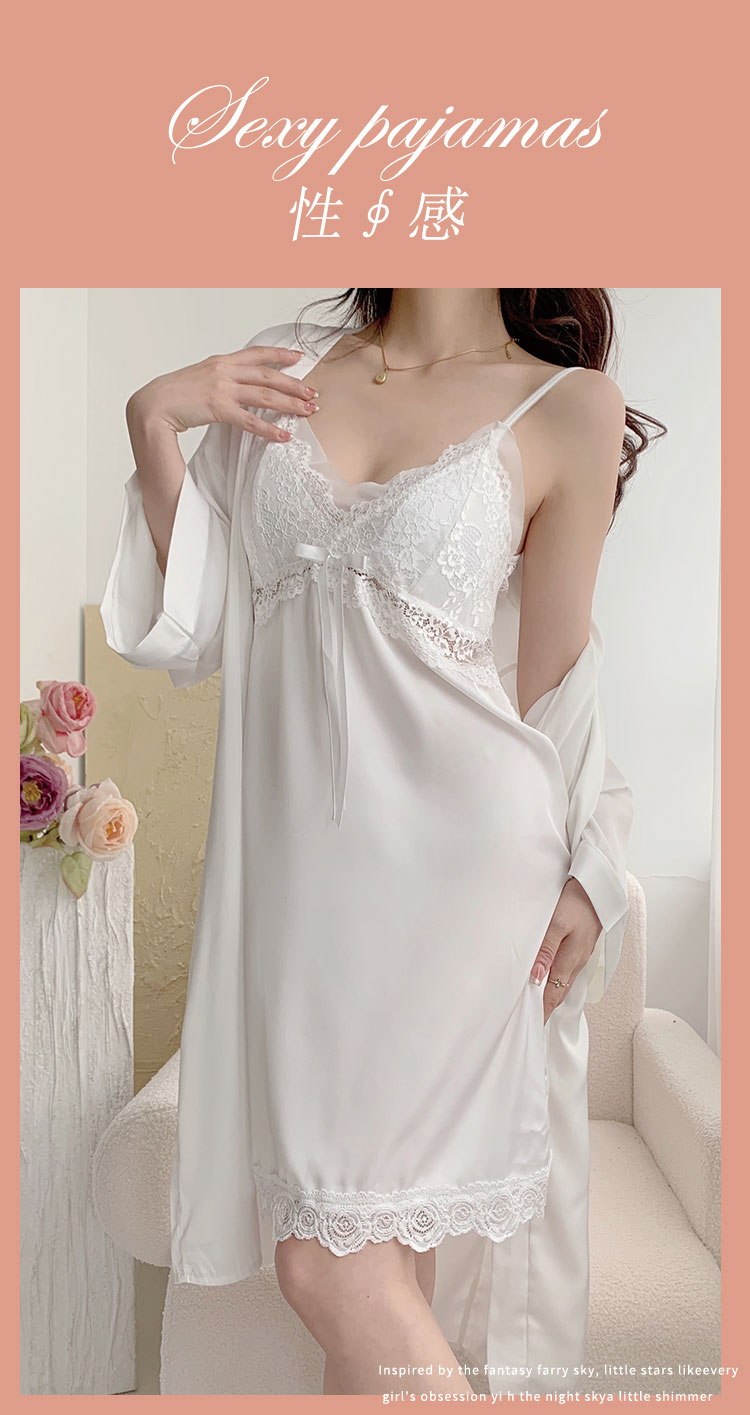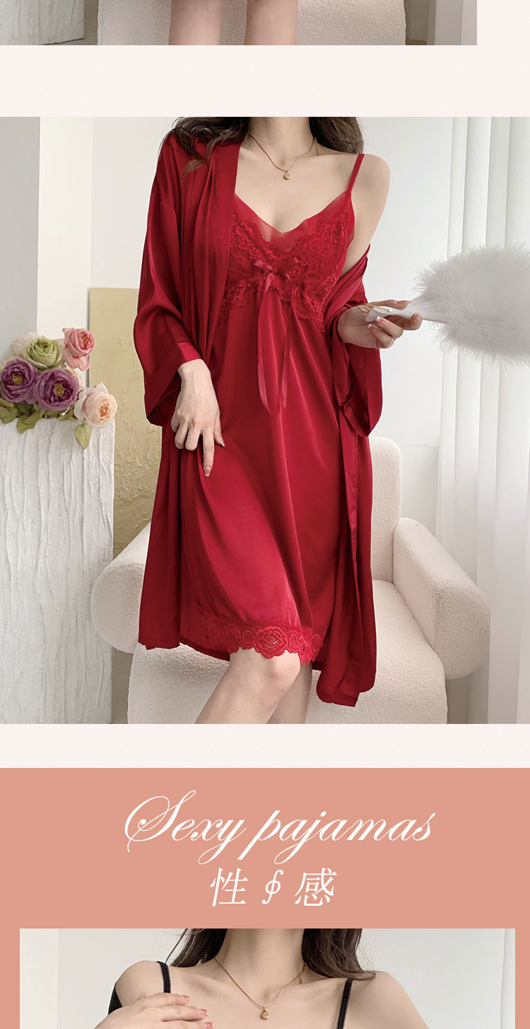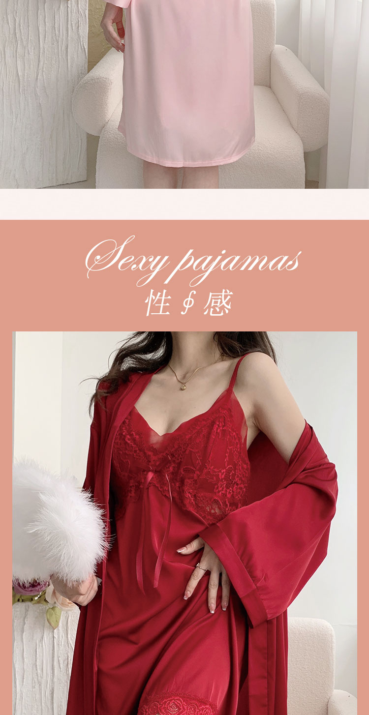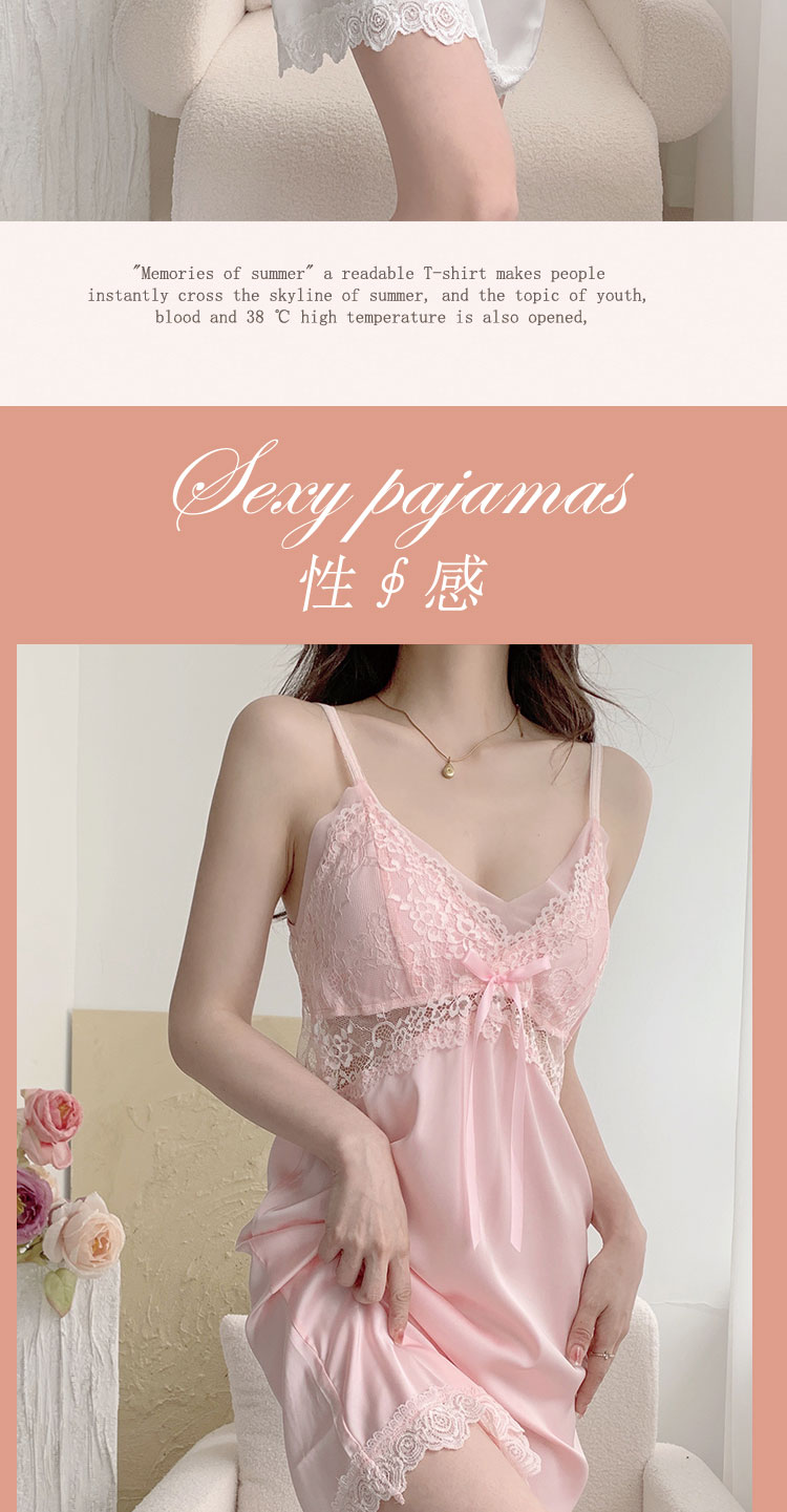 잠옷 여성용 봄과 가을 아이스 실크 2023 새로운 섹시한 얇은 투피스 세트 가슴 패드 슬링 잠옷 여름스토어 가기
