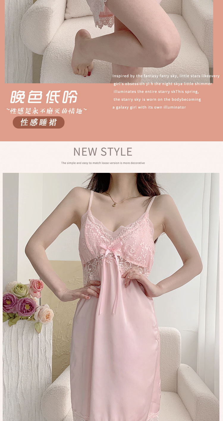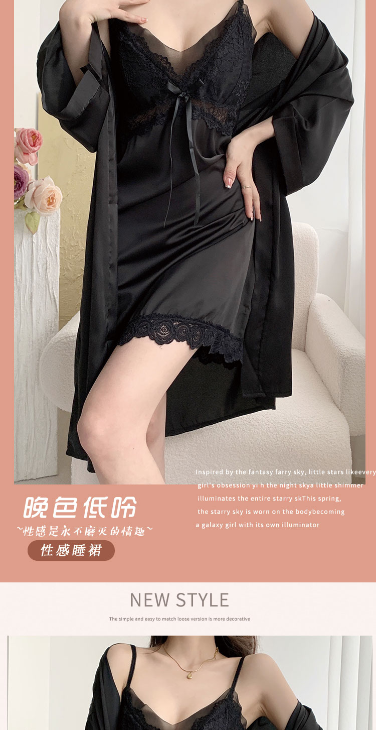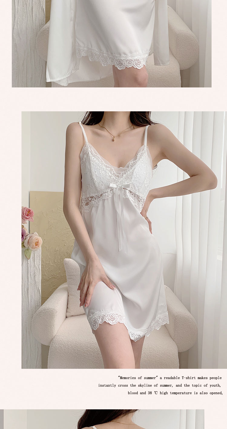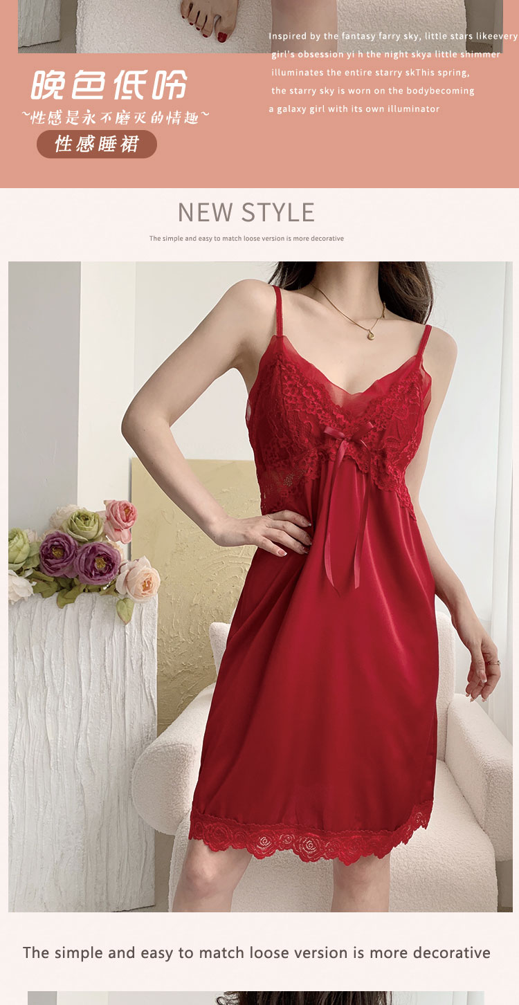 잠옷 여성용 봄과 가을 아이스 실크 2023 새로운 섹시한 얇은 투피스 세트 가슴 패드 슬링 잠옷 여름스토어 가기