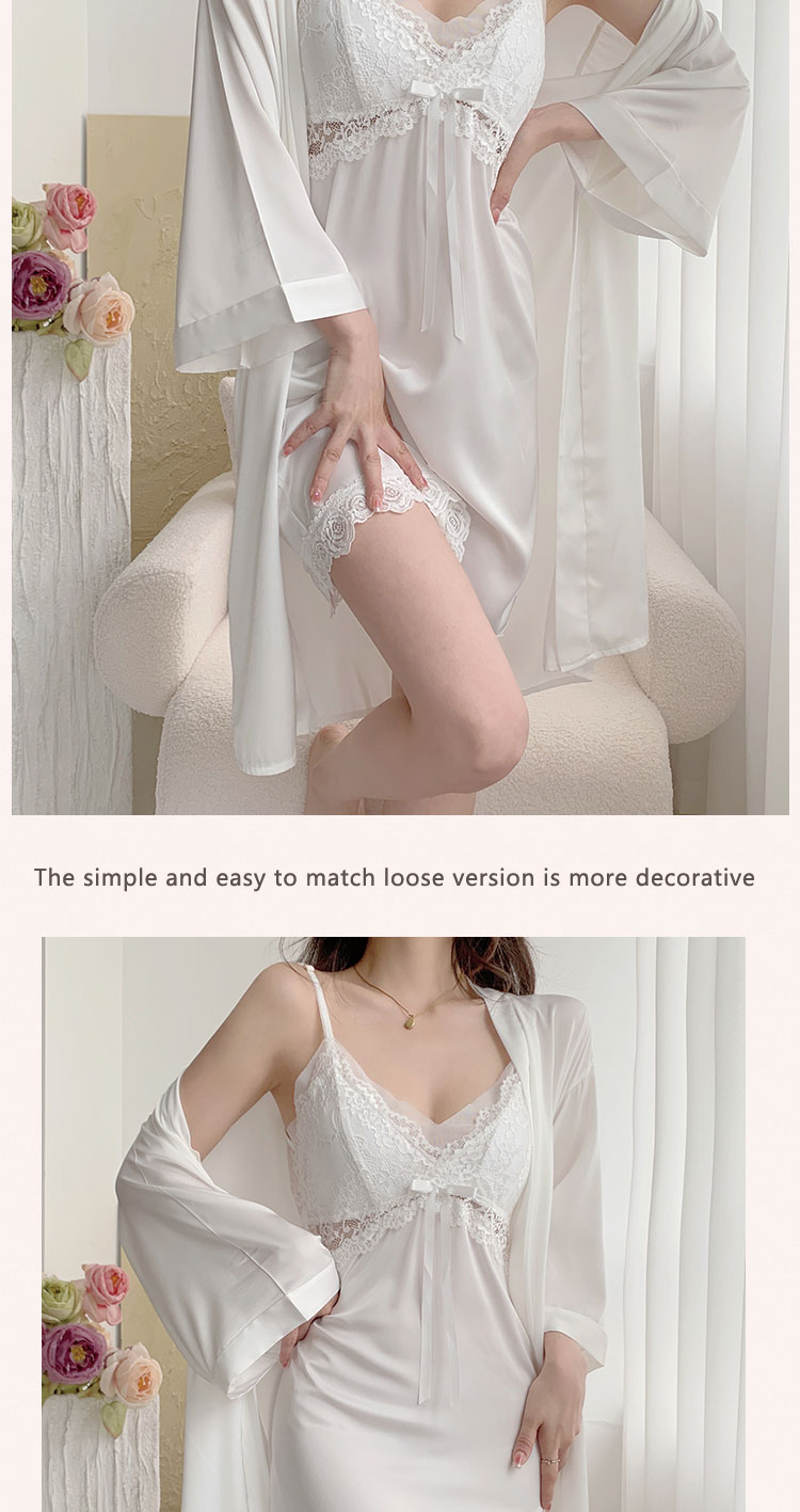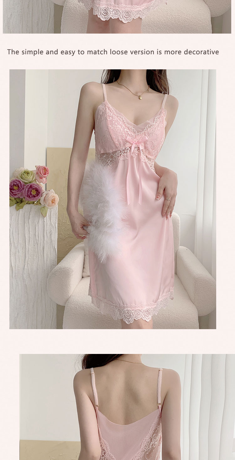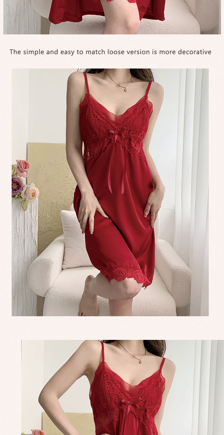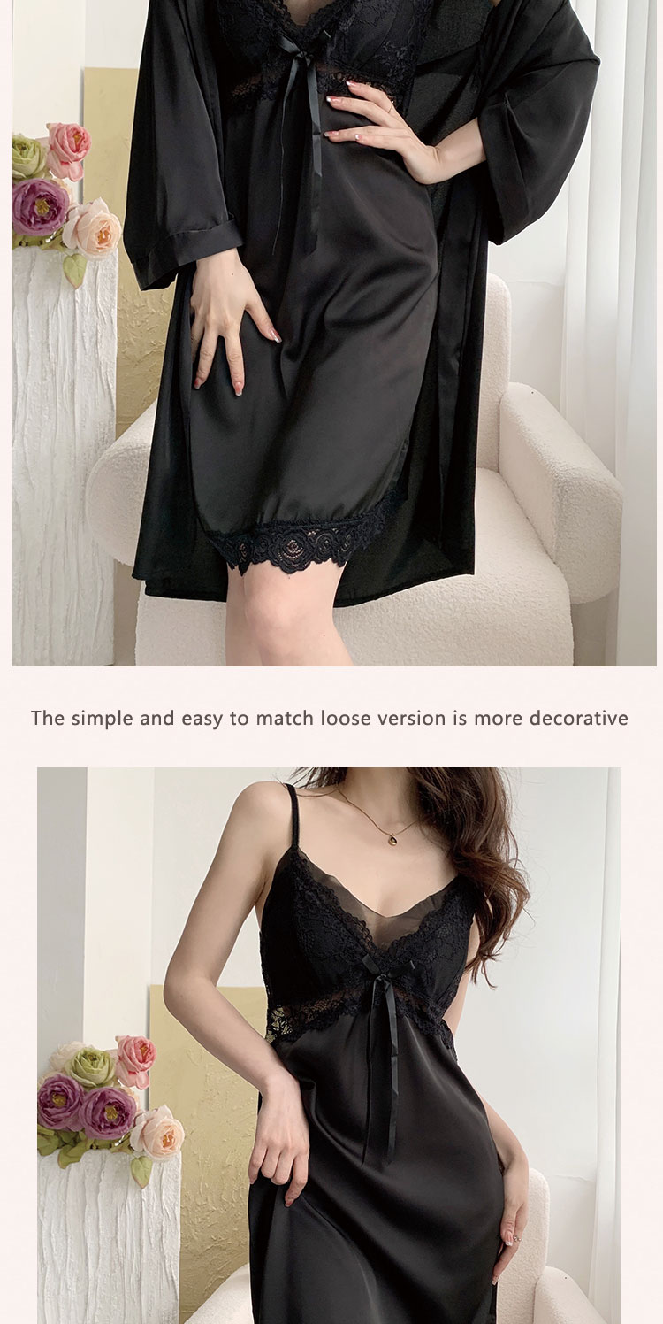 잠옷 여성용 봄과 가을 아이스 실크 2023 새로운 섹시한 얇은 투피스 세트 가슴 패드 슬링 잠옷 여름스토어 가기